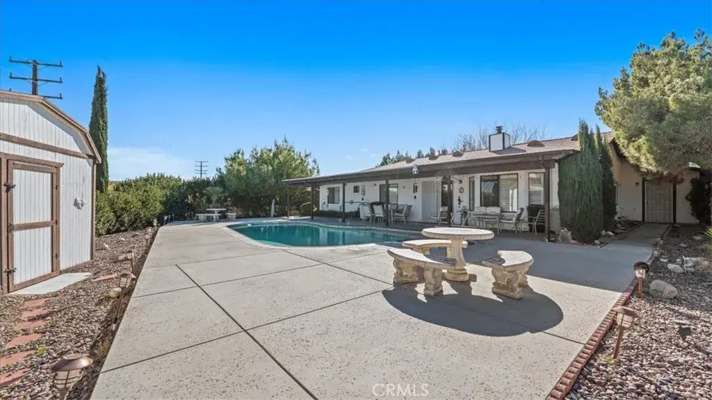 Welcome to 16885 Lambert Lane in Victorville—a beautifully maintained 1986 home situated on a full 1-acre lot, offering the perfect blend of charm, space, and functionality. This 3-bedroom, 2-bathroom residence also includes a bonus den, perfect for a home office, study, or additional living space, making it ideal for both comfortable everyday living and entertaining. The home features leased solar, a water softener system, and a stunning saltwater pool, ideal for enjoying sunny desert days. The exterior showcases elegant wrought iron accents, a circular driveway, and thoughtfully landscaped front and back yards that create inviting curb appeal. Multiple storage sheds provide ample space for tools, toys, or hobbies, while the expansive lot offers endless possibilities for customization or expansion. Properties like this are a rare find. Schedule your private showing today before it’s gone! Solar is leased, scheduled to to pay off by 2036. Payments $272. per month appx. This jewel is sold as is. Back active no fault of the Seller.