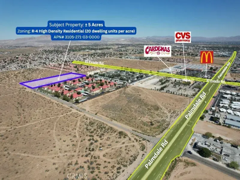 Maximum Density: R-4 zoning allows up to 30 units per gross acre, providing a potential yield of 150 units on a 5-acre footprint. Versatile Development: ldeal for large-scale apartment complexes, luxury condominiums, or income-restricted projects. Incentivized Growth: Benefit from reduced parking requirements (1 space per studio/1BR) for senior or affordable housing developments. Prime Visibility: Situated on a primary arterial with 28,000+ cars per day, offering immediate access to the 1 -15 and US-395 corridors. The “Live-Work-Play” Location: Your future tenants will be steps away from major retail anchors, including Walmart, starbucks, and Cardenas Market. With over 1,300 units recently approved nearby, this site sits at the heart of a massive residential influx.