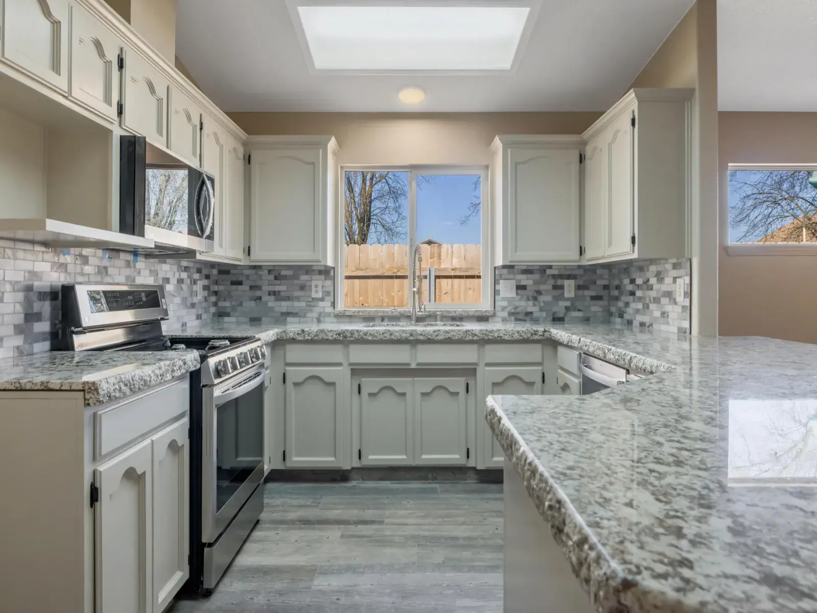 Inside, you’ll find granite countertops, a stylish newer backsplash, fresh paint, and durable tile flooring that flow seamlessly throughout the home. The thoughtful updates provide a clean, modern feel while maintaining warmth and functionality.