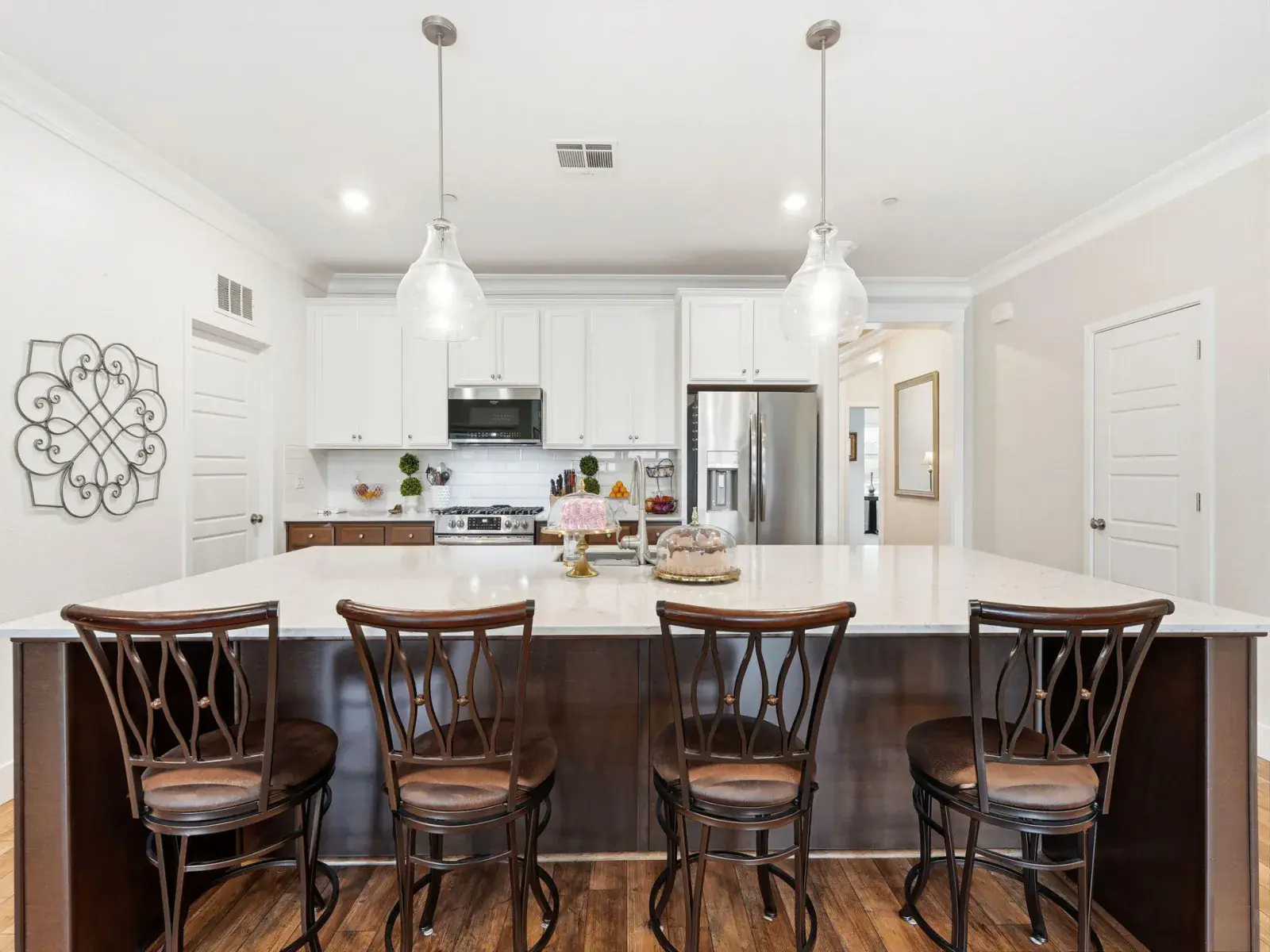 Inside, you’ll find an open and airy layout filled with natural light. The spacious great room connects effortlessly to the dining area and gorgeous kitchen, complete with a large island, quartz countertops, stainless steel appliances, and abundant cabinetry—perfect for both daily living and entertaining. The primary suite serves as a peaceful retreat with a well-appointed ensuite, while additional bedrooms provide comfort and versatility.