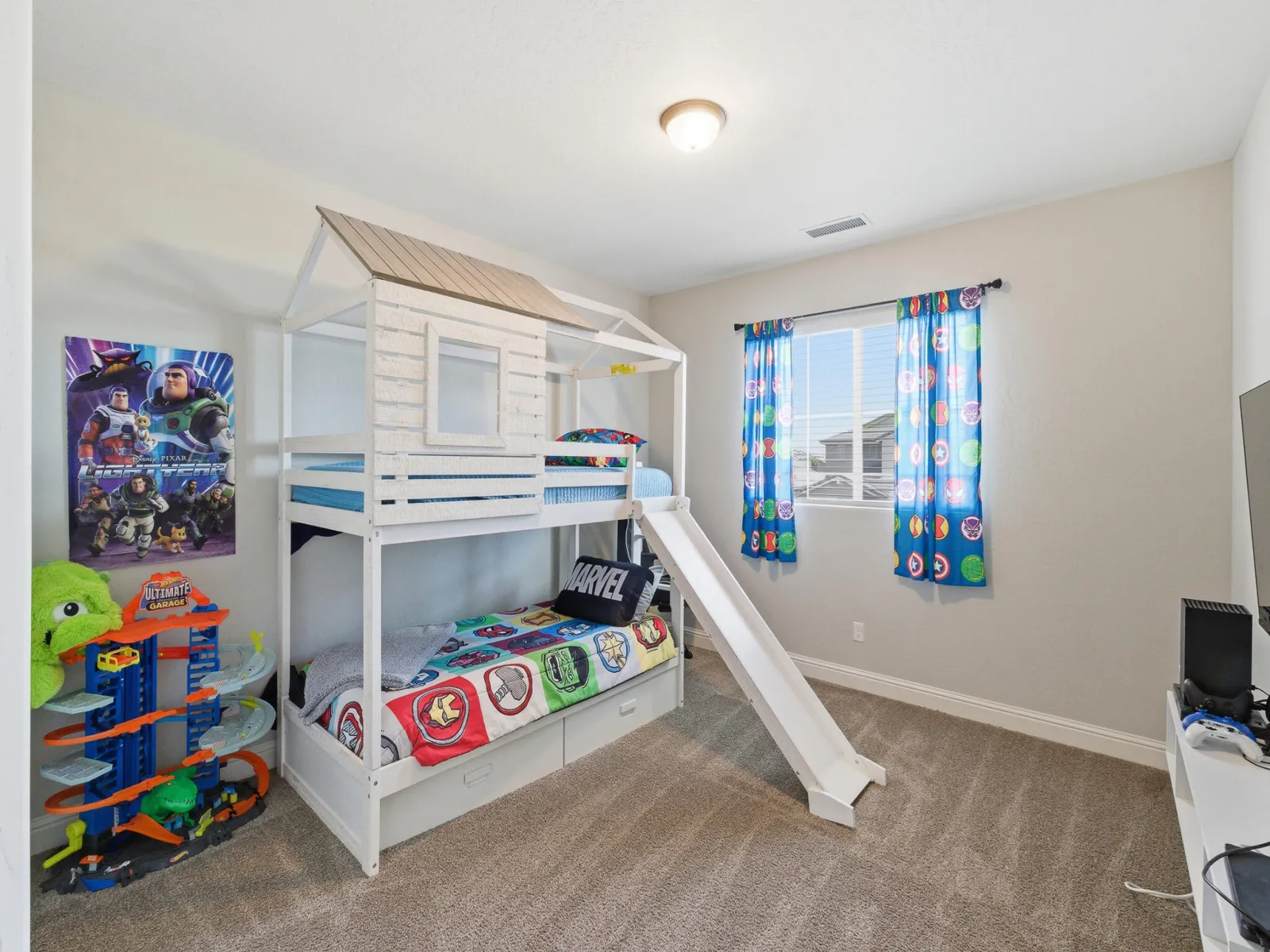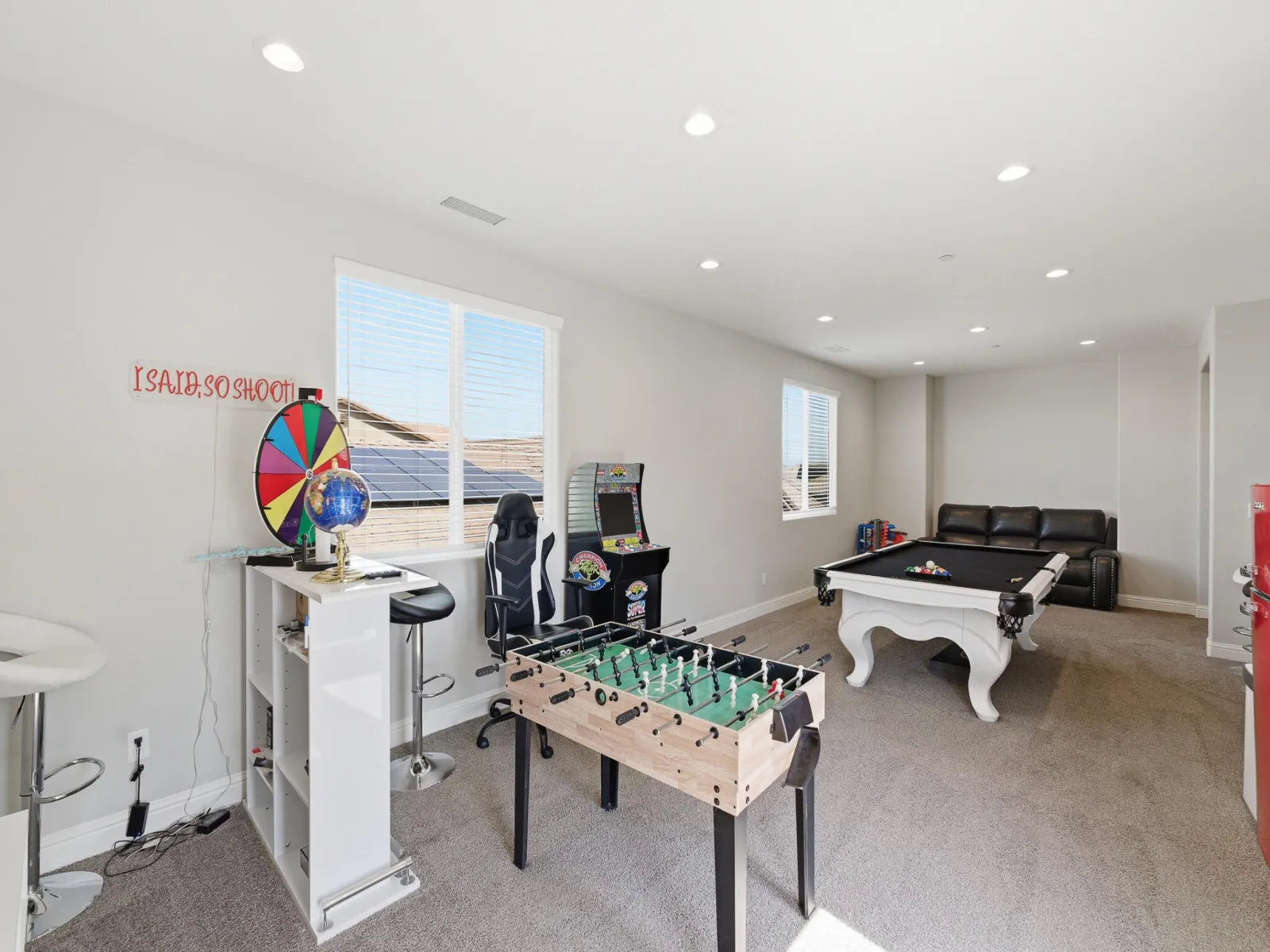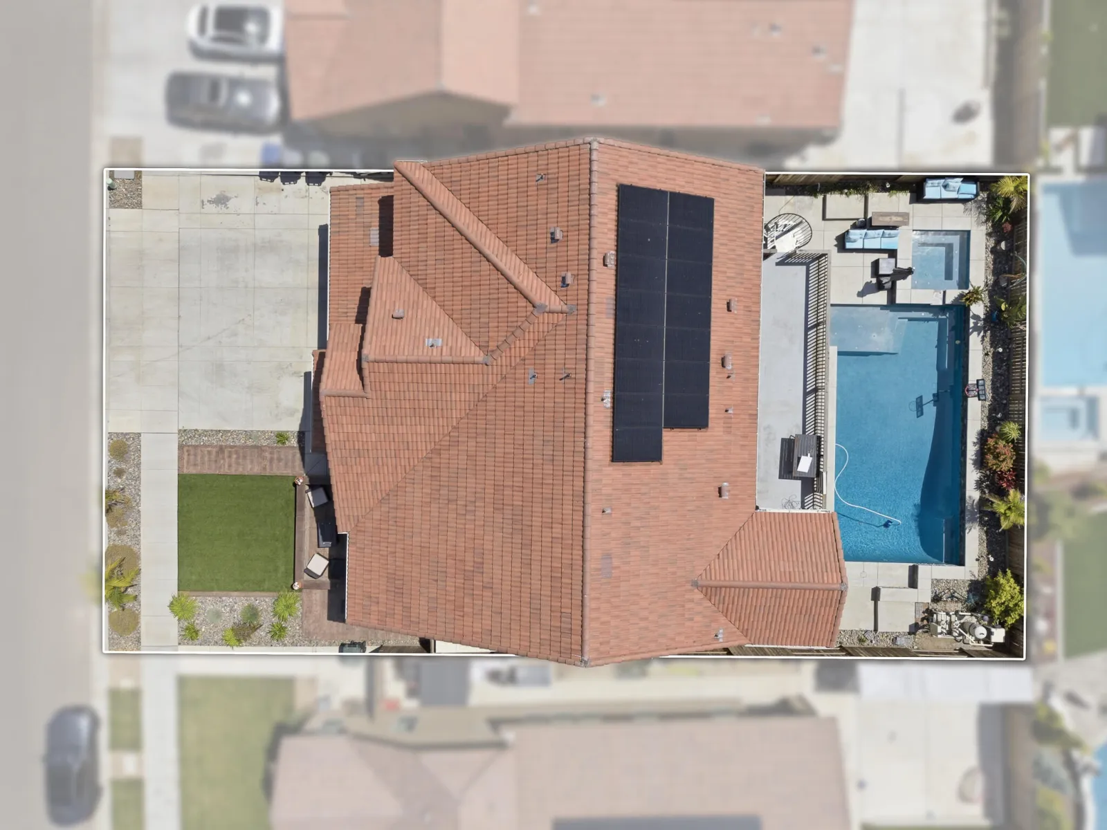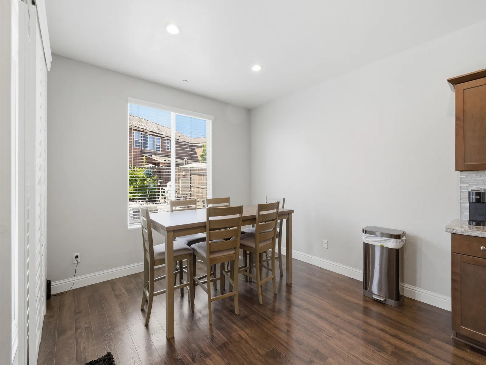 Welcome to this stunning two story home in highly desirable NW Visalia, offering over 3,500 sqft of thoughtfully designed living space built in 2022. From the moment you arrive, you’ll notice the beautifully upgraded curb appeal featuring low-maintenance synthetic grass, a stamped concrete walkway, & a front patio area that creates a warm & inviting entrance perfect for outdoor seating. Inside, soaring ceilings, abundant natural light, & a formal dining area set the tone for the home’s open & functional layout. The expansive great room seamlessly connects the living, dining, & kitchen spaces ideal for both everyday living & entertaining. The upgraded kitchen host rich cabinetry, granite countertops, a large center island with seating, double ovens, a built in cooktop with custom hood, & a butler’s pantry for added convenience. Upstairs, a massive loft-style game room provides the perfect flex space for a second living area, media room, or playroom, along with generously sized bedrooms. The spacious primary suite offers a private retreat with direct access to an expansive balcony overlooking the backyard, plus a luxurious en suite bath with dual vanities, a dedicated makeup station, soaking tub, and an oversized walk in tile shower with dual shower heads. Step outside to a true backyard showpiece featuring a custom heated gunite pool & spa with Baja shelf, expansive concrete decking, & multiple lounging areas designed for year round enjoyment & entertaining. The outdoor space is further enhanced by a large covered patio & a rare second story balcony with exterior spiral staircase access, creating a seamless indoor outdoor lifestyle. Additional highlights include a well appointed laundry room with built in cabinetry & sink, a 3 car garage, solar for energy efficiency, & thoughtfully designed low maintenance landscaping. Located near Riverway Sports Park, shopping, dining, schools, and parks, this home offers the perfect blend of modern comfort, space, and lifestyle.