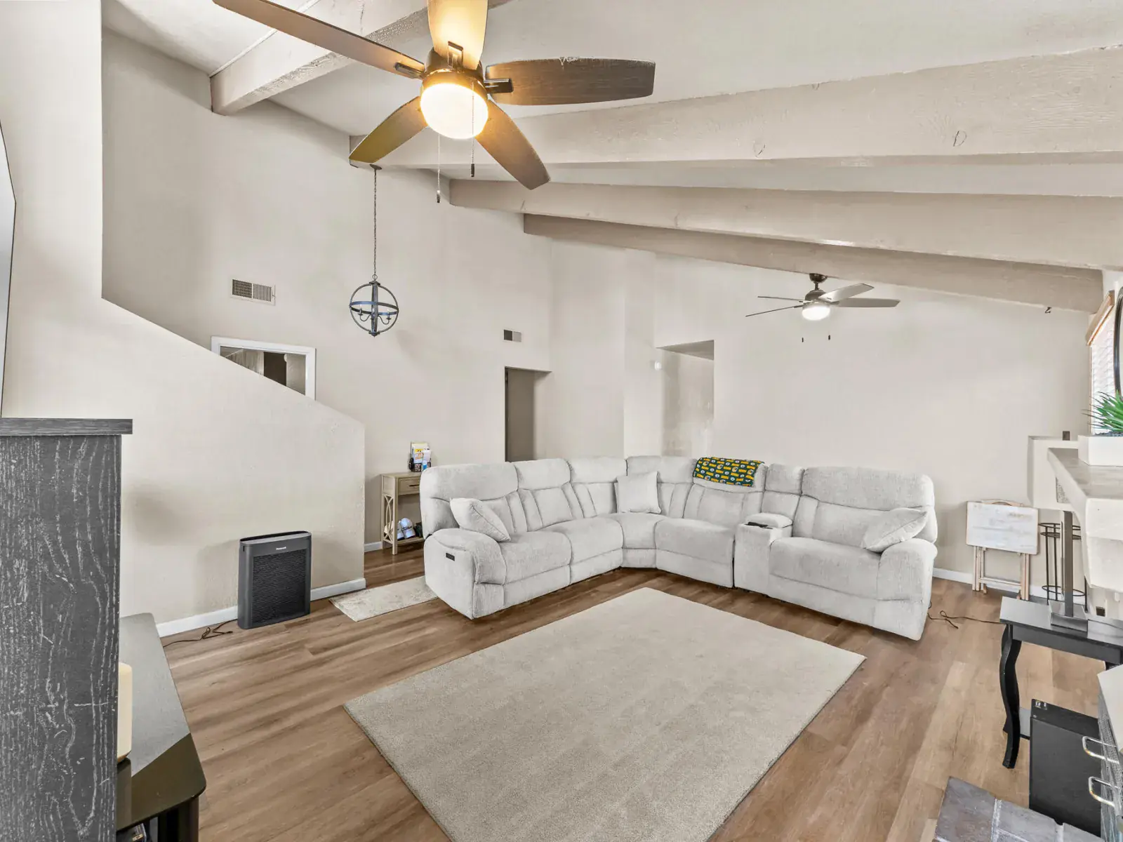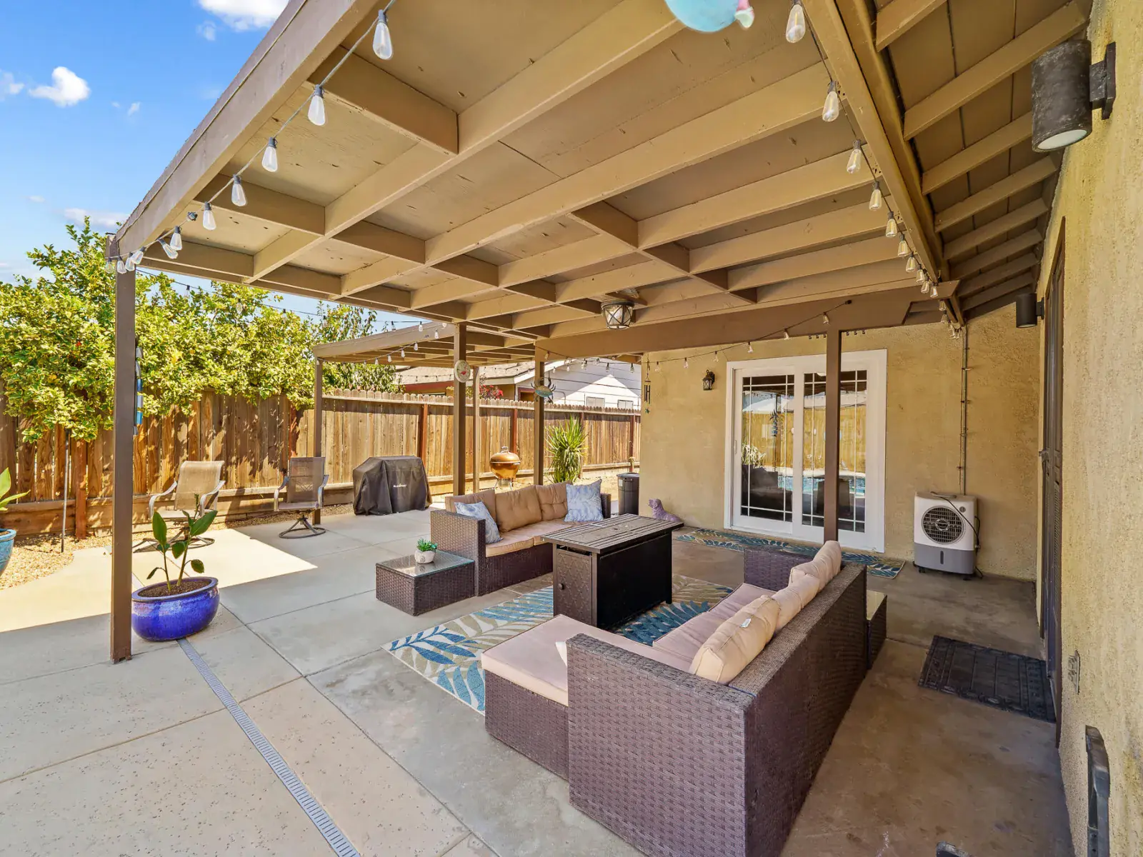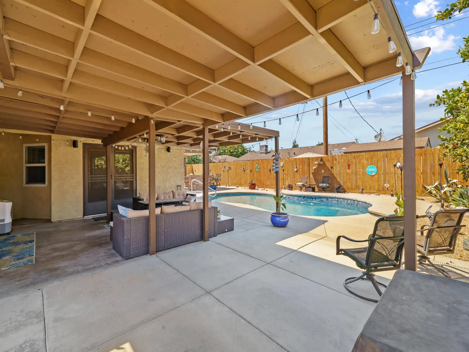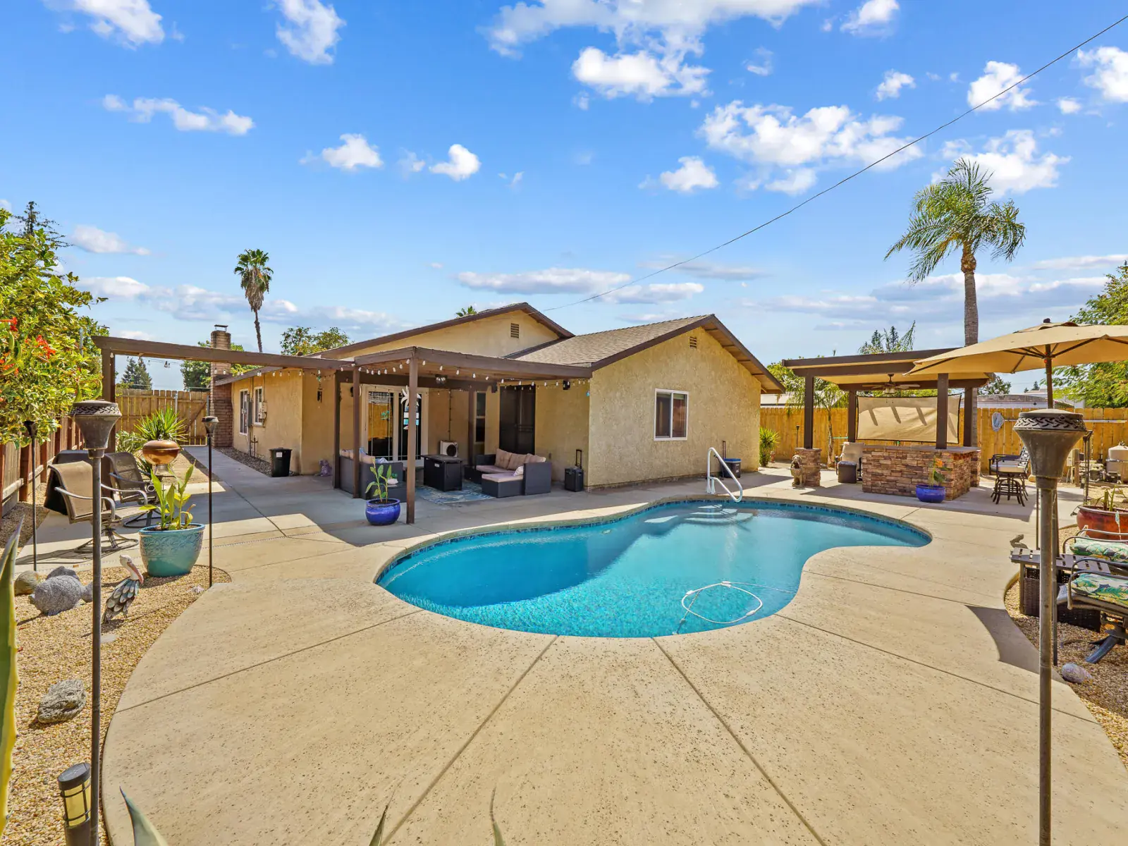 Welcome to your private retreat! This spacious 4 bedroom, 3 bathroom home features owned solar, high ceilings, a second living room with bar area, and a great layout perfect for everyday living and entertaining. The living space and primary bedroom both flow seamlessly to the outdoors, where a large backyard oasis awaits.