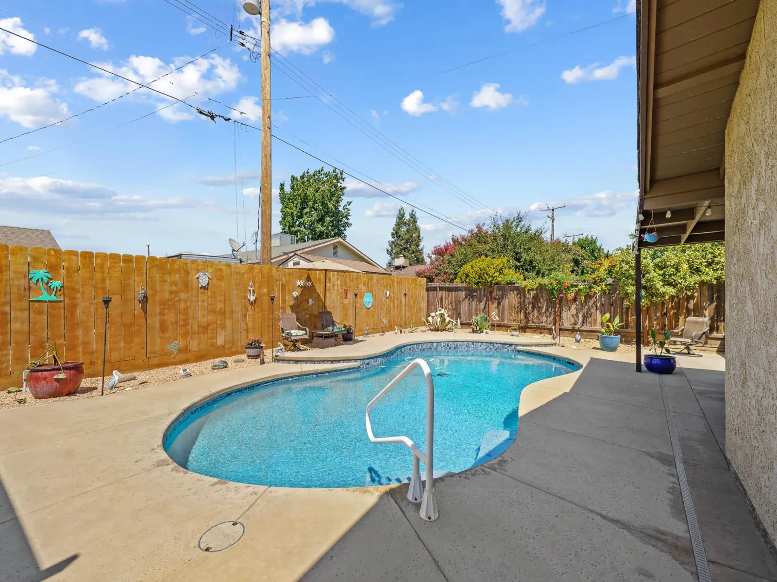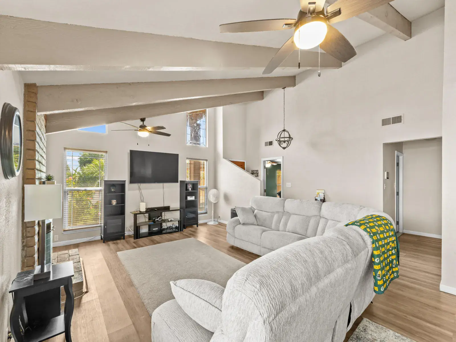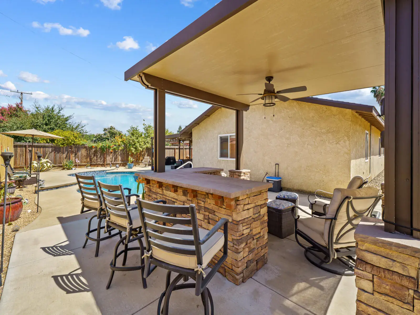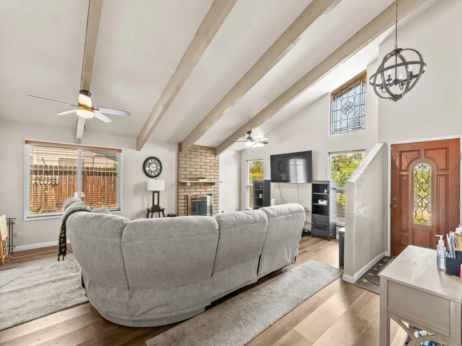 Welcome to your private retreat! This spacious 4 bedroom, 3 bathroom home features owned solar, high ceilings, a second living room with bar area, and a great layout perfect for everyday living and entertaining. The living space and primary bedroom both flow seamlessly to the outdoors, where a large backyard oasis awaits.