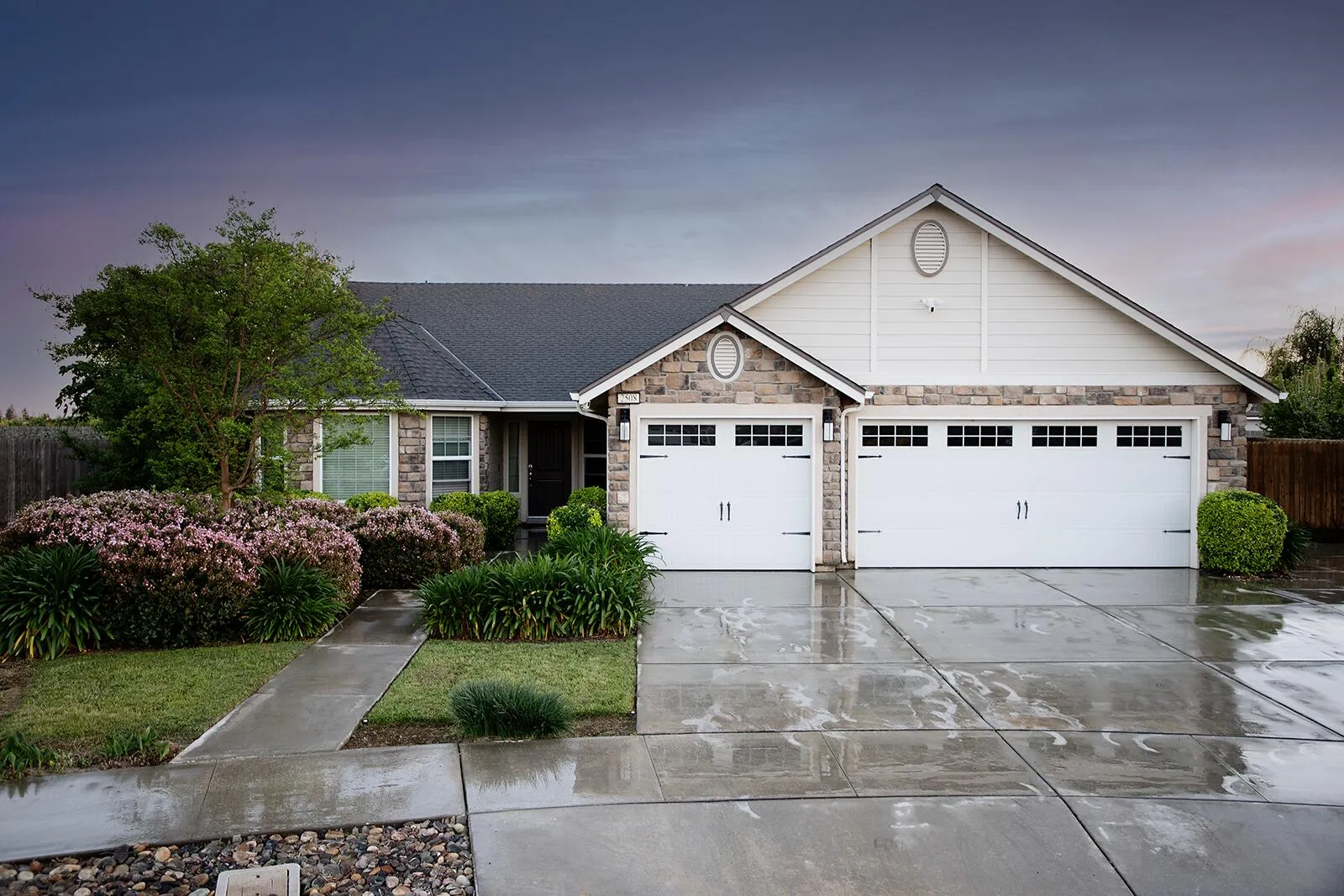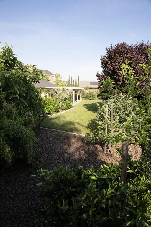 Welcome to a rare opportunity in Northwest Visalia. This single-story home, built in 2018, offers 5 bedrooms, 3 full bathrooms, and approximately 2,091 square feet of living space on a spacious 0.27-acre cul-de-sac lot. The property features a 3-car garage and an extended driveway with additional concrete, offering potential RV parking. Inside, the open-concept floor plan provides a functional layout with abundant natural light throughout. A private bedroom and full bathroom are located on one side of the home, ideal for guests, multi-generational living, or office use, while the remaining bedrooms are situated on the opposite side. The kitchen and living areas flow seamlessly, supporting both everyday living and entertaining. The hall bathroom includes double sinks and a linen closet. An indoor laundry room with upper cabinetry adds convenience. The primary suite features a walk-in closet and an en-suite bathroom with dual sinks, a linen closet, and an oversized walk-in tile shower with bench seating. The backyard is fully landscaped and includes a covered patio with two ceiling fans, a cement walking path, raised garden beds, decomposed granite area for potential shed placement, and an additional concrete pad. The property includes a variety of mature fruit trees, including fig, apricot, pomegranate, lemon, orange, apple, cherry, grapevine, and plum. A tankless water heater has also been recently installed.