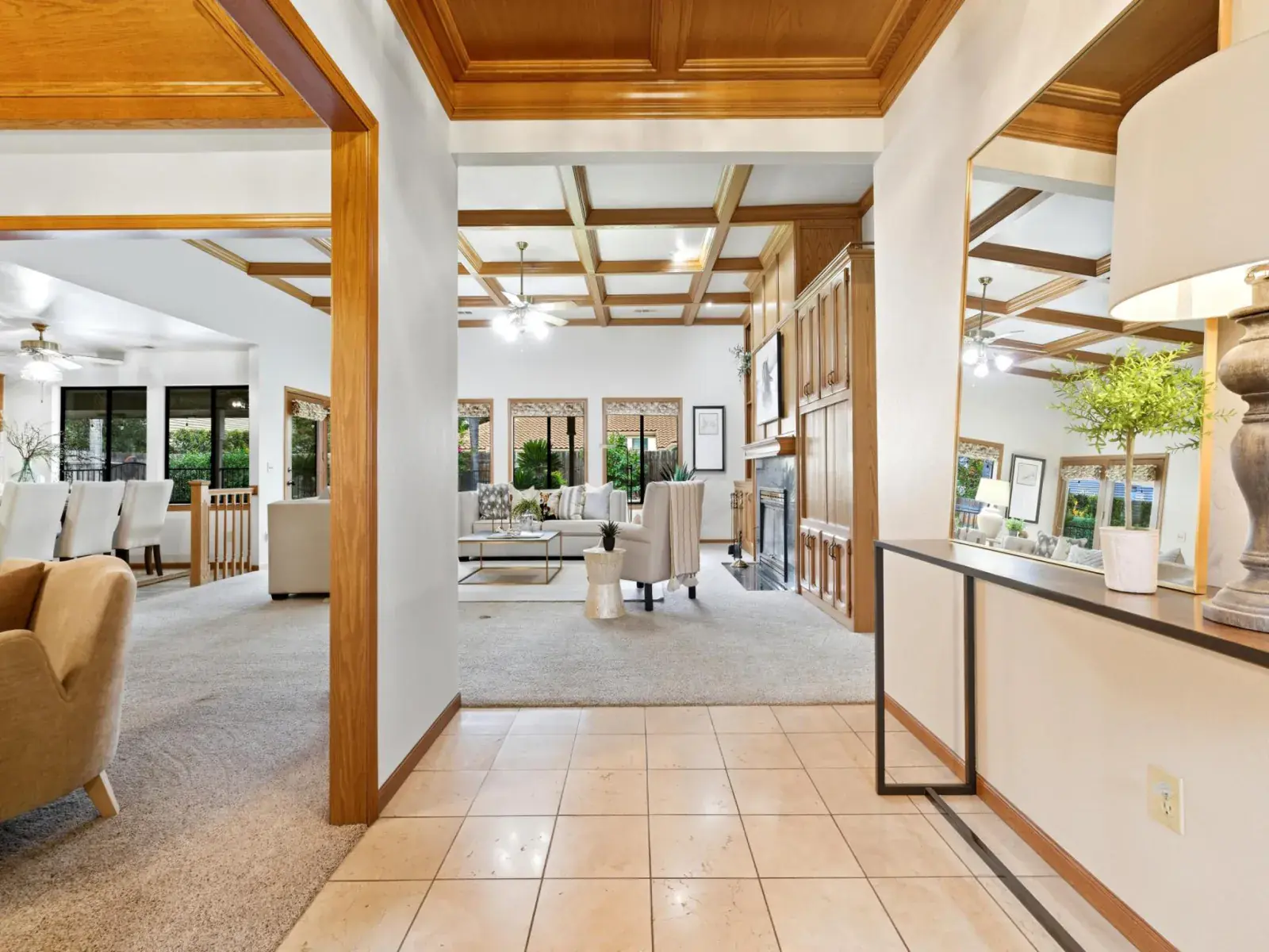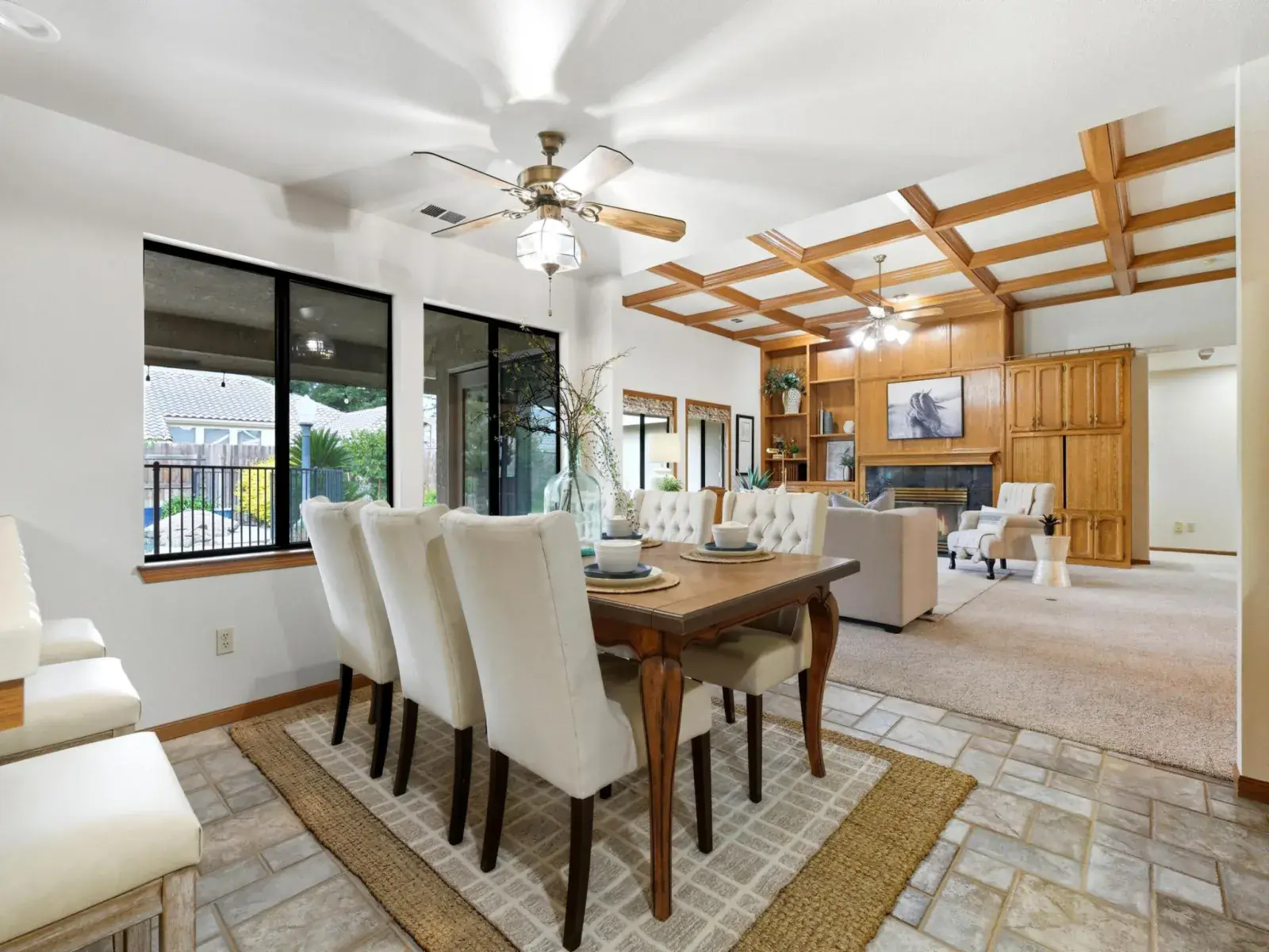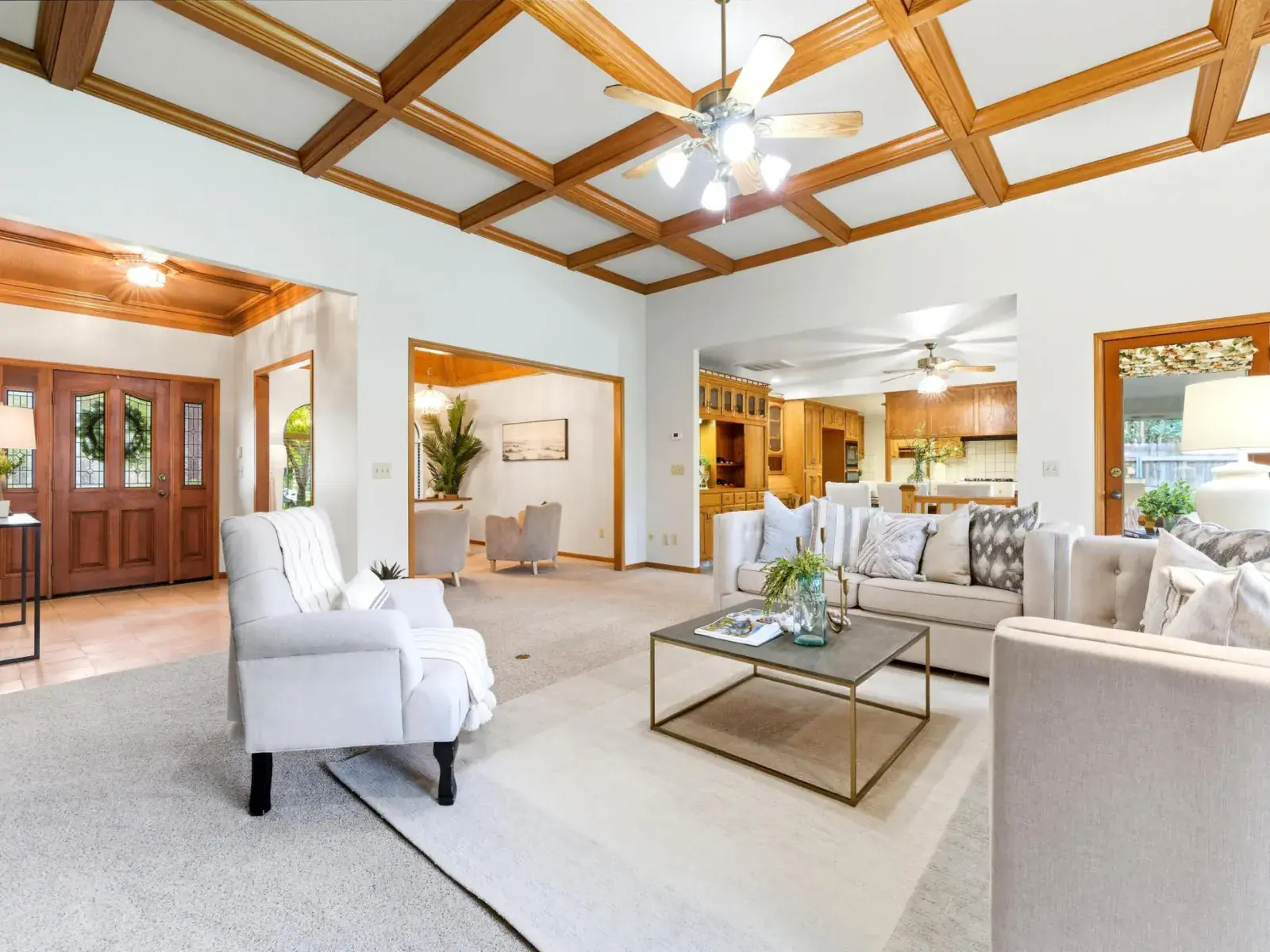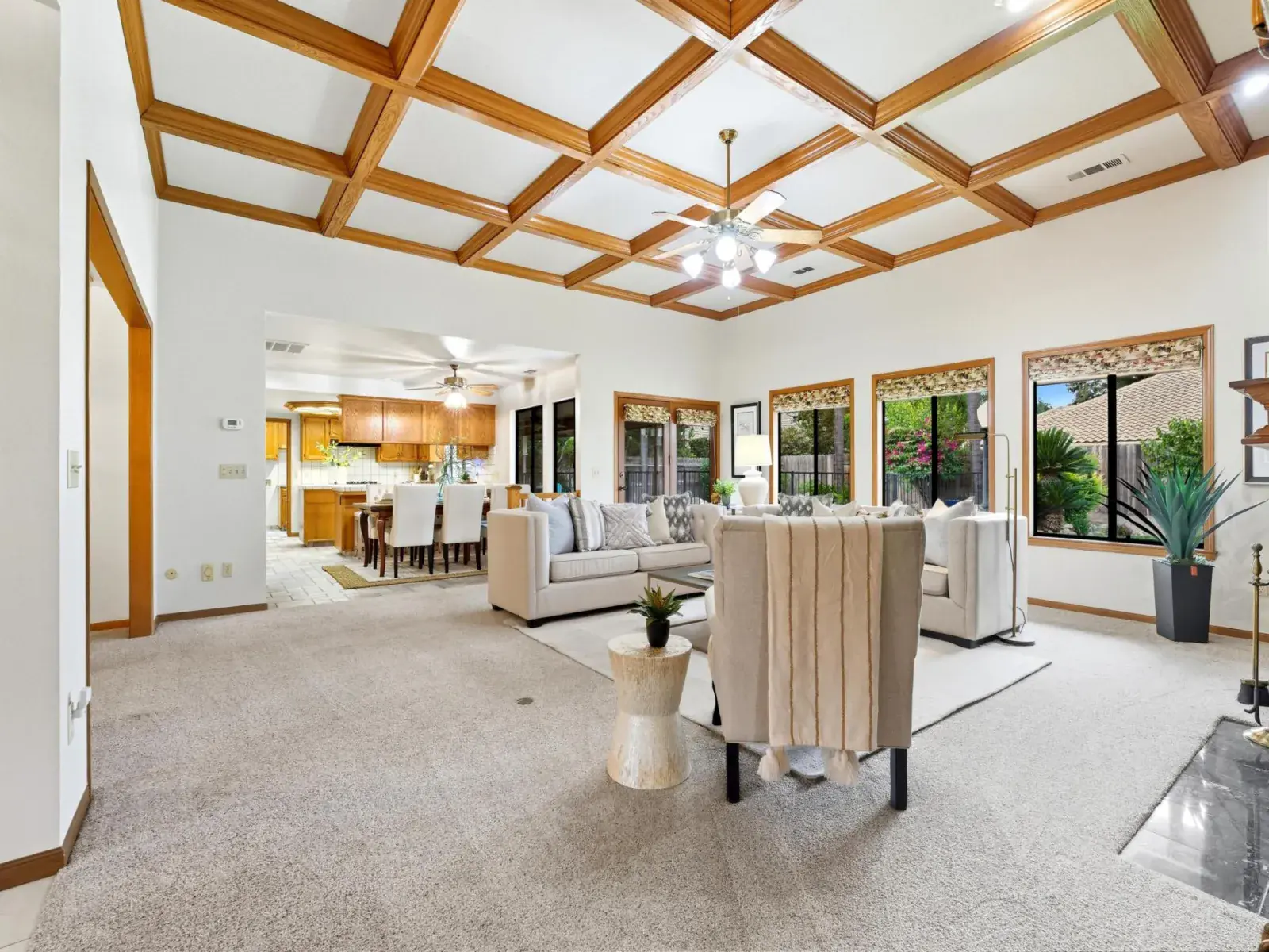 Welcome to this charming home in the heart of Southwest Visalia, nestled in a well-established neighborhood. With timeless brick and siding, and a 3-car garage, this home exudes classic curb appeal. Inside, you’ll discover elegant touches throughout, from the beautiful wood coffered ceilings to the abundant natural light streaming through large windows.
