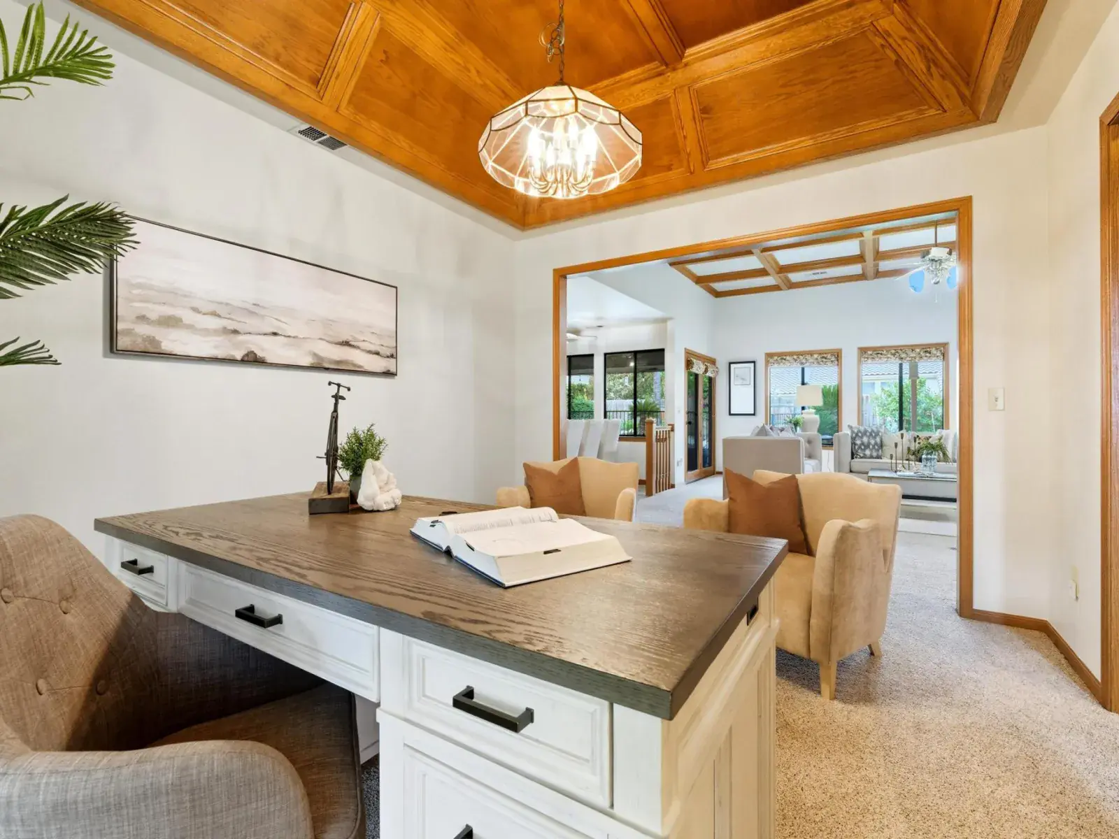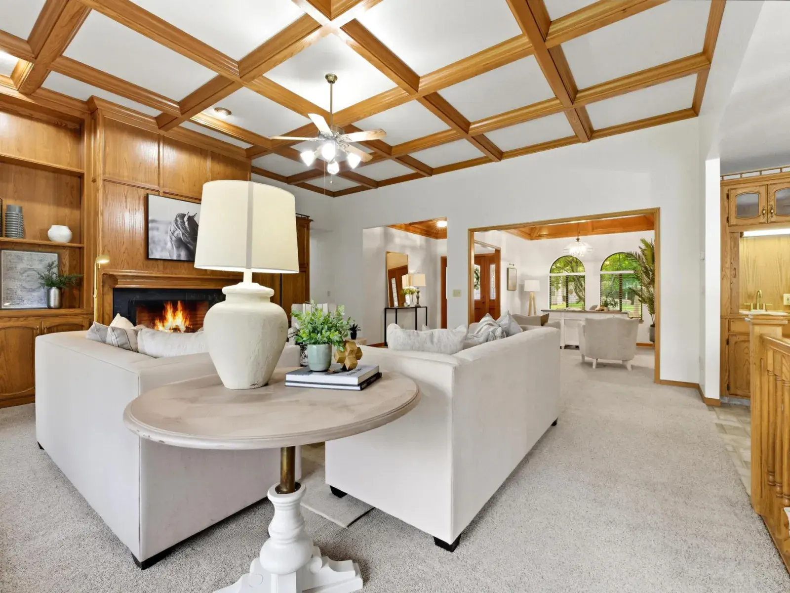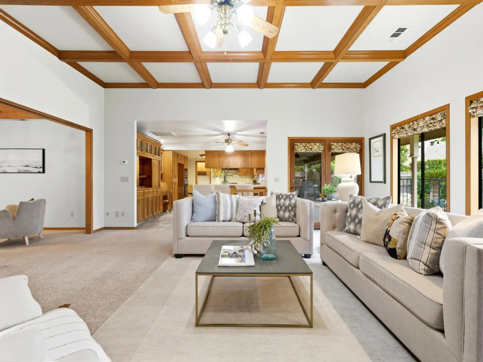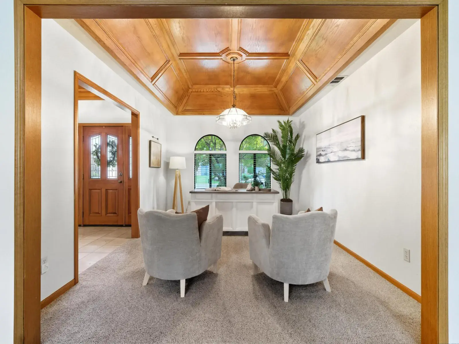 Welcome to this charming home in the heart of Southwest Visalia, nestled in a well-established neighborhood. With timeless brick and siding, and a 3-car garage, this home exudes classic curb appeal. Inside, you’ll discover elegant touches throughout, from the beautiful wood coffered ceilings to the abundant natural light streaming through large windows.