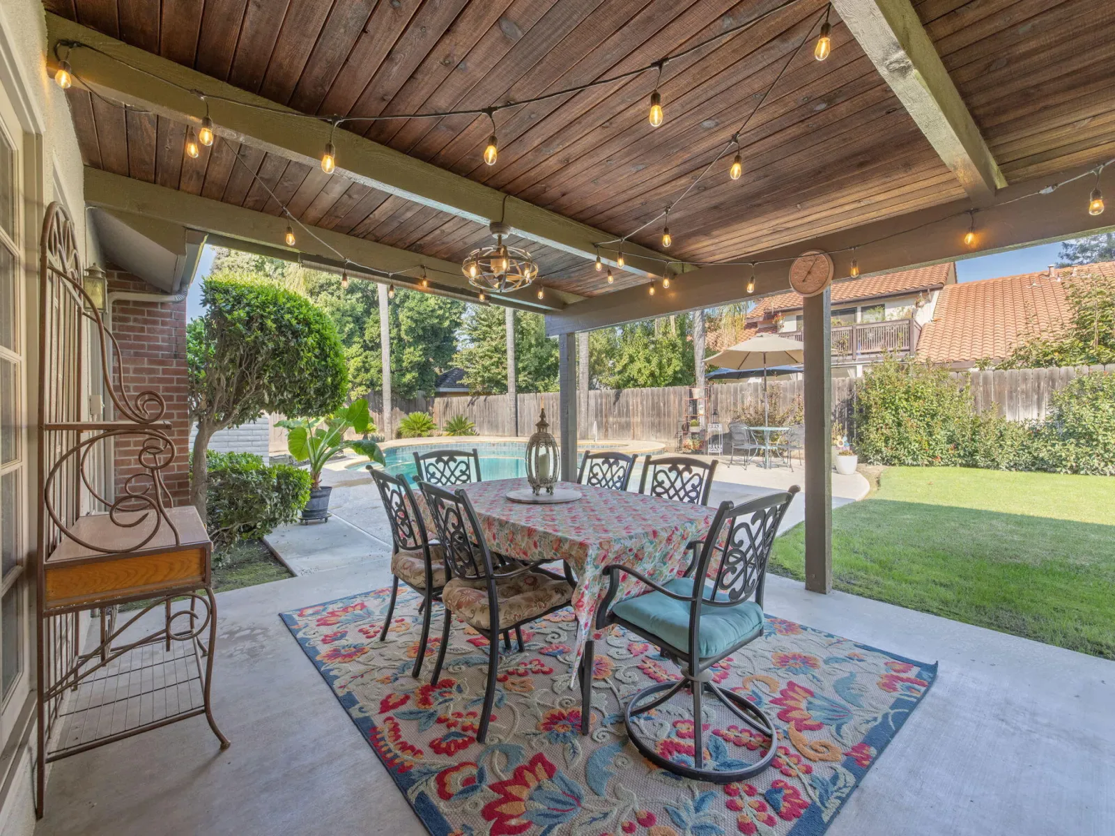 Welcome to 3321 S Stevenson Ct, Visalia! Nestled in the highly desirable Kings Estates community, this charming 3-bedroom, 2-bath home offers 2,241 sq. ft. of beautifully designed living space on a spacious 10,000+ sq. ft. lot at the end of a peaceful cul-de-sac. Featuring vaulted ceilings, a gorgeous brick fireplace, and tastefully updated kitchen and bathrooms, this home blends comfort, character, and timeless design. Step outside to enjoy your own private retreat — a sparkling pool and mature landscaping. The charming wraparound porch evokes a sense of nostalgia and relaxation, perfect for morning coffee or evening sunsets. Homes in Kings Estates rarely come available, making this an exceptional opportunity to own in one of Visalia’s most sought-after neighborhoods.