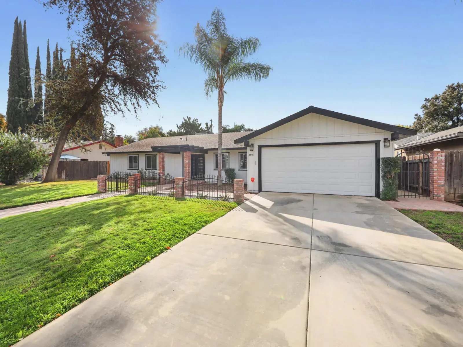 This immaculate residence offers an unparalleled combination of modern design elements and luxury aesthetics. The Captivating residence boasts an impressive array of features that elevate this upgraded, freshly painted interior and exterior home. With four bedrooms and two baths, this home offers ample space for relaxation and family gatherings. Step into the heart of the house to discover a large living room with a new ceiling fan and new flooring, it is perfectly connected to a beautifully designed kitchen adorned with new appliances, freshly painted cabinets, new granite countertops, upgraded light fixtures, and a large seating countertop. As you move through the home, the elegance of the new flooring guides you toward the family room, which includes a fireplace, creating a sense of spaciousness and grandeur. The thoughtfully designed open floor plan seamlessly connects the living spaces, promoting an atmosphere of togetherness and comfort. Enhancing the practicality of this residence, you’ll find an inside laundry room with cabinets, a large primary bedroom with a new ceiling fan, large primary bathroom with a large walk-in closet, double sink bathroom vanity, sizeable updated shower and bathtub. Additionally, there are three cozy bedrooms, all with new flooring and new ceiling fans. Also, an updated hallway bathroom with a double sink vanity, bathtub, and shower. Beyond the interior, venture outside to experience the vast possibilities of a large front and back yard, which includes a beautiful gated pool, a covered patio, and numerous fruit trees. Whether it’s hosting outdoor gatherings or simply relishing the serenity of your own outdoor space, the options are boundless. Nestled within a quiet community and conveniently located near shopping, schools, and churches, this gem presents an unparalleled opportunity to embrace a lifestyle of comfort and convenience.