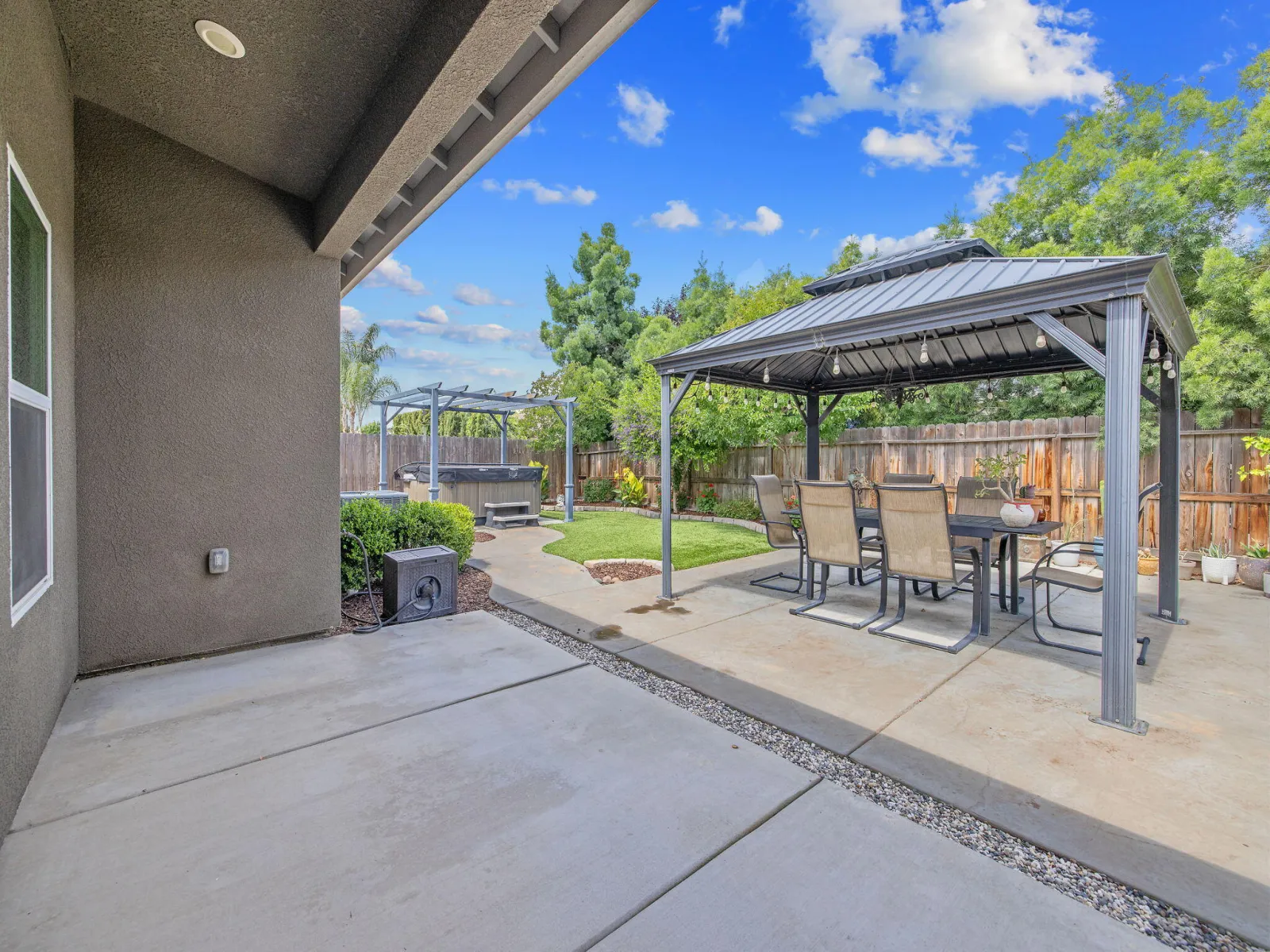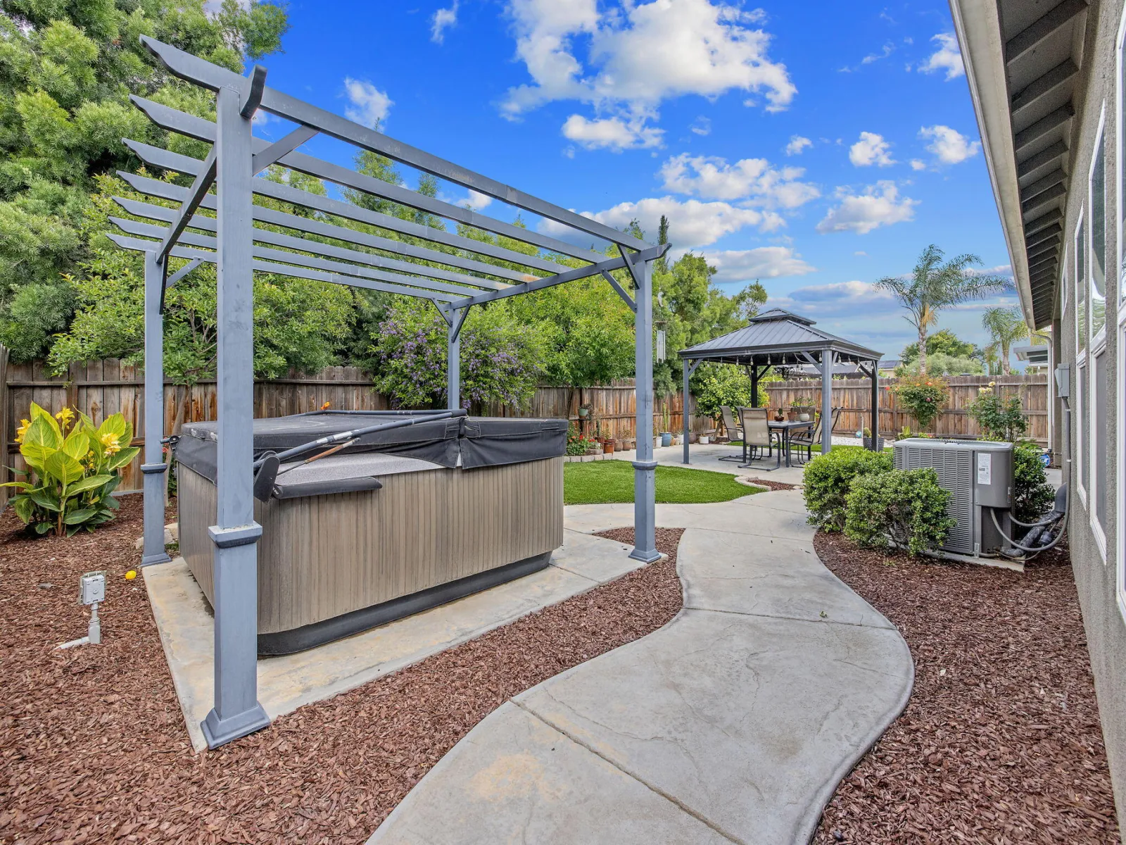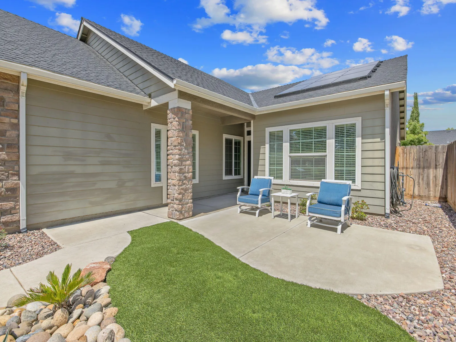 Welcome to this beautifully maintained Northwest Visalia home where versatility meets comfort and modern efficiency. This spacious ~2,252 sq ft property offers the best of flexible living, featuring a 3-bedroom, 2-bath main residence plus an attached private studio with its own bedroom, bathroom, living area, kitchenette, and separate entrance. The studio is a rare bonus use it as: • A guest suite for family and friends • A long-term rental for added monthly income • An Airbnb/short-term rental in a high-demand area Outside, the home truly shines: • Fully landscaped front and back yards with quality turf and drought-tolerant plants, low maintenance, high curb appeal • A private backyard retreat featuring an above-ground spa, perfect for relaxing or entertaining Inside, pride of ownership shows in every detail, meticulously cared for and completely move-in ready. An existing solar PPA system adds long-term energy savings from day one. Conveniently located near Oak Grove Elementary in one of Northwest Visalia’s most desirable neighborhoods. Don’t miss this rare opportunity to own a flexible, income-generating property in a sought-after community.