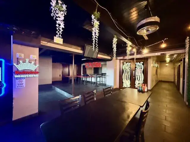Over 7,500 square feet make up the restaurant seating area, kitchen, bar, banquet room, not to mention the raised stage and dance floor!