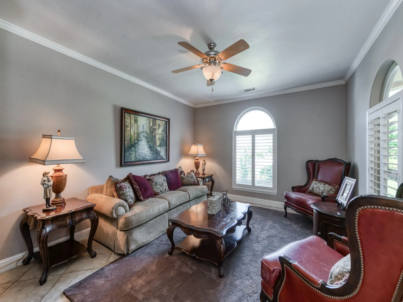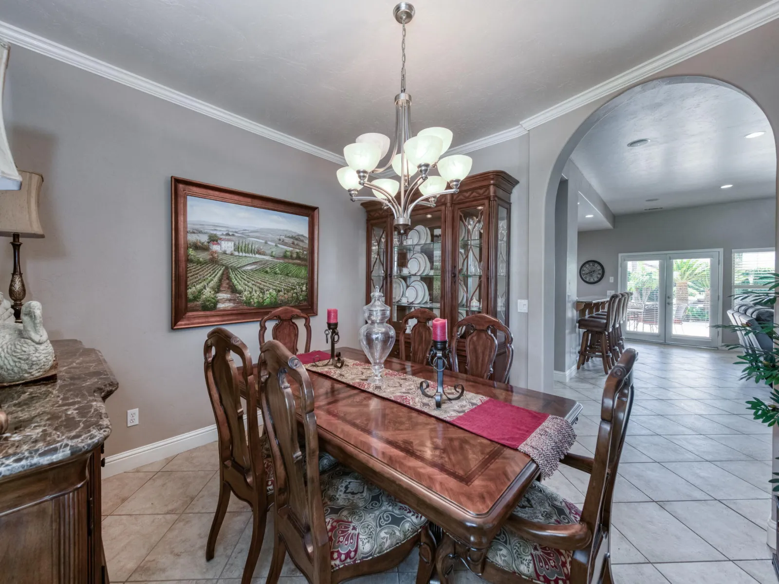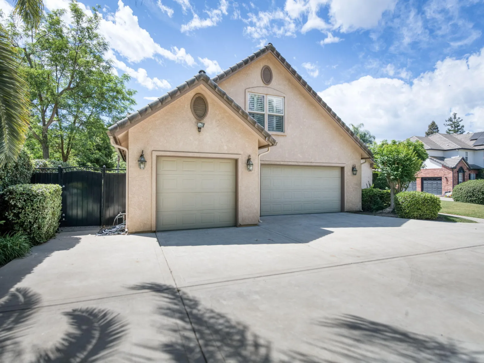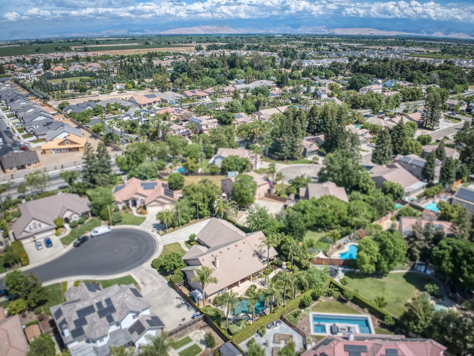 Welcome to this exceptional residence in the highly sought-after Chardonnay Estates, a prestigious gated community in NW Visalia. Situated on a quiet cul-de-sac, this beautifully maintained home offers an ideal blend of comfort, functionality, and thoughtful upgrades. The well-designed layout features four spacious bedrooms conveniently located downstairs, including an isolated primary retreat for added privacy. A versatile bonus flex room with its own dedicated AC system and private bathroom offers endless possibilities, perfect for a media room, gym, fifth bedroom, or playroom. At the heart of the home is a large, inviting kitchen equipped with granite countertops, a breakfast bar, a prep island with sink, stainless steel appliances including double ovens, and abundant cabinet storage. Recessed lighting and expansive windows fill the home with natural light while providing picturesque views of the resort-style backyard. Enjoy multiple living and dining spaces with two separate living rooms and both formal and casual dining areas. The casual dining space opens to a covered patio complete with ceiling fans and exterior speakers, creating the perfect setting for indoor-outdoor entertaining. Step outside to your private backyard oasis featuring a sparkling in-ground pool, spa, and tranquil waterfall. Additional highlights include plantation shutters throughout, new carpet downstairs, new rain gutters, and a finished garage with extensive built-in cabinetry and ample lighting. Located just half a mile from the highly sought-after Oak Grove Elementary School, this home offers luxury living in a prime location.