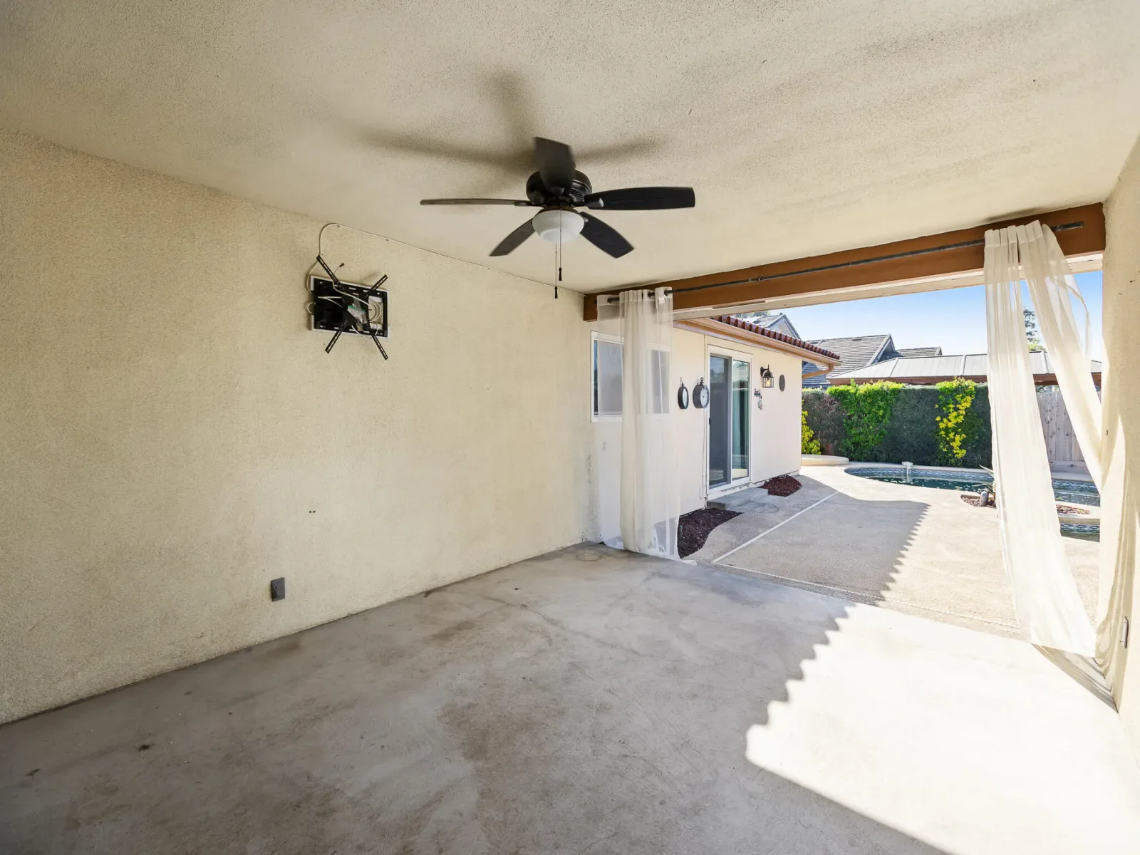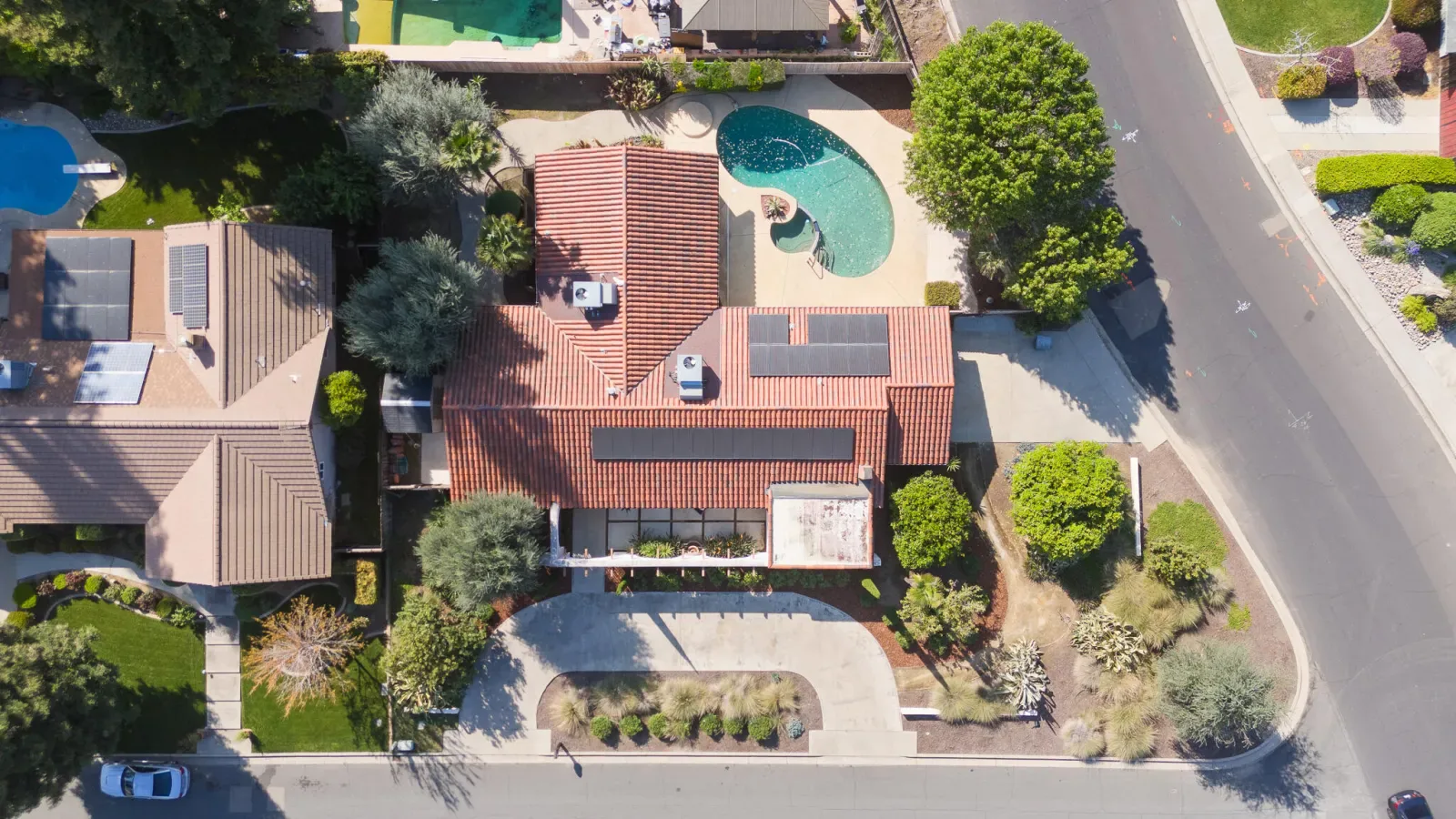 Sitting on the edge of a quiet cul-de-sac in desirable Northwest Visalia, this distinctive Spanish-inspired residence offers space, character, and resort-style outdoor living. Situated on an expansive 0.30-acre corner lot, the home features approximately 2,639 square feet of living space with three bedrooms and three bathrooms, it provides both comfort and flexibility for everyday living and entertaining. Inside, the spacious floor plan includes multiple gathering areas, a cozy masonry fireplace, and large windows that invite natural light throughout the home. The kitchen and living areas flow easily together, creating an inviting environment for hosting family and friends. Generous room sizes and abundant storage add to the home’s practical appeal. Step outside to your private backyard retreat where a sparkling pebble-tec pool and spa take center stage. Mature landscaping and a covered patio create the perfect setting for lazy summer evenings, outdoor dining, and relaxing weekends at home. Additional highlights include owned solar panels so no fussy leases to worry about, an attached two- car garage, newer central heating and air, tile roof, and low maintenance grounds dotted with fruit trees that enhance the home’s classic curb appeal. Ideally located near shopping, this home is just minutes from the popular In Shape Health Clubs and the Visalia Country Club, placing golf, fitness, and dining conveniently close to home. What a rare opportunity to own a spacious home with timeless architecture and an exceptional lot in Hyde Park West, one of Visalia’s premier established neighborhoods. Staging credit: Upstaged by Traci Gardner Photo credit: Prestige Home Media