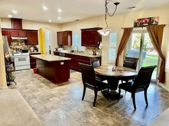 Nestled in the highly sought after area of North West Visalia, this beautifully home offers an abundance of space for family, friends, and entertaining. Walk through the grand entryway into an elegant formal dining room, perfect for gatherings and celebrations. The kitchen features a stainless steel refrigerator, sink and dishwasher, granite countertops and backsplash with a center island and large walk-in pantry. The Living Room has plenty of windows for natural light to filter in through the plantation shutters which may also be found throughout the home. A gas fireplace also rounds out the details of the Living Room. Off the Living Room Hallway is a spacious Laundry Room with a full bathroom for guest. Past the Laundry Room is the entrance from Garage which host space for three vehicles. Upstairs you will find the Primary Suite with a spacious Primary Bathroom and walk-in closets, The other three bedrooms are also located upstairs each with large closets and a shared full bathroom. There is ample storage off the hallway with several built-in’s for linens as well as a built-in desk area for remote in home work. The backyard has several citrus trees and a covered patio. The shed to the side of the property is perfect for storing yard equipment and tools. Enjoy proximity to top-rated schools, parks, shopping, and dining, all while living in one of Visalia’s most sought-after neighborhoods. Don’t miss your chance to own this home — schedule your private tour today! Sellers are HIGHLY MOTIVATED!!!