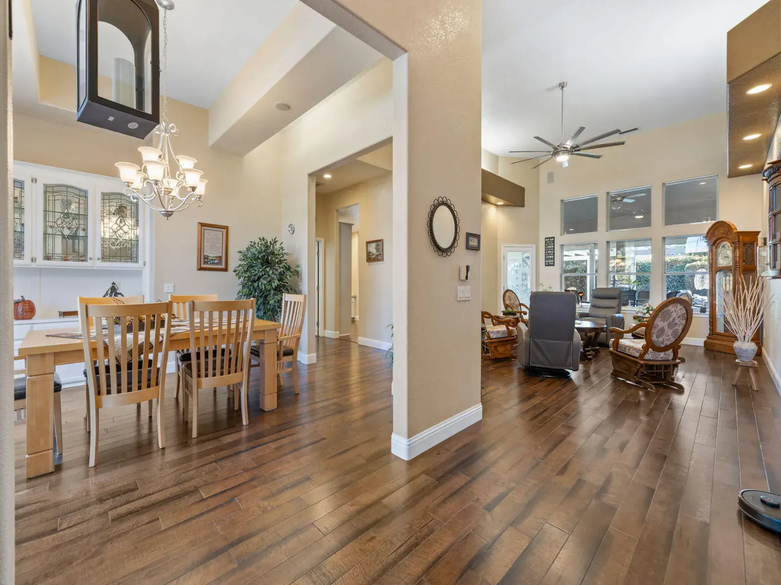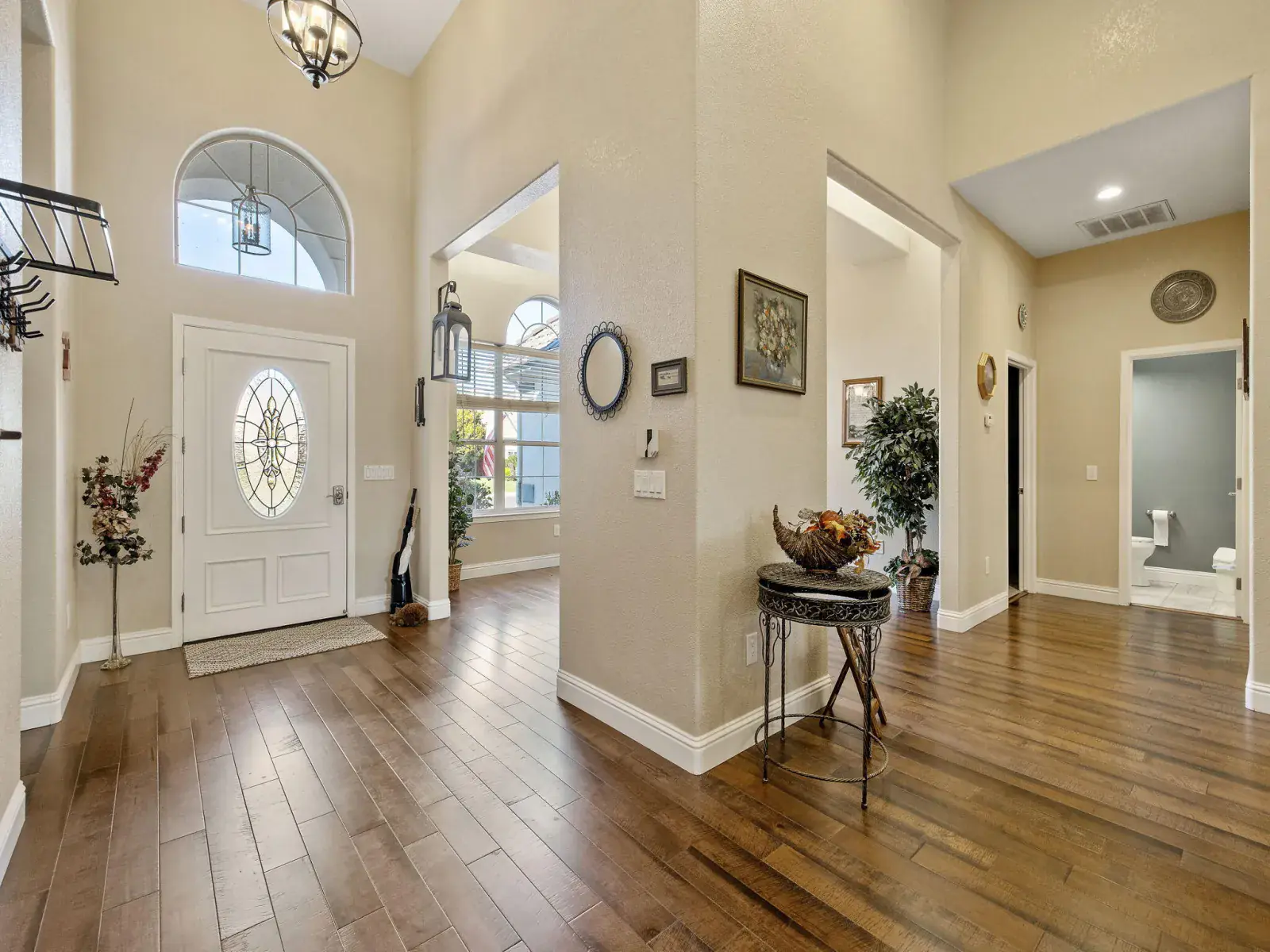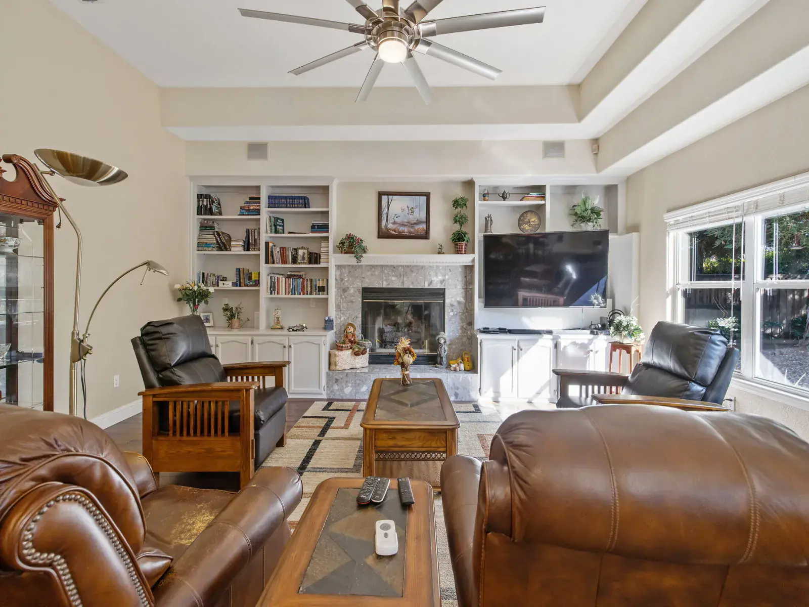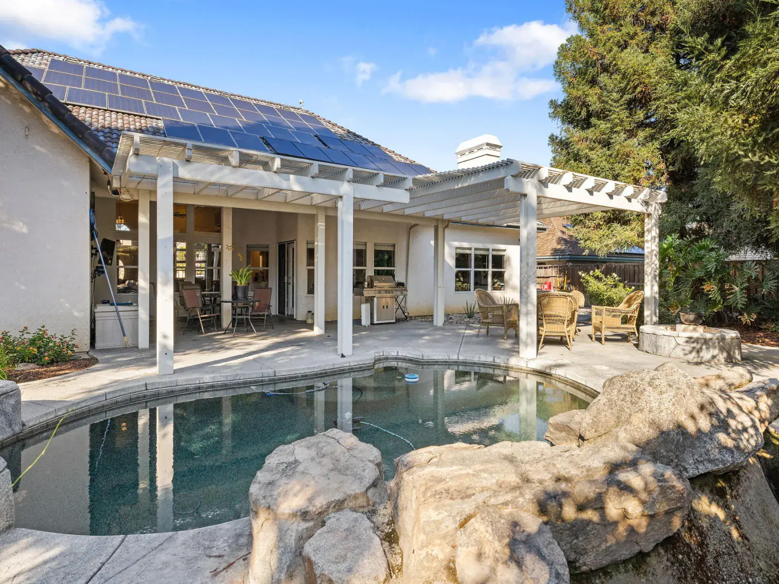 Welcome to this beautiful home located in the prestigious gated community of Stonebridge III. This elegant home offers the perfect blend of luxury and comfort. Step inside to discover beautiful hardwood flooring, granite countertops, and a chef’s dream kitchen complete with a 5-burner stove, farm sink, island with bar sink, and dishwasher. The living room features a cozy gas fireplace, while the master suite is a true retreat with its own fireplace, soaking tub, and dual vanities. Step outside to your private backyard oasis with a sparkling pool and spa ideal for entertaining or relaxing year-round. Additional highlights include: multi-car garage with drive-through access, Owned solar with 43 panels and 240 AMP plugs in the garage (welder, RV, or EV charging)