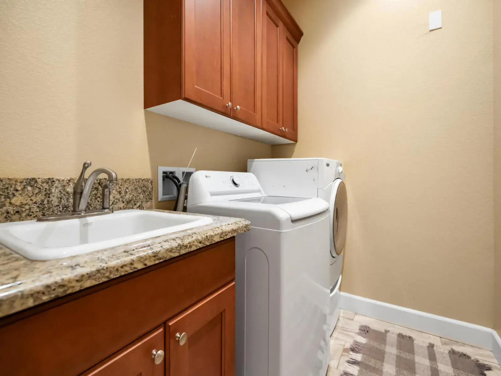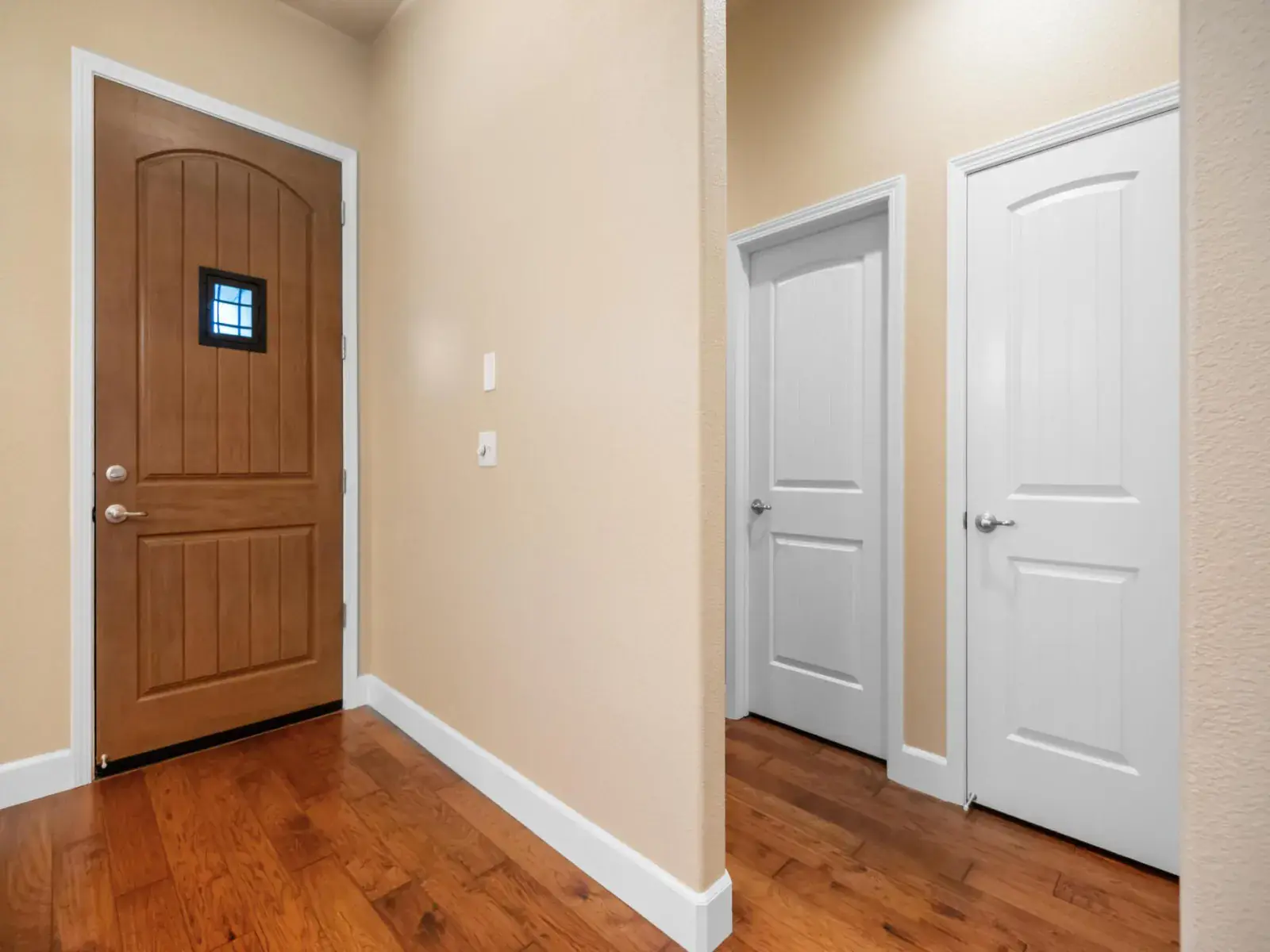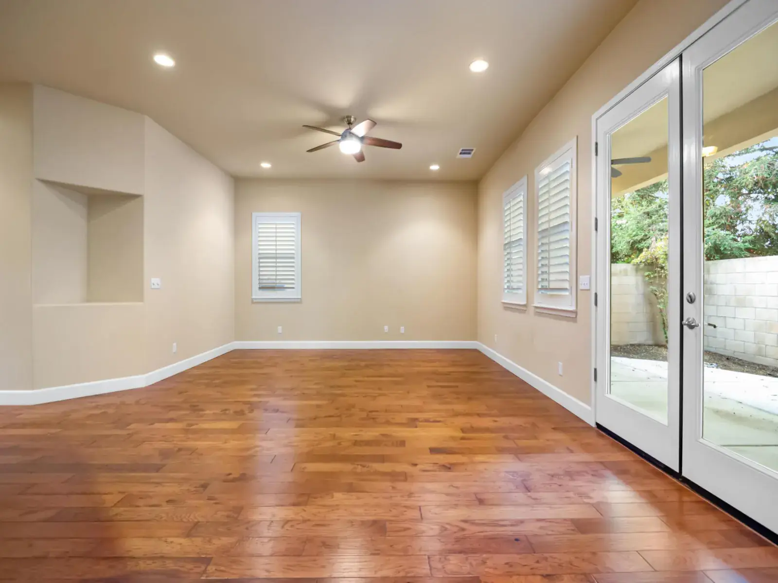Stunning, move-in ready home in the gated Turnberry! Tucked away at the end of a quiet corner in this desirable SW Visalia community, this beautifully maintained home offers the perfect blend of luxury and low-maintenance living. From the moment you arrive, the curb appeal impresses—with a custom wrought iron gate and elegant landscaping. Step inside to find hardwood floors, soaring ceilings, and a formal entry that flows into flexible living spaces—use as a formal living or dining room to suit your lifestyle. The chef’s kitchen is the heart of the home, featuring a large center island with breakfast bar, granite countertops, stainless steel appliances, and abundant cabinetry. It opens seamlessly to the great room, complete with fireplace, expansive windows, and French doors leading to a covered patio—perfect for indoor-outdoor living. The spacious primary suite is filled with natural light and includes plantation shutters, patio access, and a spa-like en-suite bath with dual vanities, a large soaking tub, tiled shower, and oversized walk-in closet. Two additional bedrooms offer plenty of space for guests, home office, or hobbies. Other highlights include an inside laundry room with utility sink and storage, plus a 2-car garage with extra space. All nestled in a prime location near schools, shopping, and quick access to Hwy 99. This home is truly special—high-quality, low-maintenance, and ready for you to make it yours. Come see why Turnberry is one of SW Visalia’s most sought-after neighborhoods!