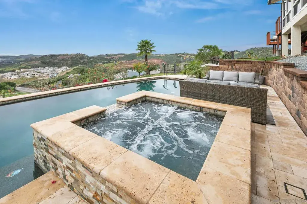 Welcome home to this stunning West-facing estate with panoramic views and resort-style grounds. Enjoy sweeping views & breathtaking sunsets every evening, where acres of open space create a rare sense of privacy and serenity. A veranda spans the entire home, providing an ideal setting for sunset dining, entertaining, or simply enjoying views that stretch for miles. The outdoor spaces are a true oasis, featuring a saltwater pool w/ spa, a fire pit, an outdoor pizza oven, a 4-hole putting green, and ample space for endless possibilities, including planting your own vineyard. A charming children’s playhouse and playground add whimsy, while mature landscaping, 22+ fruit trees, and vegetation create an environment perfect for sustainable living. Inside, the open floor plan encompasses 3,106 square feet with 3BD/3.5BA, highlighted by hardwood floors and views from every window. The large primary bedroom retreat offers peaceful views and a spacious walk-in closet. The custom kitchen is designed for both function and inspiration, featuring a large center island, granite countertops, and stainless steel appliances, ideal for creating culinary delights and entertaining. Solar is paid. An electric stair-chair provides convenient access from home to garage. $200K in home improvements has been invested into the property, enhancing comfort, quality, and long-term value. Across the valley is the luxury Cal-a-Vie Health Spa and Vista Valley Country Club with an 18-hole championship golf course. Experience the magic of this one-of-a-kind oasis. Schedule your showing today! Supplement: The property is a productive and picturesque retreat featuring an extensive collection of mature fruit trees and edible landscaping, including: Citrus: 1 kumquat, 1 tangelo, 1 Valencia orange, 2 additional orange trees, 1 grapefruit, and 2–3 tangerine trees, Avocado: 4 trees (multiple varieties), Stone Fruit: 2 peach trees and 2 nectarine trees, Orchard Trees: 2 cherry trees and 4 apple trees, Specialty Plants: 4 blueberry bushes and 2 Arabica coffee plants. A charming hibiscus promenade winds through the backyard, bursting with tropical color and fragrance. Outdoor enhancements include a saltwater pool and spa, fire pit, outdoor pizza oven, new 4-hole putting green, children’s playhouse and playground, new redwood fencing, and new exterior house lighting. A previously hidden front-yard paver patio was discovered and rebuilt features mountain and garden views. A new blacktop driveway with sealer enhances curb appeal, and neighbors along Hoxie Ranch Road collectively repaved the entire road from Gopher Canyon Road. A spacious bonus room adds valuable flexibility to the home, ideal for cozy movie nights, a creative studio, or a comfortable work-from-home space. Major system and infrastructure upgrades include an updated main electrical panel, an updated pool sub-electrical panel to accommodate a Pentair heat pump pool heater, a new pool electrical panel, and the installation of a 1½-inch high-pressure fire line. A new 36-station drip irrigation system services the extensive landscaping. Interior and mechanical upgrades include stair-chair install from home to garage, new hardwood floors in two bedrooms, new kitchen appliances, a new fireplace hearth, five new ceiling fans, and extensive HVAC improvements, including a recently replaced two-zone HVAC compressor and air handler system, plus the addition of a new Trane heat pump HVAC compressor for enhanced efficiency and comfort. The home is also equipped with a Vivint security system with exterior security cameras monitoring 360 degrees around the home. Solar panels are fully paid for, offering long-term energy savings. This family estate awaits your visit and the loving touches that will make it your next home. There is much, much more to see.