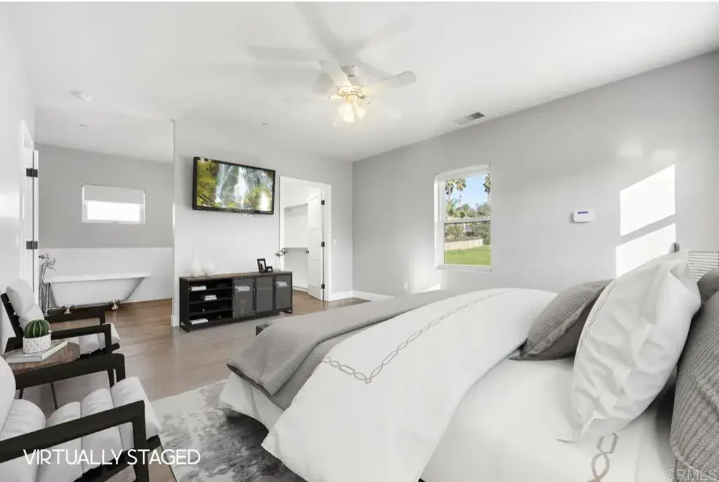 Set on 1.14 acres at the border of Vista and Bonsall, this MODERN FARMHOUSE is one of the most charming properties in all of North County San Diego! A welcoming wraparound porch sets the tone for this peaceful, private retreat with panoramic hillside views and endless possibilities. The home offers 4 bedrooms, 3.5 baths, and approx. 2,740 sqft, including a private in-law suite with separate entry—ideal for multigenerational living, guests, or rental potential. Beautifully upgraded throughout with wood flooring, designer fixtures, and an OWNED 42-panel solar system adding! At the heart of the home is a stunning chef’s kitchen featuring slab countertops, a farmhouse sink, large center island, stainless steel appliances, glass tile backsplash, and a walk-in pantry with charming barn door entry. The expansive, versatile family room is perfect for everyday living or entertaining. Upstairs, the primary suite is a true retreat with a spa-like soaking tub and separate shower. A detached oversized garage and extended driveway provide exceptional versatility for multiple vehicles, boats, RVs/Toys, while two detached storage sheds offer even more flexibility. The generous lot presents a world of opportunity for an ADU, workshop, or expanded outdoor living. Quiet, scenic, and truly unique—this is a rare opportunity to own a modern farmhouse with space, views, and versatility in an exceptional North County location, and ideally located within the Bonsall School District.