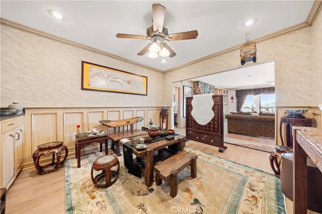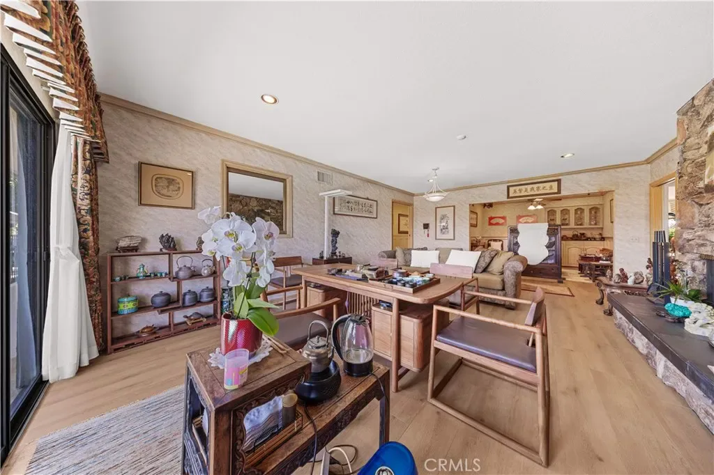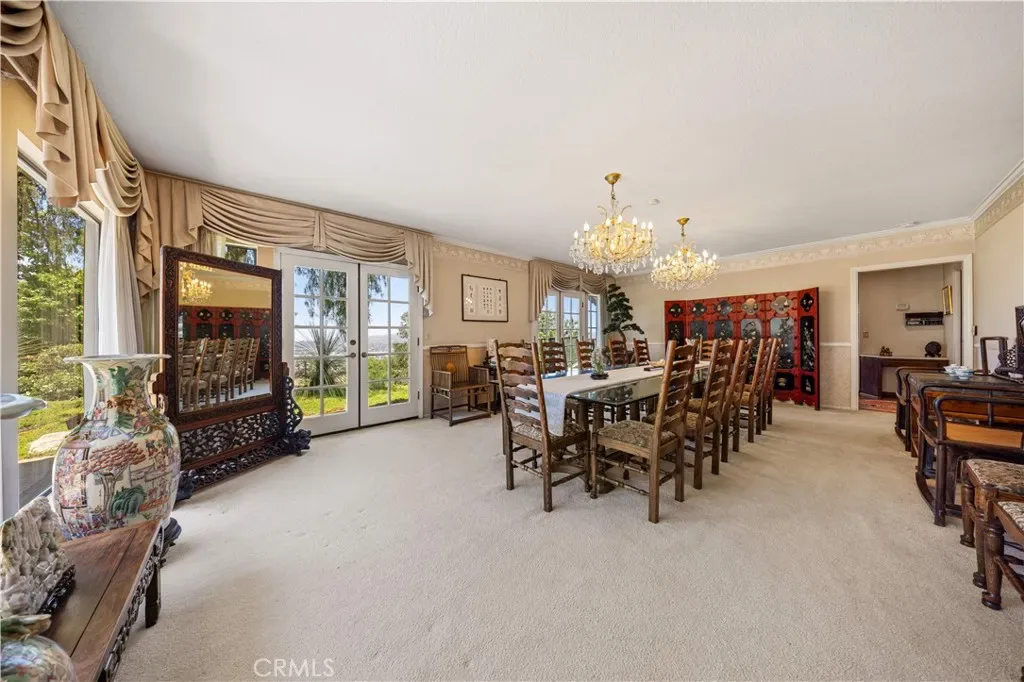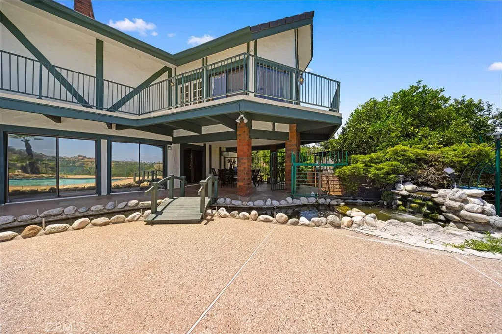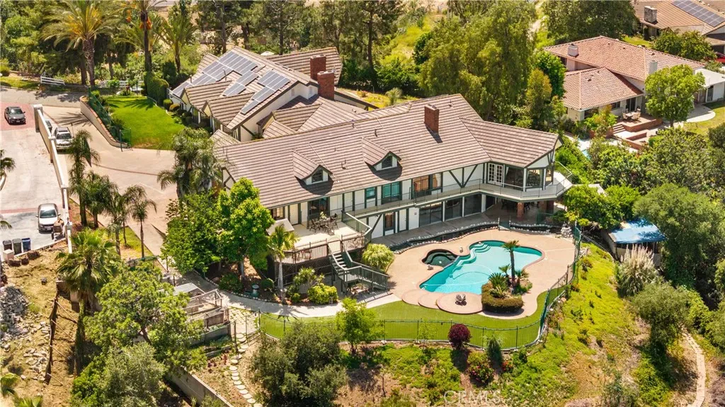 Custom home equipped with Solar panels on a very private gated 1.5 acre lot. 270 degree panoramic view of Mountains, Hills and Valley. Formal living room with marble fireplace and view, large dining room with view, large family room fireplace, view and adjoining study. Spacious kitchen with center island, 2 dishwashers, commercial grade exhaust fan, Jenn-Air 6 burner gas range, Lynx wok burner, Thermador 6 station induction unit and a built-in oversized Electrolux side by side refrigerator/freezer. plus 2 pantries and a large breakfast room with view. 5 spacious en-suite bedrooms and 7 bathrooms. Spacious laundry room with folding tables. the lower level includes an additional 1,300 sqft of space for relaxation with a bar and wine cellar. Beautiful custom pool/spa. Koi pond. Plenty of space outdoors for Children to play and for vegetable gardening, fruit trees and livestock. long private gated driveway with 4 car garage and plenty of space for cars and RV parking. Close and convenient to the Cities of Walnut, Diamond Bar and Rowland Heights and only minutes to Orange County. No Mello Roos or HOA fees.