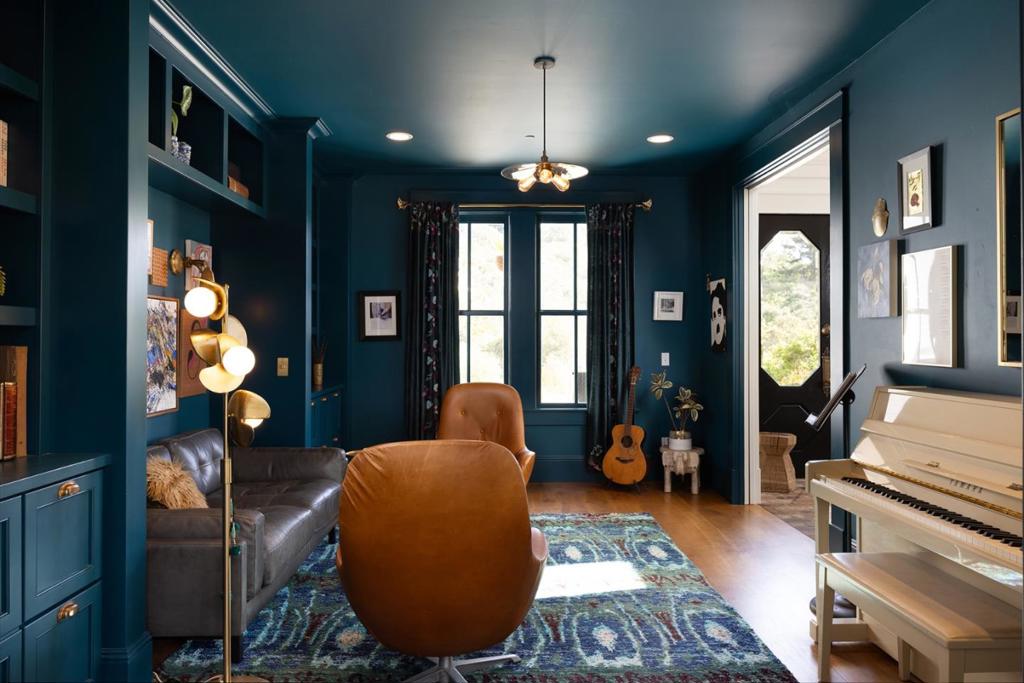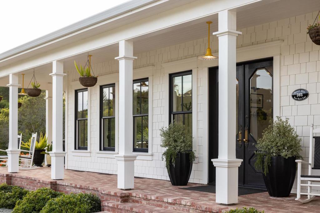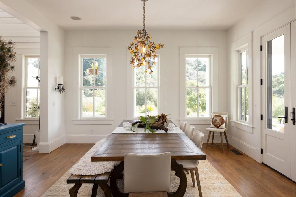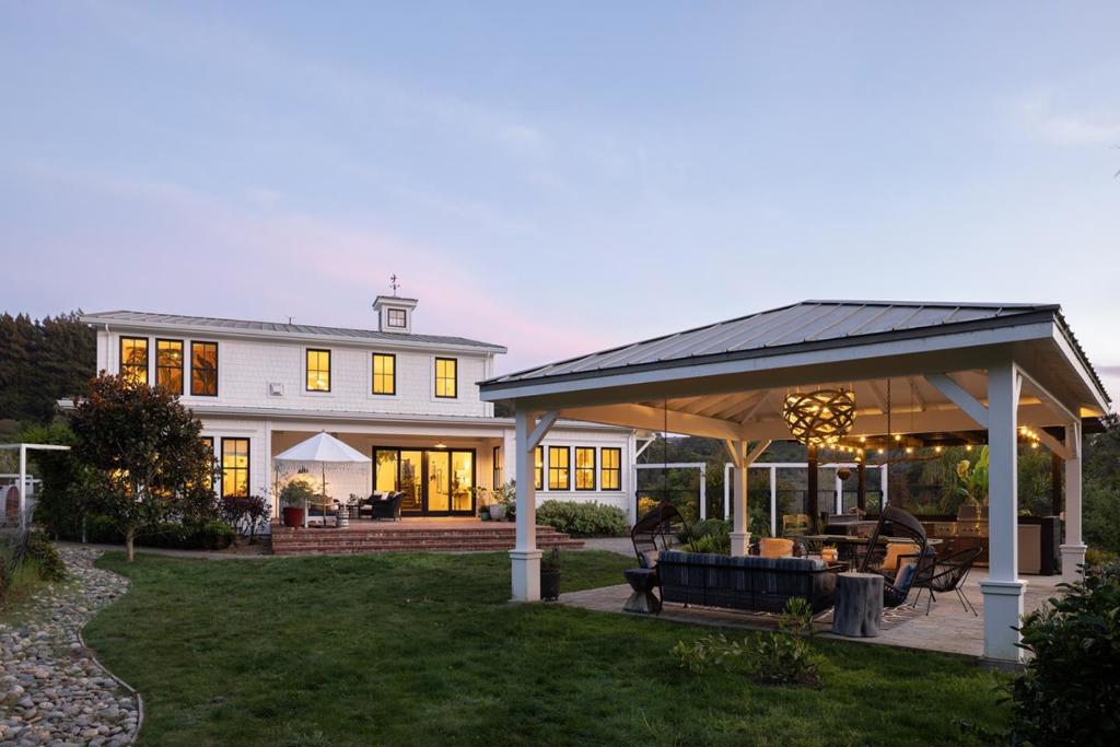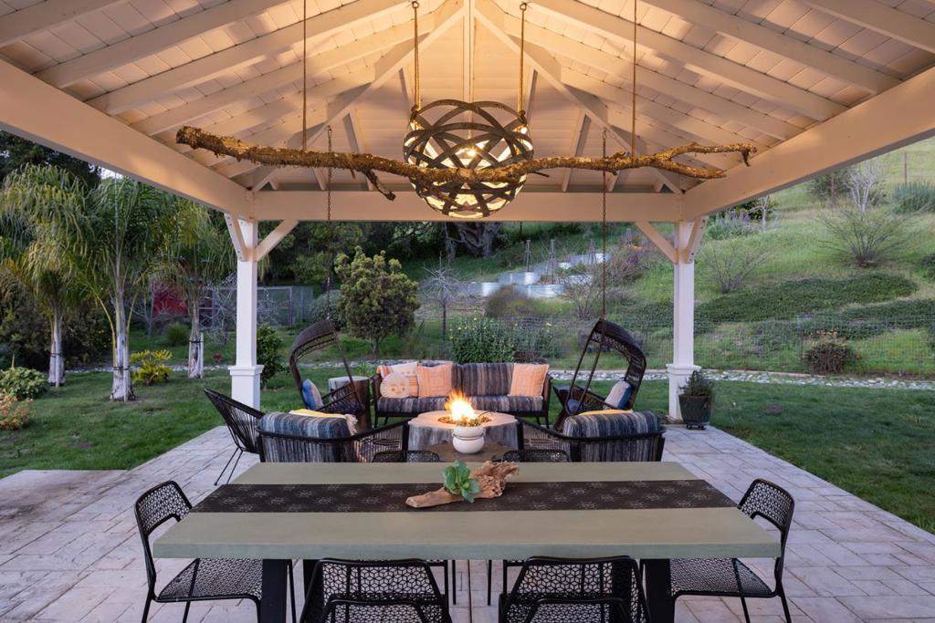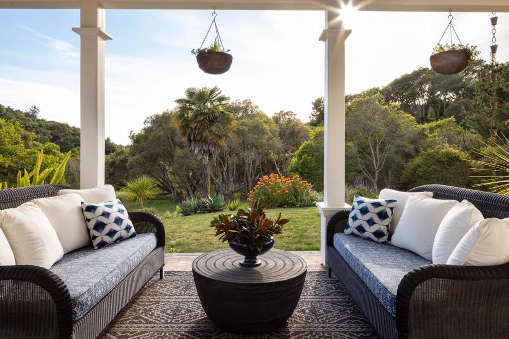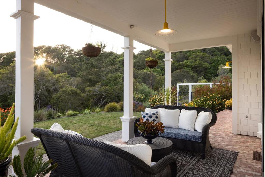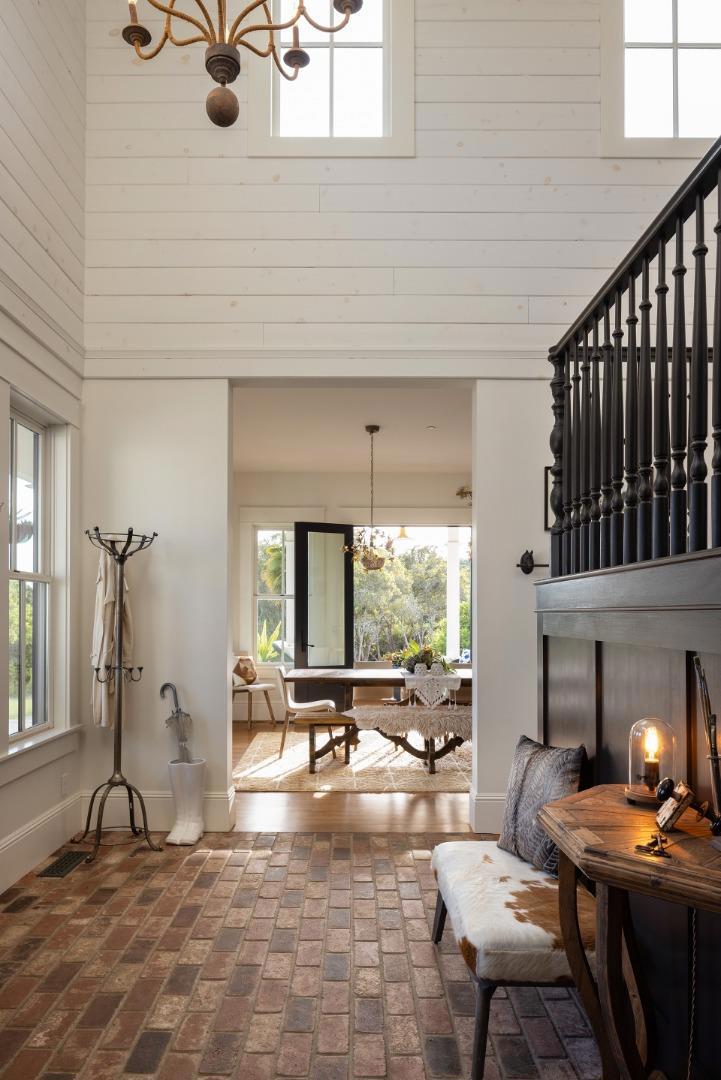 Honey Hill is a 21+ acre estate in the Aptos Hills that combines privacy, scale, and proximity, set among the rolling landscapes of Larkin Valley with panoramic views and minutes to Aptos Village and the coast. Built in 2014, the 3,796 sq ft home is designed for both daily living and entertaining, with wraparound brick porches, high ceilings, abundant natural light, and seamless indoor outdoor flow. The living room features a fireplace, built-ins, and direct backyard access. The chef’s kitchen includes marble countertops, farmhouse sink, island, breakfast bar, walk-in pantry, and breakfast nook, with a dining room opening to the porch and a separate library for retreat. The main-level primary suite offers herringbone floors, walk-in closet, and a bath with clawfoot tub and double shower, while upstairs includes three bedrooms, full bath, family room, and office. Outdoor amenities include covered dining, firepit, outdoor kitchen, gardens, fruit trees, trails, and space for horses. Additional features include an oversized garage, mudroom, RV hookups, generator, and potential for a barn or ADU. A rare position where acreage and privacy meet coastal access, offering the feel of a secluded ranch just minutes from Aptos, Santa Cruz, and the broader Monterey Bay.