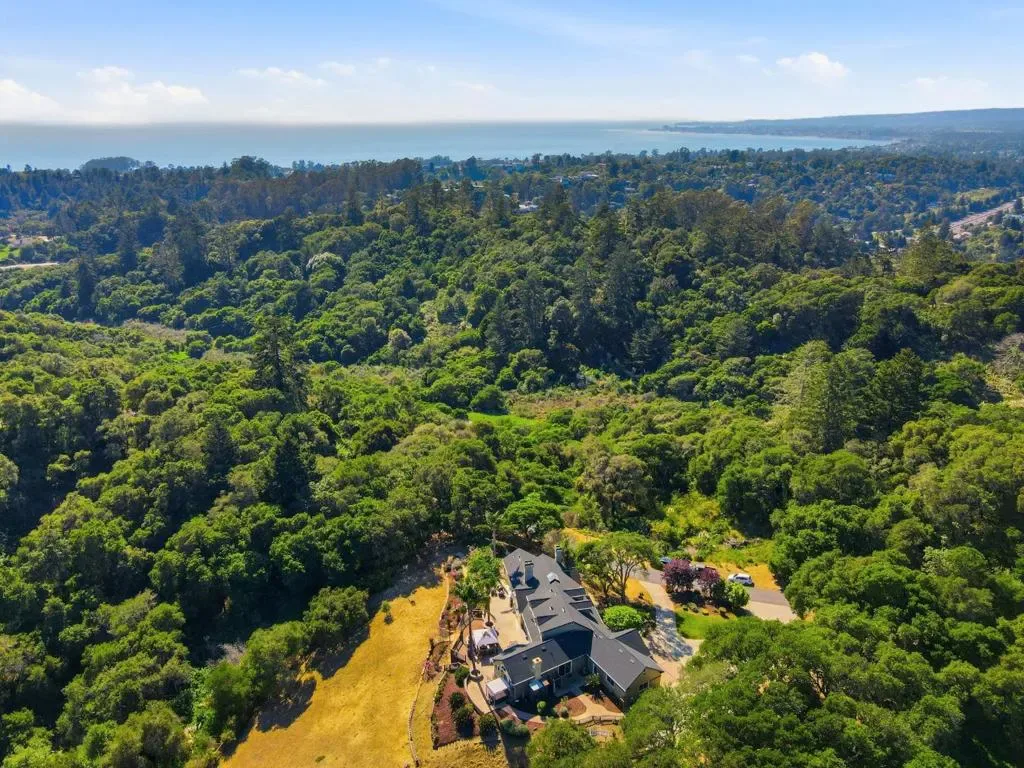 Welcome to the exclusive Mockingbird Ridge neighborhood, a stunning hilltop home with mountain views and ocean peeks. A beautifully landscaped front leads to the formal entry that opens to the living room with sweeping views, one of four cozy fireplaces. In the dining and kitchen, La Cantina doors bring the outside in. A wine bar with fridge, island for 10, and a chefs kitchen to delight any cook: 48″ Viking gas range, pot filler, Wolf double ovens, 2 Fisher & Paykel dishwashers, 2 sinks with Grohe faucets, Miele fridge, built-in espresso maker, pantry, and an eat-in area. The separate family room includes a wet bar, floor-to-ceiling windows, river rock fireplace, and access to the patio with hot tub, fireplace, and garden. The ground-floor primary features high ceilings, access to the patio, and updated ensuite. Also downstairs: guest room, full bath with steam shower, office with fireplace, laundry with sink, half bath, and wine room. Upstairs are two more bedrooms and a updated double sink bathroom. New roof, Anderson windows and new exterior and interior painting. This home sits on 11+ acres, with lower property access from Race Horse Ln. Close to Seascape Resort and fwy. Zoned special use, buyers to explore possibilities: vineyard,horses, etc. Don’t miss out on this one!