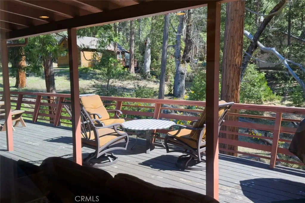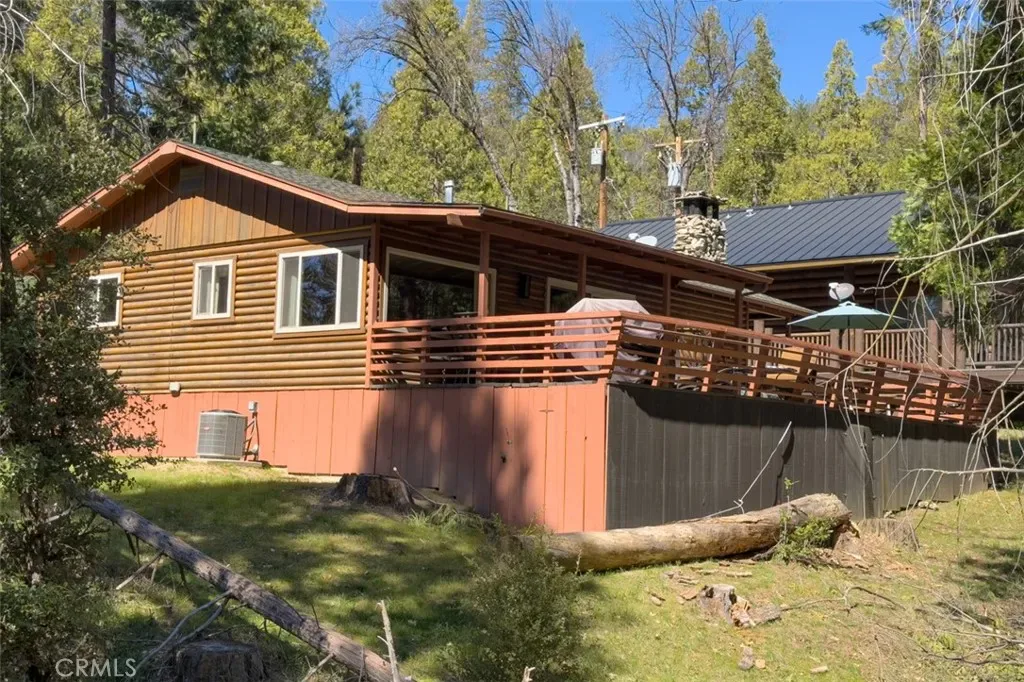 The home features a spacious deck, perfect for relaxing under the stars or entertaining guests in a serene mountain setting. Inside, the cabin offers cozy living spaces with classic log construction that enhances its warm, inviting character. An on-demand generator ensures convenience and reliability in all seasons.