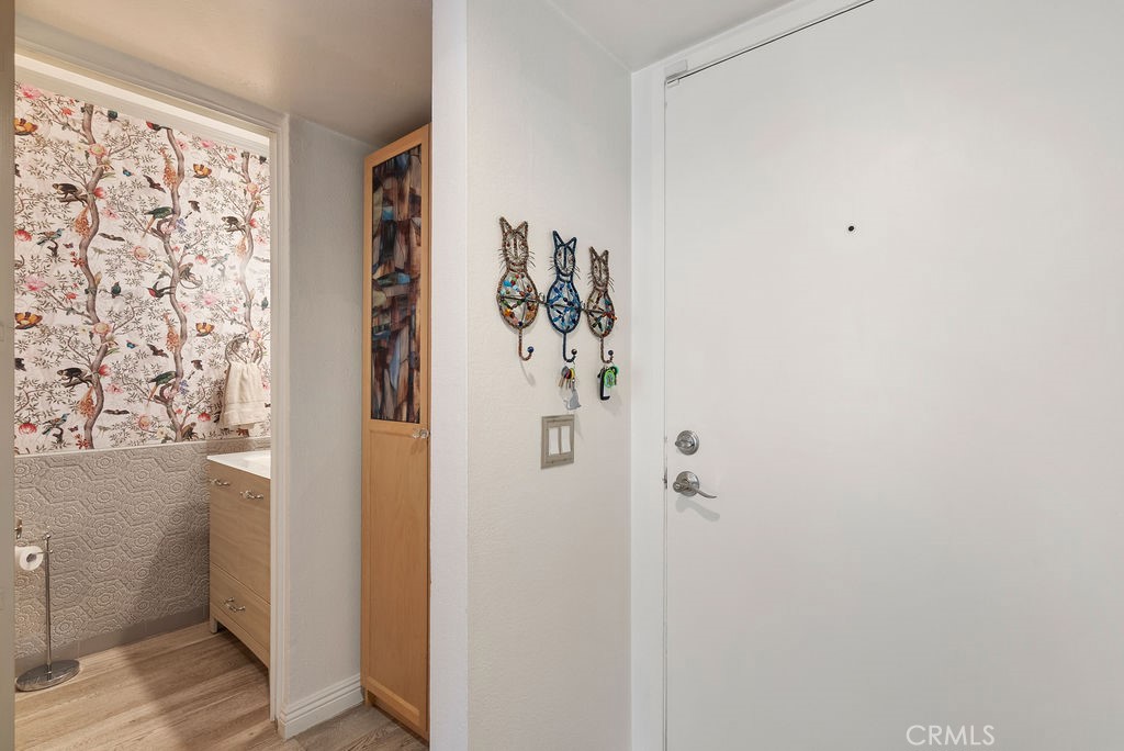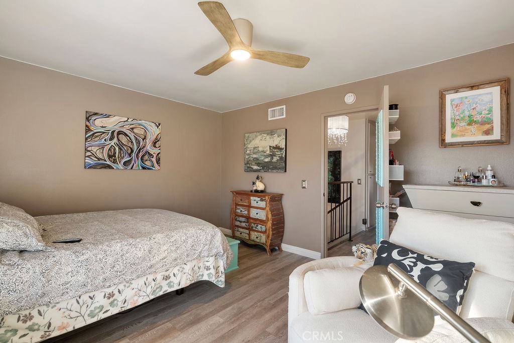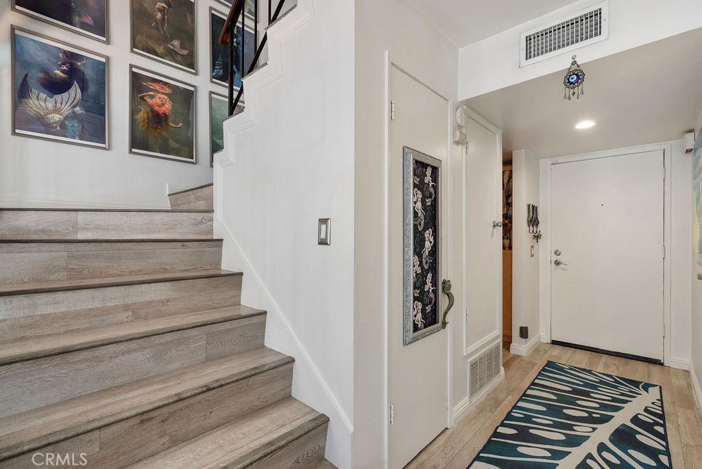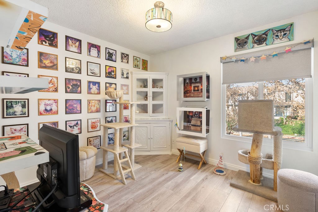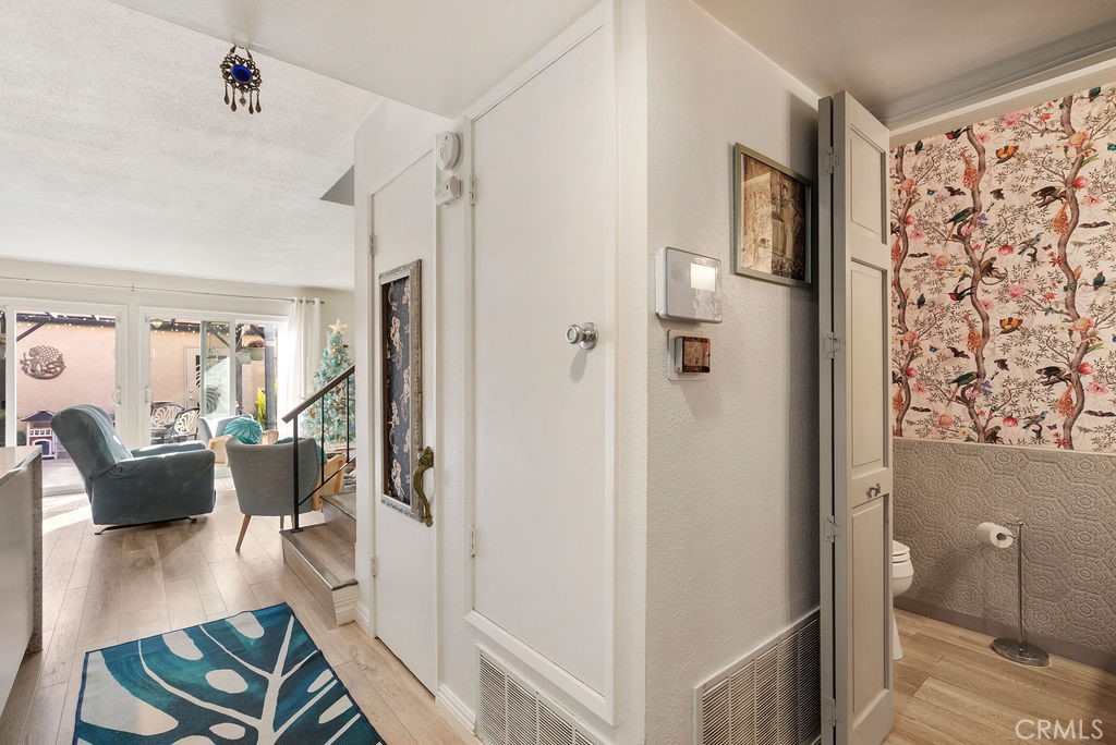 Dining Room/Living Room with Double sliding glass patio doors gives you almost a complete wall of glass with a true California setting, and for your fur babies, a built in pet door to the Patio* Large ,17/20 Patio with lighted Pergola with sunscreen with Ample outdoor living space. Beautiful Custom Screen Door, leads to garage access *Secondary bedroom 1*Newly remodeled with wardrobe system and loads of storage, *Secondary Bedroom 2* has a great view with built-in closet*