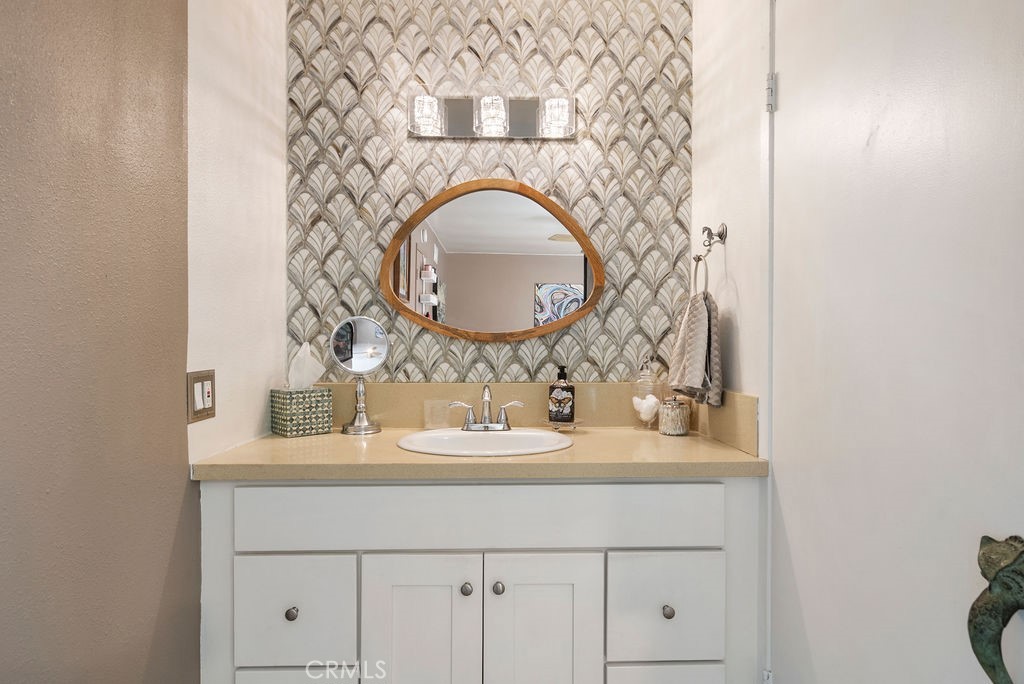 Main Bedroom: A Large spacious bedroom with a pretty view and amazing walk-in closet, vanity and sink*Master Bathroom: Newly remodeled with porcelain tiles, newer vanity, and sink, whirlpool Kohler bathtub, updated mirror and lighting, luxury faucets and knobs.*Downstairs Powder Room Half Bath: Remodeled with newer tile, wallpaper, glass sink, new lighting, luxury faucets and knobs with Kohler toilet