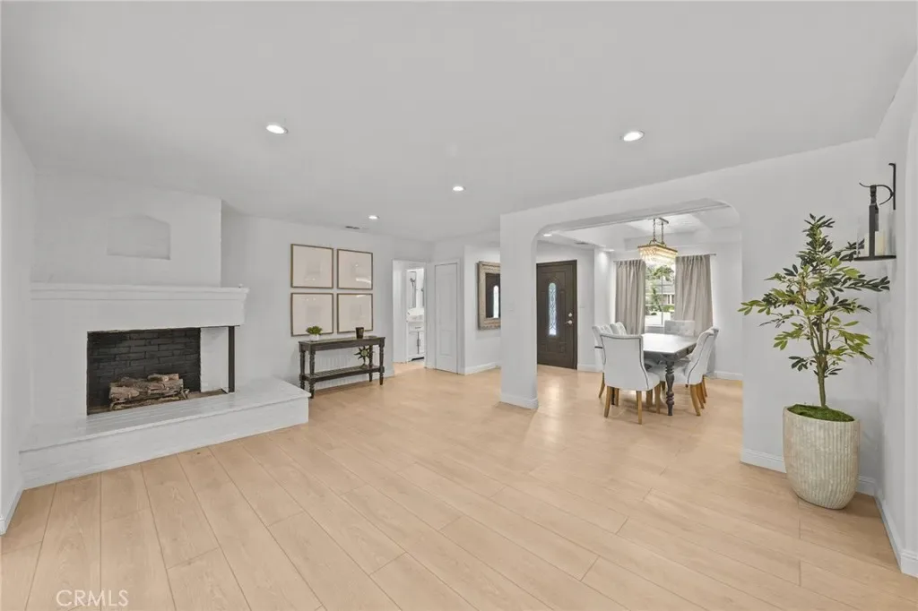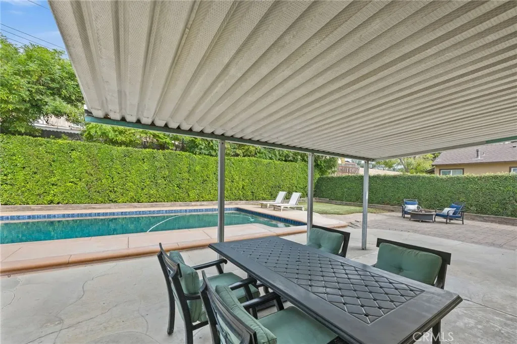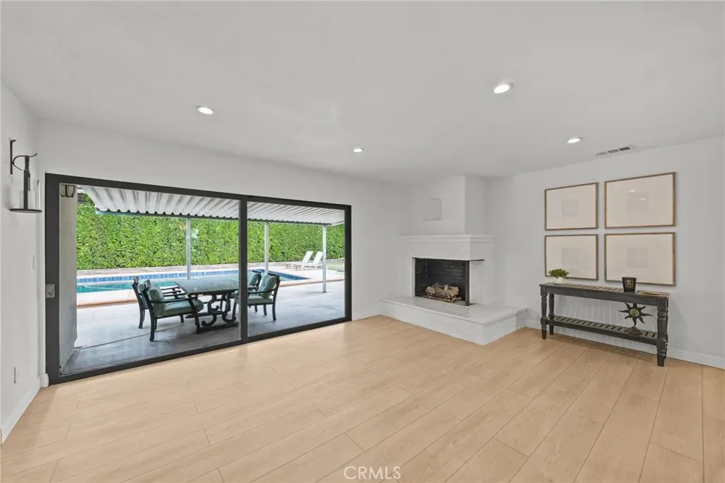Enjoy multiple gathering spaces with dual fireplaces, creating warm and inviting areas for relaxation. The home extends effortlessly outdoors to a resort-style backyard, featuring a newly upgraded pool with updated plaster, tile, pump, and filter, along with professionally re-landscaped grounds and ambient lighting—ideal for entertaining year-round.