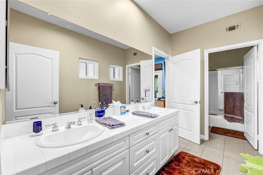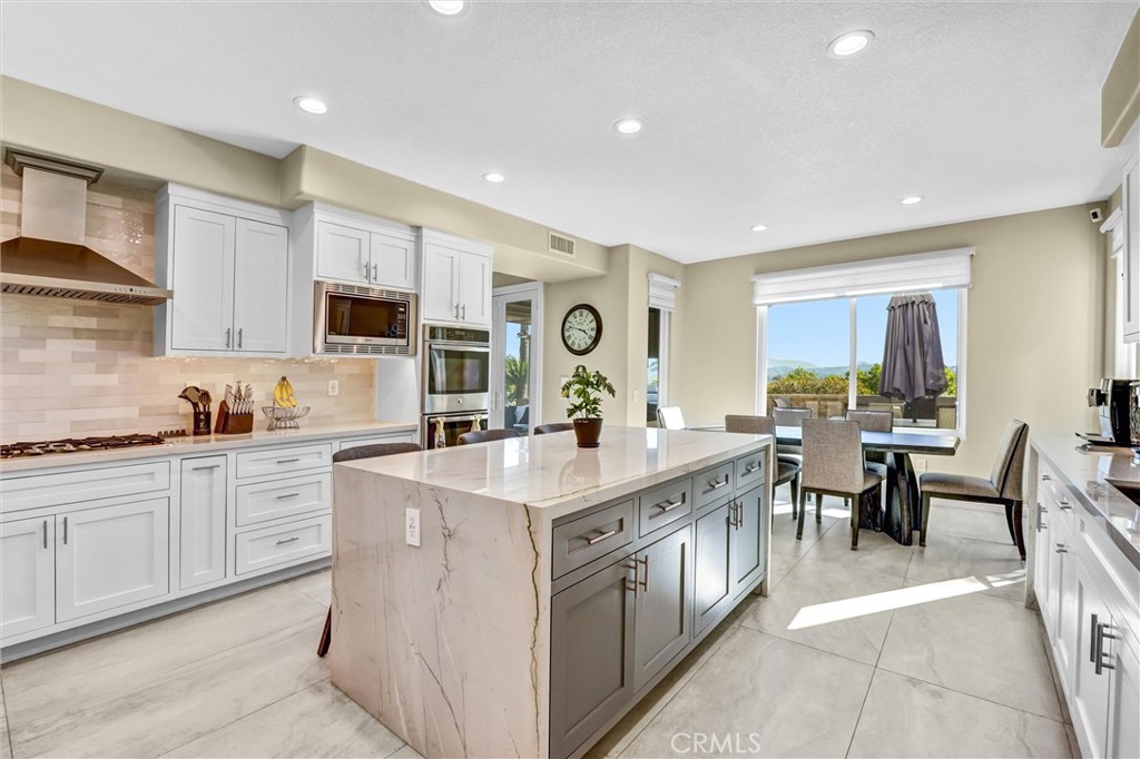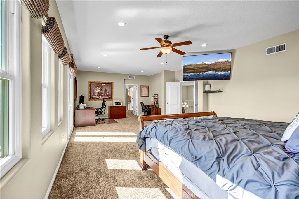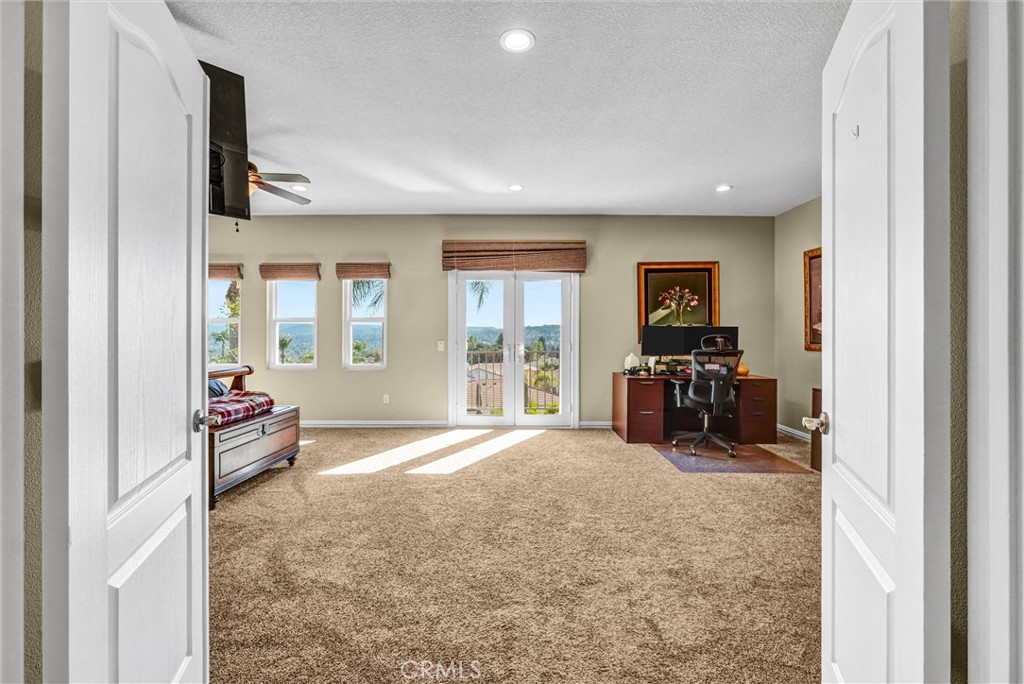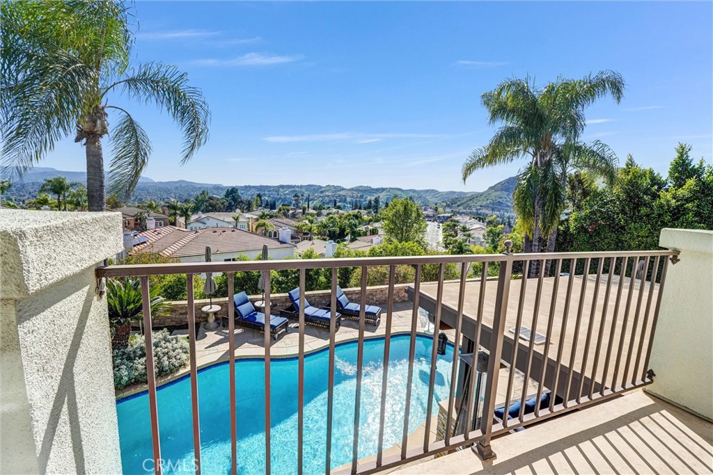 Perched in the highly desirable Monte Vista neighborhood, this impressive six bedroom, five bathroom home offers generous living space, stunning views, and exceptional upgrades throughout. A grand entry welcomes you with soaring ceilings and a dramatic staircase, setting the tone for the spacious and warm light filled interior. Step down into the elegant formal living room anchored with a custom fireplace and adjacent dining room featuring beautiful French doors. Additional living space is found in the expansive family room filled with natural light showcasing the breathtaking 180-degree valley and mountain views, along with custom shelving, recessed lightning and a cozy fireplace perfect for cool evenings. The newly remodeled kitchen is designed for both everyday living and entertainment, featuring a large center island, GE stainless steel appliances, and beautiful stone countertops. Crisp and clean white custom cabinets are abundant as well as vast counter space for large family meals or an active cook. Energy efficient dual-pane doors and windows with automated blinds provide comfort and convenience throughout the home while showcasing the beautiful lush foliage that surrounds the property. The flexible “Plan 5” floor plan includes two bedrooms a full bathroom plus powder room on the main level, ideal for guests or multi-generational living. A sixth bedroom can easily serve as a playroom, office, home gym or den. Upstairs, the grand primary suite offers a private balcony with stunning views, dual closets, and a spa-inspired bathroom complete with a soaking tub, separate shower, and dual vanities. Three additional generously sized guest bedrooms complete the upper level. The backyard is an entertainer’s dream featuring newer pavers, resurfaced heated pool, cascading spa, built-in BBQ, and large built-in fire pit situated to take in the Valleys beautiful sunsets. You will want to show off your incredible views to family and friends or quietly relax in the shade under the custom gazebo. Additional highlights include fully paid solar, two EV charging stations in the garage, and a comprehensive Ring security system with cameras and alarm surrounding the home inside and out as well as controls for the exterior landscape lightning. This exceptional property showcases pride of ownership with high end finishes that combine space, comfort, and modern amenities in the most sought-after West Hills neighborhood.