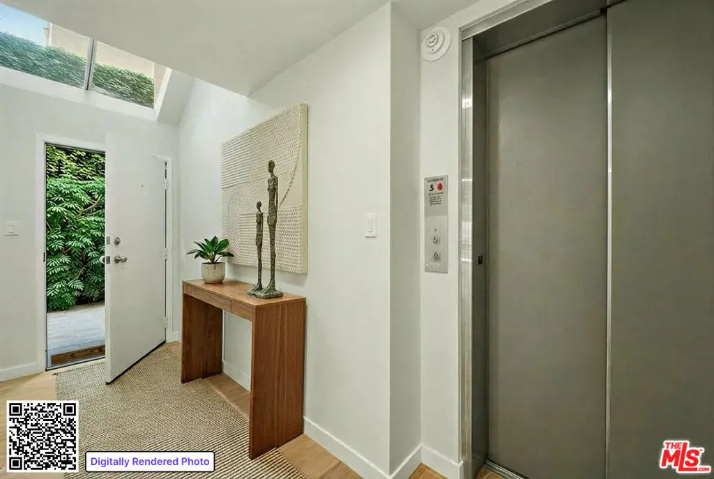 Situated in one of West Hollywood’s most desirable locations, this beautifully remodeled two-bedroom, two-bath home maintains a direct connection to the outdoors, facing the sundeck and pool to create a private, tranquil oasis. Interiors are flooded with natural light and anchored by wide-plank white oak flooring and recessed lighting throughout. The generously sized modern kitchen features quartz countertops, a breakfast bar, stainless steel appliances, and an in-unit Bosch washer and dryer. The west-facing living and dining area is defined by floor-to-ceiling windows, a cozy fireplace with custom built-ins, and a private balcony. French doors provide a seamless transition to the adjacent pool area, extending the living space outdoors.The primary suite is a luxurious retreat, featuring a substantial walk-in closet and an en-suite bathroom with an expansive shower and ample storage. The second bedroom has a lovely green view, and cool sliding doors, while the second bathroom is finished with a deep soaking tub and detailed mosaic tiling. The keyed elevator ascends from the garage directly into a private entry foyer dedicated solely to this unit. Complete with two side-by-side parking spaces, the residence is positioned a moment’s drive or walk from the neighborhood’s fabulous dining, shopping, and vibrant nightlife.