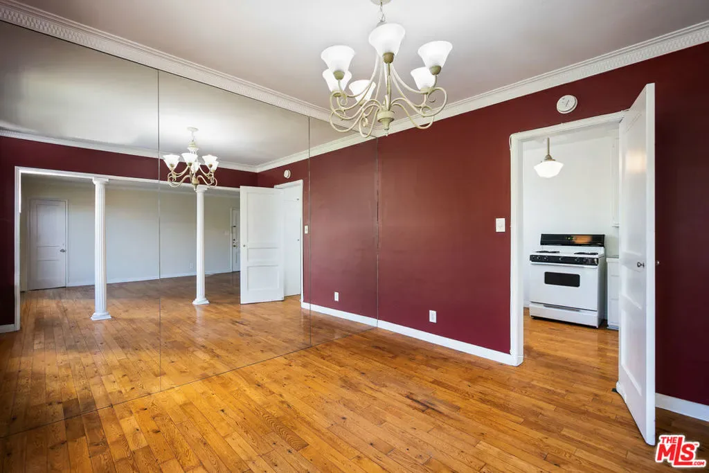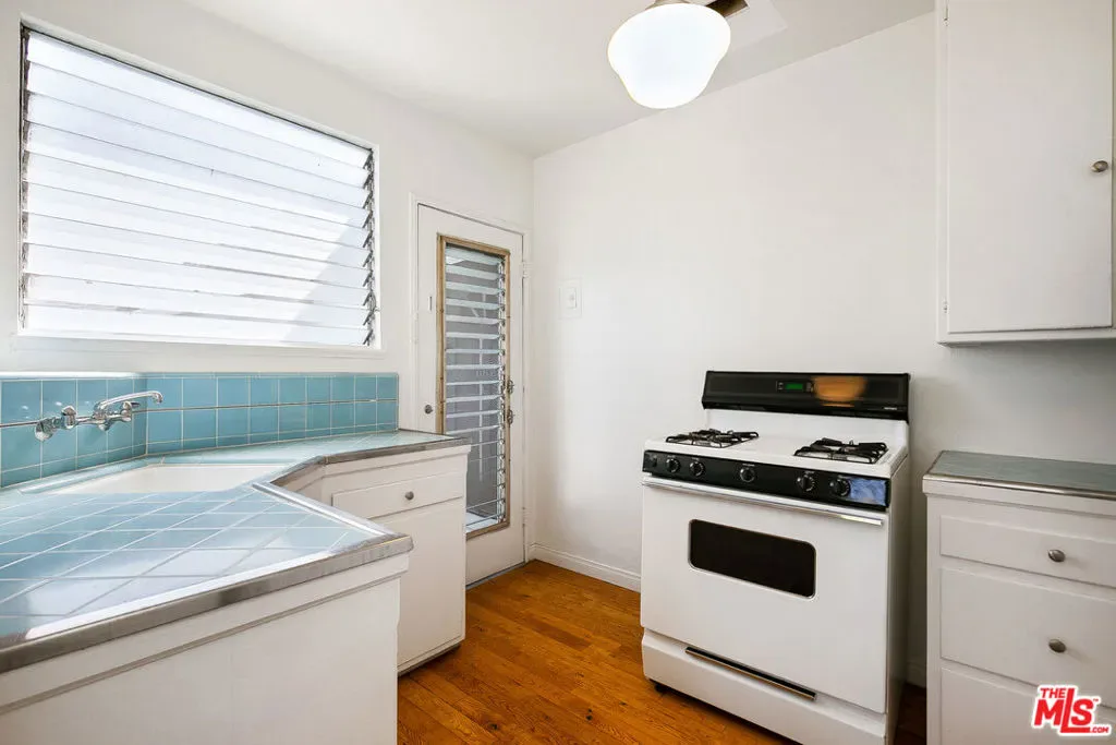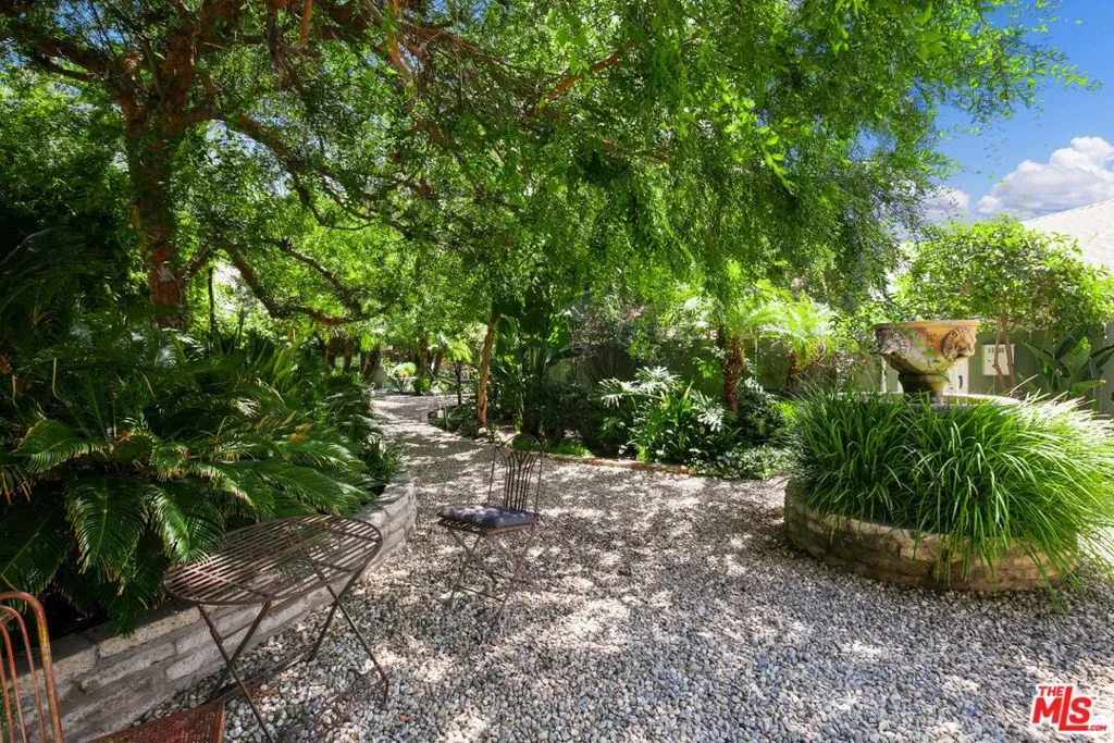 Charming 1940’s California garden bungalow apartment located in the prime area of West Hollywood just steps to the Mondrian Hotel on Sunset. This very bright and extra large garden facing apartment with huge french windows has 1 Bed+ 1 Bath with hardwood flooring throughout. The large formal dining room with chandelier overlooks an equally large living room with huge windows. Kitchen has restored vintage tiles and a small garden patio with direct access to the pool and the pool patio cabanas – great for BBQ’s. The bedroom has a charming light filled balcony. Bathroom has a tub and a separate shower and restored vintage tiles. Complex has a pool and beautiful garden courtyard with mature shade trees and Koi pond. Personal Parking space in underground gated parking garage. Skip the commute and live where all the action is or retreat to your perfect urban oasis.