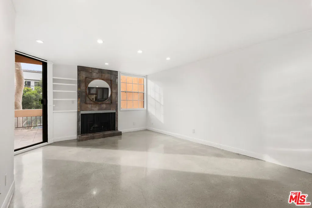 Welcome to effortless city living in this beautifully updated one-bedroom, one-bath residence, where modern design meets everyday comfort. Sleek concrete floors create a clean, contemporary foundation, while the thoughtfully designed kitchen – complete with stone countertops and stylish tile flooring – offers both functionality and a refined aesthetic. The bedroom serves as a peaceful retreat, opening directly to an expansive private balcony that fills the space with natural light. Perfect for morning coffee or evening unwinding, the balcony easily accommodates a BBQ and lounge seating for relaxed indoor-outdoor living. Generous closet space and additional linen storage enhance the home’s everyday ease. The spa-inspired bathroom offers a calming escape, featuring an oversized jetted tub, stone shower, and stone flooring – ideal for slowing down at the end of the day. Residents also enjoy access to a shared upstairs sun deck, an inviting setting to relax, entertain, and take in sweeping city views. Thoughtfully designed and quietly sophisticated, this home offers a seamless blend of comfort and elevated urban living. Please note: The final three images are digitally staged and do not represent current furnishings. The fireplace is decorative only and not operational.