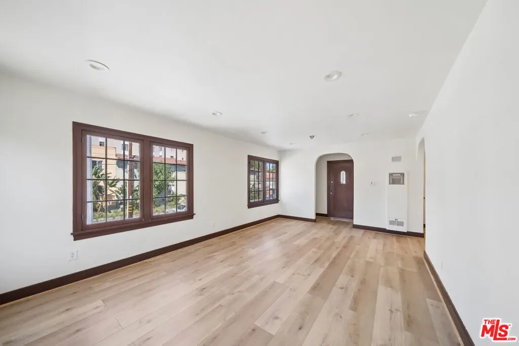 Spacious and bright first-floor 2-bedroom, 2-bath residence in prime West Hollywood. This updated home features a generous living area with abundant natural light, classic wood-trimmed windows, and beautiful light-toned flooring. The kitchen offers stainless steel appliances, a gas range with a modern hood, granite counters, and white cabinetry. Both bedrooms are well sized with walk-in closets, recessed lighting, and wall A/C units. Bathrooms are tastefully renovated with clean tile finishes and glass showers. In-unit laundry included. Pets allowed subject to owner approval. Tenant pays electric and gas; water is included. Located near Whole Foods, Trader Joe’s, Melrose Ave, The Grove, Fairfax hotspots, cafs, nightlife, and parks. Square footage is approximate and not verified.