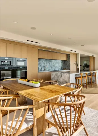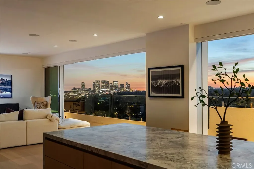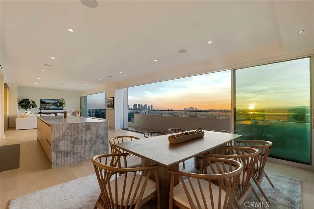 Welcome to The Penthouse at Doheny. 130 feet of sliding glass opens up to unobstructed, purely private, and absolute explosive views of all parts of the city. Experience nightly picture perfect sunsets into the Santa Monica mountains. The team at Schneider Development spared no expense in insuring a calm, and thoughtful design that executed flawlessly on complimenting the priceless geographic location of the Penthouse so that it flows into the natural terrain the views bring. Earthy tones of the wood European kitchen cabinetry, and natural stone countertops throughout the residence bring a sense of peace. The Penthouse amenities do not disappoint… Miele double oven, with convection oven and coffee maker, along with 6 burner electric range make this kitchen perfect for all aspects of cooking. 3 oversized bedrooms all have en suite bathrooms and walk in closets, and of course, glass that fully opens to the balcony with incomparable views every which way you look. The primary bedroom consists of sleeping quarters, sitting area, wet bar, en suite primary bathroom with a long linear stone sink with faucet on each side, and tub and shower that will make you feel like you’re on vacation every day as you enjoy the views with full privacy. The department store level walk in closet has two entries from both sides of the primary suite. Functionally, there is a dedicated laundry room with linen cabinets, and a hallway of storage and coat closets, with an AV space that powers the Control 4 smart home system, with unit wide surround sound, including in-wall subwoofer in the main living area. Building amenities include a one floor private and easy access to the rooftop entertaining area which includes a gym, pool with unobstructed 360 degree views of the city, ample sun beds and chairs, with multiple fire pits, and open space for yoga mornings or banquets. The Penthouse comes with a storage space, and 3 parking spaces which is run by the 24hr valet service, and occupied by a 24 hour door man at lobby. The building underwent a full scale renovation in 2016. The Penthouse itself is brand new, with every wall, material, and interior pipe replaced and reimagined. This is truly a One of One opportunity for a discerning buyer that will never be duplicated.