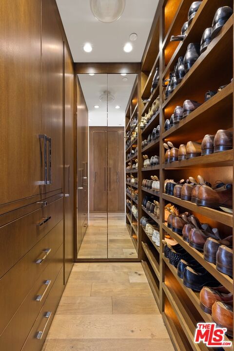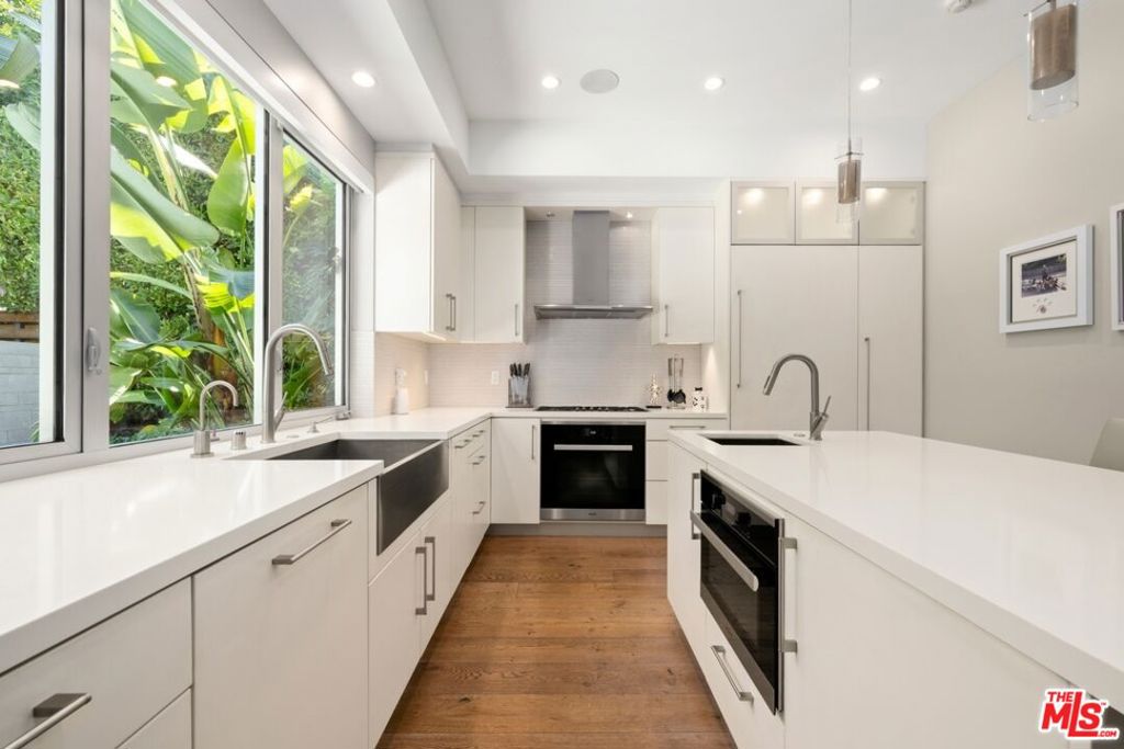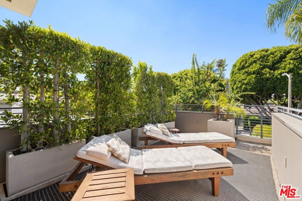 Tucked behind gates and surrounded by mature greenery, this ultra-private modern retreat sits on one of West Hollywood’s most coveted blocks and epitomizes indoor-outdoor living at its finest. Just moments from Beverly Hills, the residence has been reimagined by its current owner to evoke the experience of a world-class luxury hotel. A foliage-lined entry leads into a hidden garden, a magical courtyard oasis that flows effortlessly into the living room. The first floor embraces a true open-concept design, with interiors that seamlessly expand to the front and rear gardens, creating a sanctuary of light, privacy, and calm. Wide-plank hardwood floors and a sleek fireplace anchor the living room, while the chef’s kitchen dazzles with Miele appliances, a large island, and custom cabinetry. The adjacent dining and family room open onto a backyard escape complete with a covered, heater-equipped lounge, a sparkling pool with fountain, and a spa-all enclosed by soaring hedges for total seclusion. The attached garage, currently configured as a bespoke storage suite, offers flexibility for additional living, creative, or fitness space. Upstairs, the primary suite is a study in luxury, with abundant custom closets (including a converted third bedroom), refined window treatments and built-ins, a balcony, and a marble spa-like bathroom with dual sinks and a glass-enclosed shower. The second bedroom is bathed in natural light and spills onto a romantic rooftop patio. Additional amenities include a Control4 home automation system, motorized blinds throughout, and a comprehensive security system with cameras. Set in an unmatched central location, the home is minutes from the acclaimed dining, shopping, and nightlife of Robertson, Melrose, and Beverly Hills.
