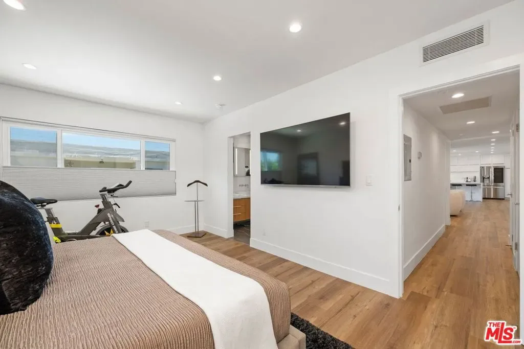 Welcome to the beautifully remodeled top-floor residence, Unit #302 at the Trafalgar Building. Thoughtfully renovated from top to bottom, this turnkey condo leaves no detail overlooked and showcases refined finishes with modern luxury throughout. With no shared walls on either side or above, the unit offers exceptional privacy and tranquility. The home features recessed lighting, wide-plank luxury vinyl flooring, a separate powder room, and a gas fireplace anchoring the spacious living area. Expansive windows and sliding glass doors open to a private balcony, filling the space with abundant natural light. The open-concept, fully remodeled kitchen boasts crisp white cabinetry with ample storage, elegant Calacutta-style white countertops, and a charming breakfast nook with a built-in bench and direct balcony access. High-end stainless-steel LG appliances complete the kitchen, including a French-door refrigerator, smooth-surface glass-top range with double oven, and whisper-quiet dishwasher. The generous primary suite offers a custom walk-in closet with built-in shelving and drawers, along with a spa-inspired bathroom featuring a large walk-in shower, separate soaking tub, and a Kohler intelligent toilet with bidet. A stackable LG washer and dryer are conveniently located inside the unit. Two dedicated tandem parking spaces are included, with the option for additional rental parking. This well-maintained mid-century community offers resort-style amenities, including a sun-drenched pool and deck, sauna, newly remodeled lobby, recreation room, and refreshed exterior landscaping. A truly special place to call home, ideally situated on one of West Hollywood’s most desirable streets. Enjoy convenient access to Melrose Avenue and La Cienega Boulevard, with premier dining, fitness studios, shopping, nightlife, galleries, and cafes just moments away. Nearby gourmet markets include Trader Joe’s, Gelson’s, Erewhon, and Laurel Supply Grocery, along with King’s Road Park and everyday conveniences. West Hollywood living at its finest.