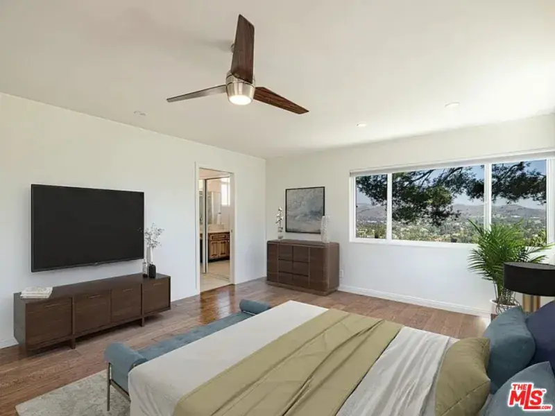 Panoramic View Living in Beautiful Westlake Village. Experience incredible views and a relaxed Westlake lifestyle in this inviting two-story home offering expansive mountain and breathtaking vistas from nearly every room. Ideally situated on a quiet street in a highly desirable neighborhood, this property combines comfort, functionality, and timeless potential.Inside, a bright formal living room welcomes you with vaulted ceilings and natural light. The layout flows into a dining area and a warm family room centered around a classic stone fireplacea perfect backdrop for cozy nights in. The spacious kitchen features an eat-in breakfast area where mornings begin with coffee and sweeping views.Designed with flexibility in mind, the home features 4 bedrooms and 3 bathrooms, including a main-level bedroom and full bath ideal for guests or home office needs. Upstairs, the primary suite takes full advantage of the breathtaking outlook with a glimpse toward the lake, along with dual closets and its own private bath. Hardwood flooring extends throughout much of the home for a rich and inviting feel.Step outside to a generous view patio, perfectly positioned for year-round entertaining or quiet sunset evenings. A three-car garage provides excellent storage and convenience.Enjoy walkable access to parks, scenic hiking trails, and the lake, along with easy proximity to local restaurants, top-tier shopping, award-winning Conejo Valley schools, and quick routes to Malibu and major freeways.A rare opportunity to embrace inspiring views and an exceptional lifestyle in one of Westlake Village’s favorite hillside communities. Also available for lease, contact LA1 for more details. Showings by appointment only.