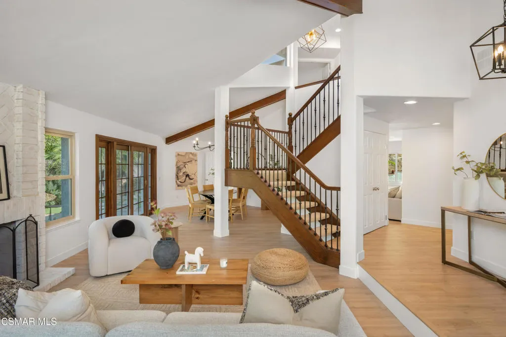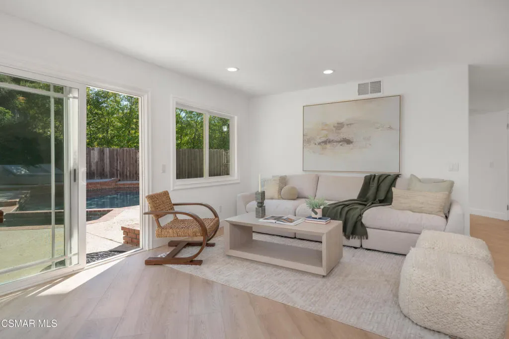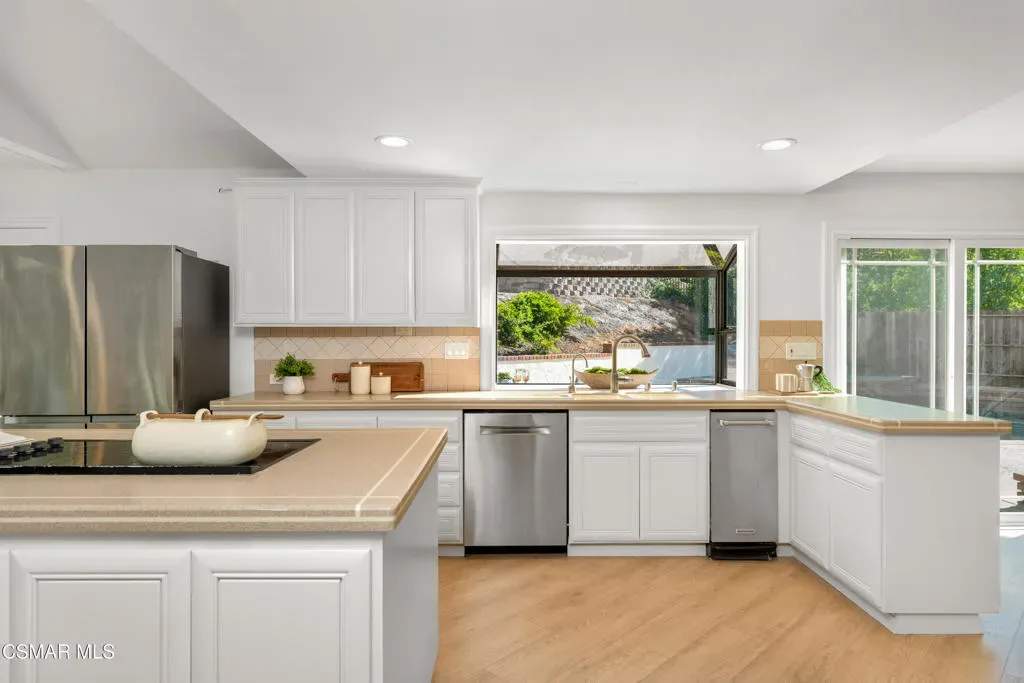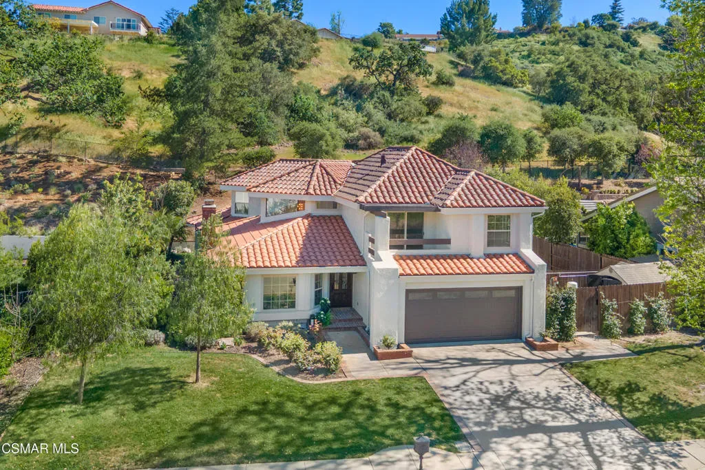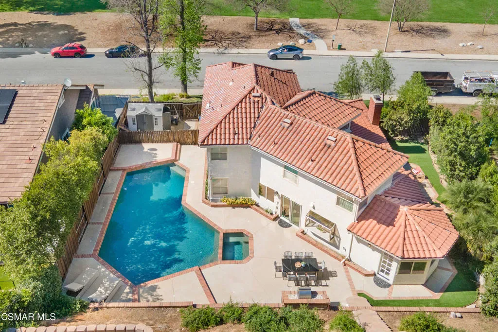 Private pool home in the desirable Southshore Hills community of Westlake Village. Ideally located across from a park, offering open views, added space, and a bright, airy setting. This beautifully refreshed 4-bedroom, 3-bath residence features new interior and exterior paint, newly painted kitchen cabinets, new light fixtures, new flooring throughout the downstairs, and recent roof updates.Abundant windows fill the home with natural light, enhancing its warm and inviting feel. The open-concept kitchen and family room offer direct access to the backyard and pool, creating seamless indoor-outdoor living. The thoughtful floor plan includes a bedroom and bath on the main level, ideal for guests or a home office. The dining room showcases striking beamed ceilings, while the living room is anchored by a classic brick fireplace. Upstairs, the spacious primary suite offers a private ensuite bath.The backyard is designed for effortless entertaining with a pool, multiple seating areas, and the added privacy of no neighbors directly behind. A spacious side yard provides additional areas to relax and enjoy.