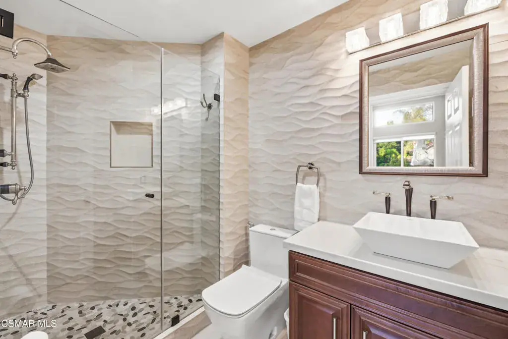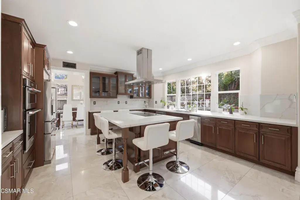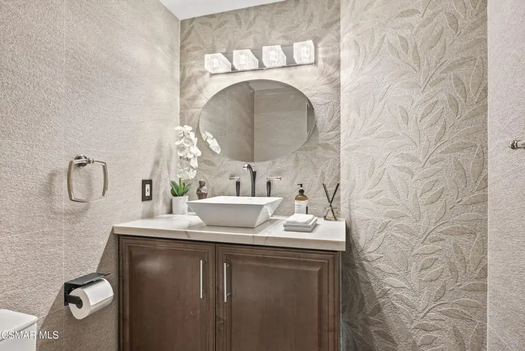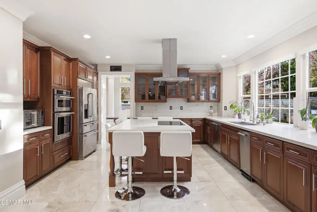 Welcome to an exceptional offering in the highly coveted Three Springs enclave of Westlake Village — a neighborhood synonymous with prestige, community, and effortless access to Westlake Lake, award-winning schools, dining, boutique shopping, and scenic trails.Completely reimagined with uncompromising attention to detail, this designer-remodeled residence defines elevated California living. Featuring 4 bedrooms and 4.5 baths, the thoughtfully curated floor plan includes a private main-level bedroom suite with its own en-suite bath, ideal for guests or multigenerational living.Upstairs, three additional bedrooms offer refined comfort, including a spectacular primary suite retreat with a statement walk-in closet worthy of a couture collection and a spa-caliber bath designed for indulgence. One secondary bedroom functions as a junior primary suite with its own en-suite bath, a rare and highly desirable feature within the community. Every space showcases superior craftsmanship and high-end finishes, blending timeless elegance with modern sophistication.The resort-inspired backyard is nothing short of extraordinary — a true entertainer’s estate featuring a covered outdoor living area, built-in barbecue island, sparkling pool and spa, and expansive play space. Designed for both grand-scale entertaining and intimate evenings under the stars, this property embodies the ultimate indoor-outdoor lifestyle.Turnkey. Elevated. Rarely available at this level of finish in Three Springs.2605 Grandoaks Drive is luxury without compromise – Welcome home.
