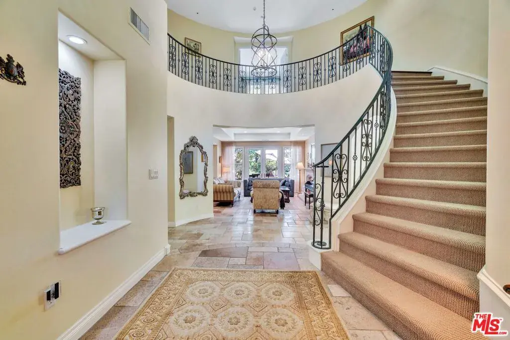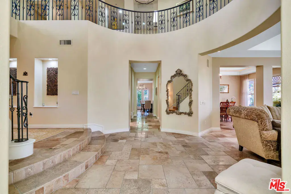 New Price reduction! Motivated Seller! Step into charming Tuscany-inspired resort living with this 5,870 sq ft two-story estate, gracefully set on a 25,700 sq ft gated Signature Collection, designed for seamless entertaining, everyday comfort, and future growth. This 5-bedroom, 6-bath retreat offers gorgeous canyon/hills views, secured parking for 5+ vehicles, and unmatched privacy in one of Westlake Village’s most desirable pockets. Inside, soaring ceilings and expansive windows flood the home with natural light, creating a warm yet refined ambiance. The open-concept design on the first floor flows seamlessly from elegant formal living and dining rooms into an oversized family room ideal for gatherings of any size. A beautiful chef’s kitchen with premium appliances and custom finishes makes entertaining effortless. Also on the first floor is a dedicated home office with an en-suite bath, custom cabinetry, and a private entrance perfect for use as a guest suite. The upper level is anchored by a stunning primary suite, complete with two fireplaces, a remodeled spa-style bath, and total seclusion. Two additional en-suite bedrooms upstairs offer comfort for family or guests, Outdoor living is equally captivating, featuring two distinct backyard retreats: one with a Tuscany-style fountain, grapevine greenery, and serene seating areas; the other with a sparkling pool and waterfall, built-in BBQ, lounge with fireplace, and sweeping mountain views. This exceptional estate blends timeless Tuscan charm with modern luxury, offering both connection and retreat while delivering lifestyle, privacy, and long-term value.