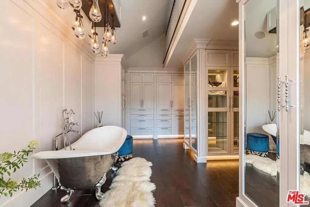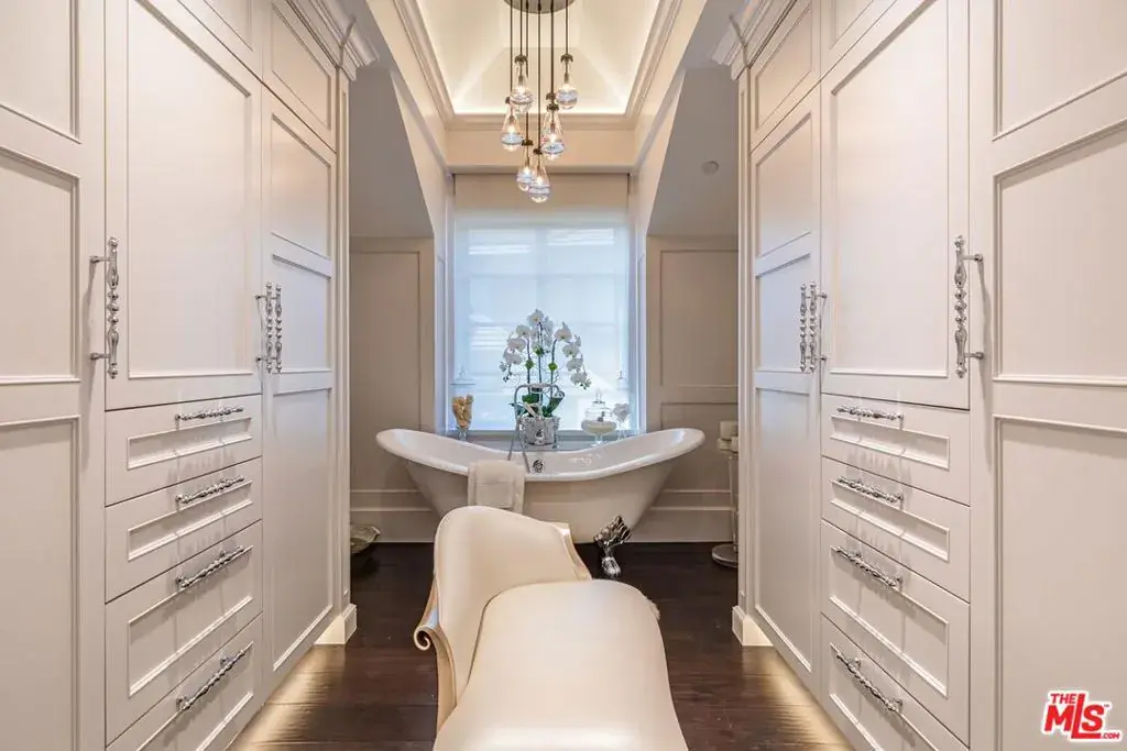 Spanning over 15,000 square feet on over 2 private acres, this estate sits within the gated enclave of Island Forest, surrounded by the fairways of North Ranch Country Club. A rare opportunity to own the residence of Melanie Taylor Kent, the celebrated artist best known as the first licensed by The Walt Disney Company to create limited-edition serigraphs of its iconic theme parks. it was later purchased by the current owner, who completed a meticulous 2.5-year, down-to-the-studs renovation. Step inside to find soaring ceilings, rich materials and curated living spaces that balance scale with comfort. The foyer features a dramatic installation of 1850s stained-glass panels sourced from a historic European church, chosen for their color, detail and artistry casting a prismatic glow across the entry. The primary suite is a private retreat with a sitting lounge and fireplace, a resort-style bath with sculptural soaking tub and large walk-in shower. A boutique dressing room with built-ins and a generous closet area. The five additional bedroom suites are equally luxurious, each with its own distinct layout, bespoke finishes and spa-quality en-suite baths. These guest suites rival those found in the finest resorts, offering both comfort and privacy for family and guests. A two-story elevator provides seamless access to both levels. Six additional powder rooms are strategically positioned to complement the home’s flow and support effortless entertaining. The estate offers four kitchens: a chef’s kitchen, prep kitchen, butler’s kitchen and a full kitchen in the pool house. The chef’s kitchen also includes a separate dining area, offering a comfortable space for informal meals or gathering during meal prep. The main living room features a walk-in fireplace and a built-in kitchen/bar, creating a warm and inviting environment ideal for entertaining. Additional spaces include a gym, temperature-controlled wine cellar, hair and makeup salon, library and a birds-eye writing nook. The movie theater features professional projection and sound. A dedicated entertainment room serves as the ultimate performance lounge, complete with a built-in stage ideal for private performances or live music. A billiards room with fireplace adds a casual gathering area and a sound-insulated podcast studio supports content creation, interviews or virtual meetings. These spaces offer function, privacy, and creative flexibility. Distinguishable highlights include 11 fireplaces (9 with Carrara marble mantels), 12 chandeliers on motorized hoists, wide-plank wood floors, a stained-glass ceiling in library, Perrin & Rowe fixtures, and custom cabinetry. Tucked within its own oak-shaded enclave, the pool and spa feel like a hidden retreat surrounded by towering trees that filter golden light and lend an air of serenity. Designed for resort-style enjoyment, it includes waterfalls, a winding lazy river, and an elevated spa at its center. A custom slide is built into the hardscape. The grounds also include outdoor dining and lounge spaces, plus a full pool house with kitchen and living area, perfect for indoor-outdoor lifestyle.Other features include a pickleball court with a covered lounge and fireplace, lush landscaping and multiple fruit trees. Features dedicated parking for 10 cars, complemented by additional abundant guest parking. Behind the scenes, the home is equally well-equipped. A Nice Home Management system controls lighting, climate, shades, media, surveillance and pool/spa systems. Major upgrades include a DaVinci composite slate roof with copper turrets, custom steel windows and doors, 9 HVAC systems operating across 21 zones, and a dedicated control room centralizes all systems, ensuring seamless access for monitoring and maintenance. An estate of this scale, design, and quality is rarely available – offering a rare combination of architectural vision,