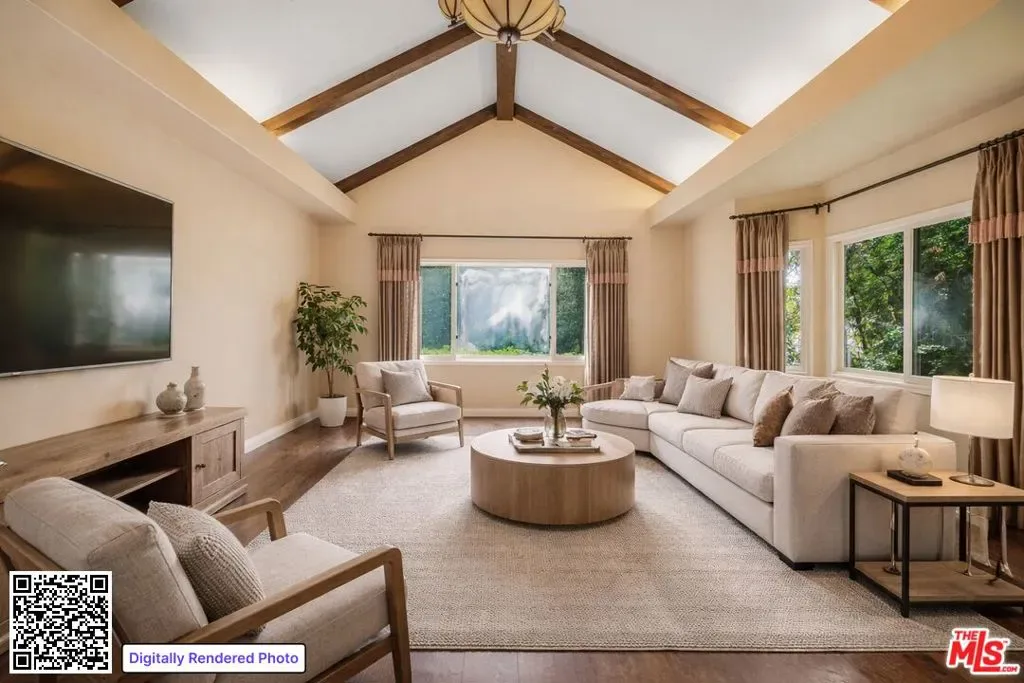 Tucked away at the end of a quiet cul-de-sac and approached by a long private driveway, this gracious 5-bedroom, 5-bath residence offers approximately 3,585 square feet of classic California living surrounded by mature trees and lush landscaping that create a rare sense of privacy. Inside, sun-filled interiors unfold with an effortless flow designed for both everyday comfort and sophisticated entertaining. Formal and informal living spaces are complemented by rich wood-like flooring, exposed beam ceilings, custom built-ins, and a warm fireplace anchoring the inviting family room. The kitchen is well-appointed with granite countertops, custom cabinetry, stainless steel appliances, and a generous center island, opening seamlessly to a breakfast area overlooking the gardens. Upstairs, the expansive primary suite serves as a true retreat with a spacious bedroom, vanity area, walk-in closet and a spa-inspired bath complete with dual vanities, soaking tub, and separate shower. Additional bedrooms offer flexibility for guests, family, or a private home office.The backyard is a private resort-like escape featuring a sparkling pool and spa, built-in barbecue, multiple seating areas for outdoor dining and lounging, and a large grassy lawn framed by mature trees. Ideally positioned near scenic hiking trails, parks, and the nearby golf course, the property also enjoys close proximity to the shopping, dining, and lifestyle amenities of Westlake Village and Thousand Oaksmaking it a wonderful opportunity to enjoy the very best of the Conejo Valley lifestyle.
