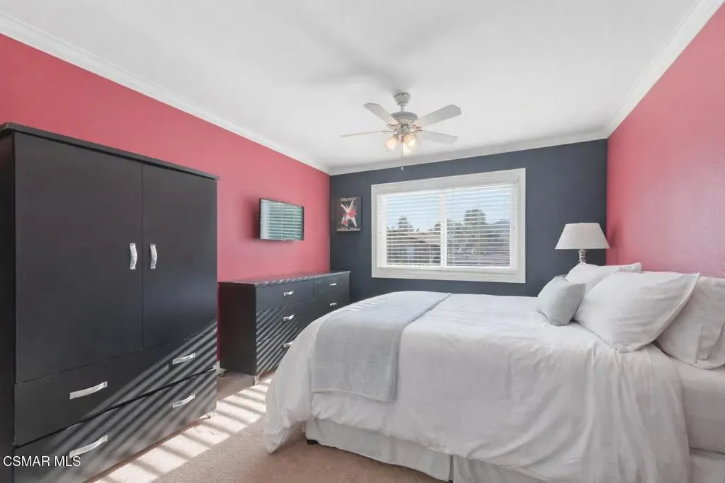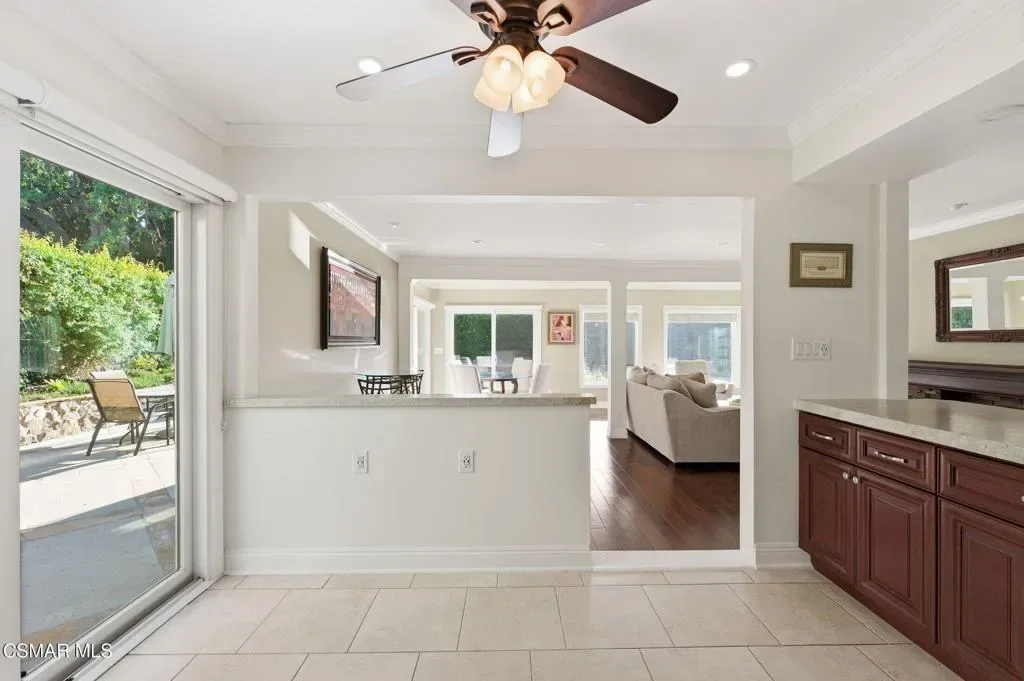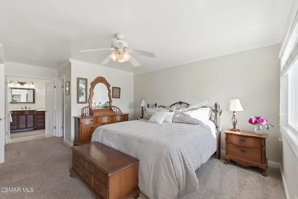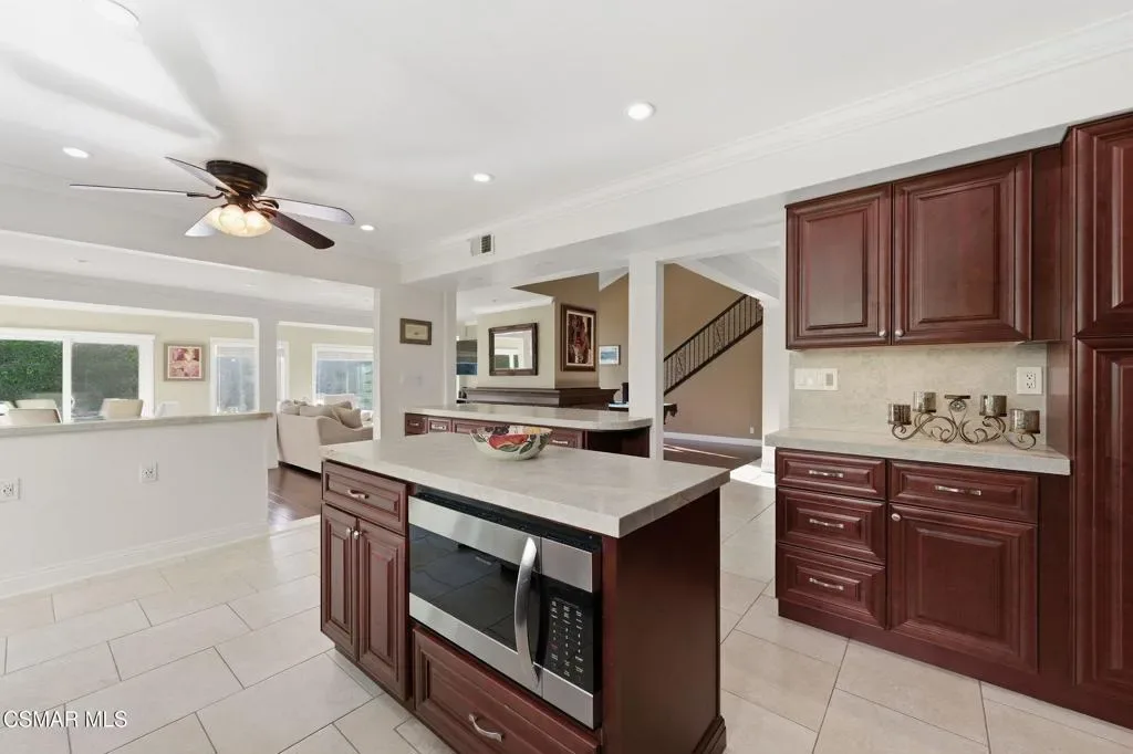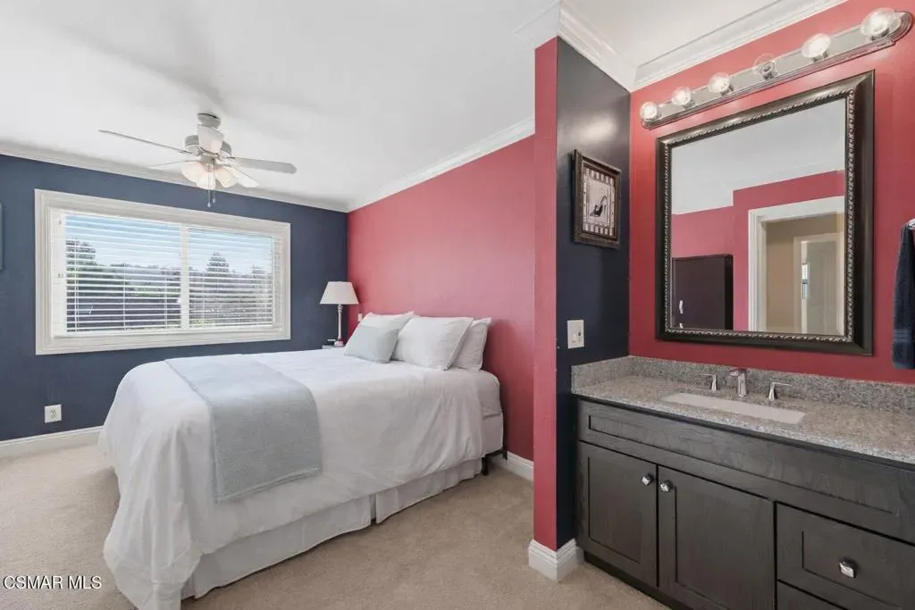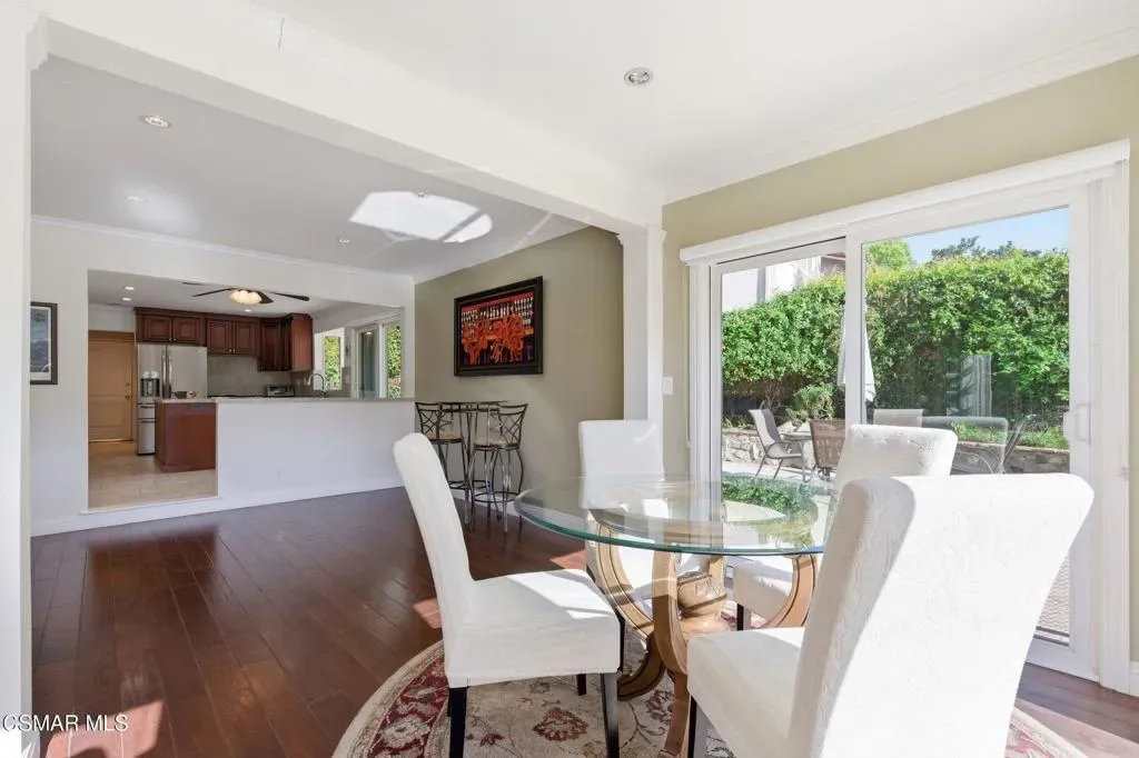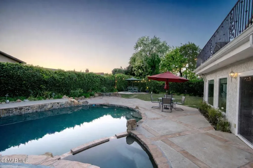 Rarely does a home like this come to market in the highly sought-after Village Homes community of Westlake Village.This exceptional five-bedroom, approximately 3,200 sq. ft. residence offers one of the most desirable and functional floor plans in the neighborhood–featuring two spacious bedrooms on the main level, ideal for guests, a private office, or a dedicated fitness space.From the moment you enter, you’re greeted by soaring ceilings and a reimagined, one-of-a-kind staircase–an architectural statement you simply won’t find anywhere else in the community. The home has been thoughtfully designed for both everyday living and elevated entertaining, highlighted by a stunning chef’s kitchen with custom cabinetry that seamlessly opens to an expansive great room filled with natural light.A large multipurpose room–currently styled as a billiards and gathering space–adds incredible versatility, perfect for entertaining or relaxing with family and friends.Upstairs, the primary suite is nothing short of spectacular. This oversized retreat features dual walk-in closets, a gorgeous sitting room with its own fireplace, and double doors that lead to an expansive private deck. From here, take in breathtaking mountain views overlooking a rare, seemingly endless backyard–an offering that is virtually unheard of in Village Homes.The outdoor experience is equally impressive. Designed for both grand entertaining and intimate evenings, the backyard showcases a sparkling pool and spa, multiple lounge and dining areas, ambient twinkling lights, and an exceptional sense of privacy–creating a true resort-style atmosphere under the stars.Completing the property is a gigantic three-car garage, beautifully maintained low-maintenance landscaping, and stunning curb appeal that makes a lasting first impression.All of this is just minutes from the very best of Westlake Village, including premier shopping, dining, and recreation, as well as The Lake. The home is also located within a top-rated school district, with the brand-new Oaks Christian Elementary campus set to open in September 2026.If you’ve been waiting for something truly special… this is it.