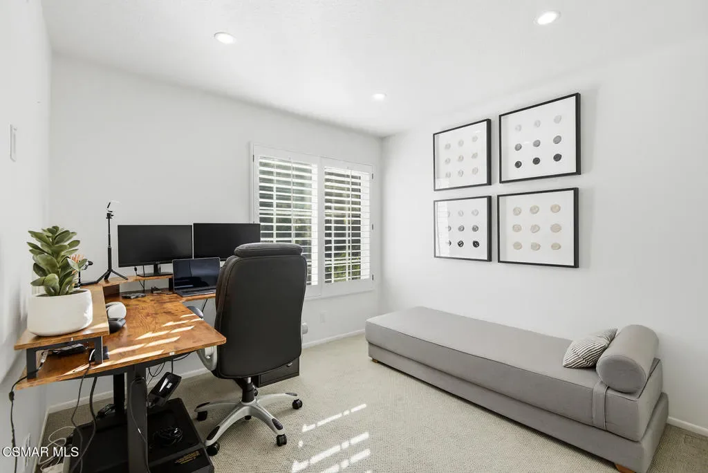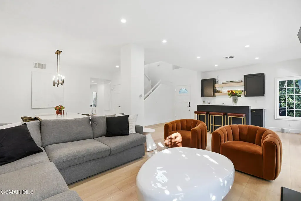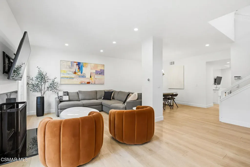 An absolutely perfect Braemar North Ranch townhouse! Premier location with a sensational lot and rare privacy! The interiors have been recently reimagined throughout and include newer hardwood floors, custom built living room bar, an abundance of French doors and windows and much more. The newly remodeled center island kitchen opens seamlessly to the family room and features newer cabinetry, counters and stainless steel appliances. Upstairs, there are 2 large secondary bedrooms, a fantastic centrally located loft/office area and an amazing primary suite with an oversized walk in closet, balcony and beautifully remodeled bathroom. The backyard boasts a slatted wood covered patio, rare privacy and manicured lawns. A VERY special offering with a premier location in the highly desired Braemar North Ranch community!