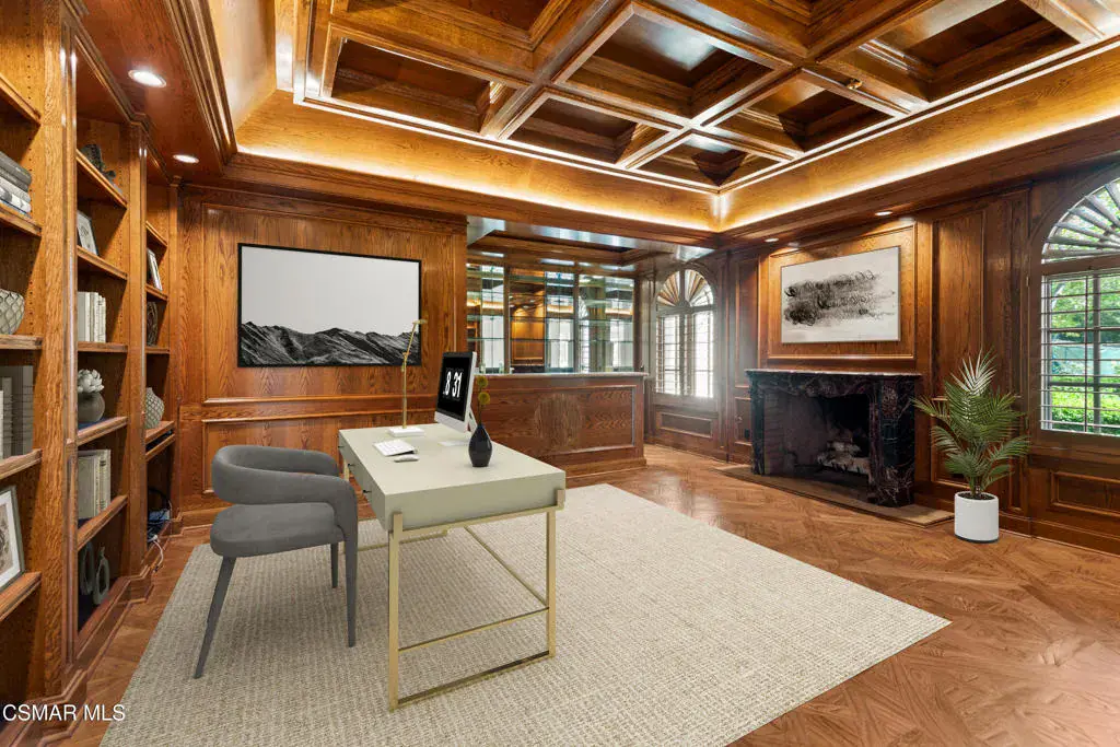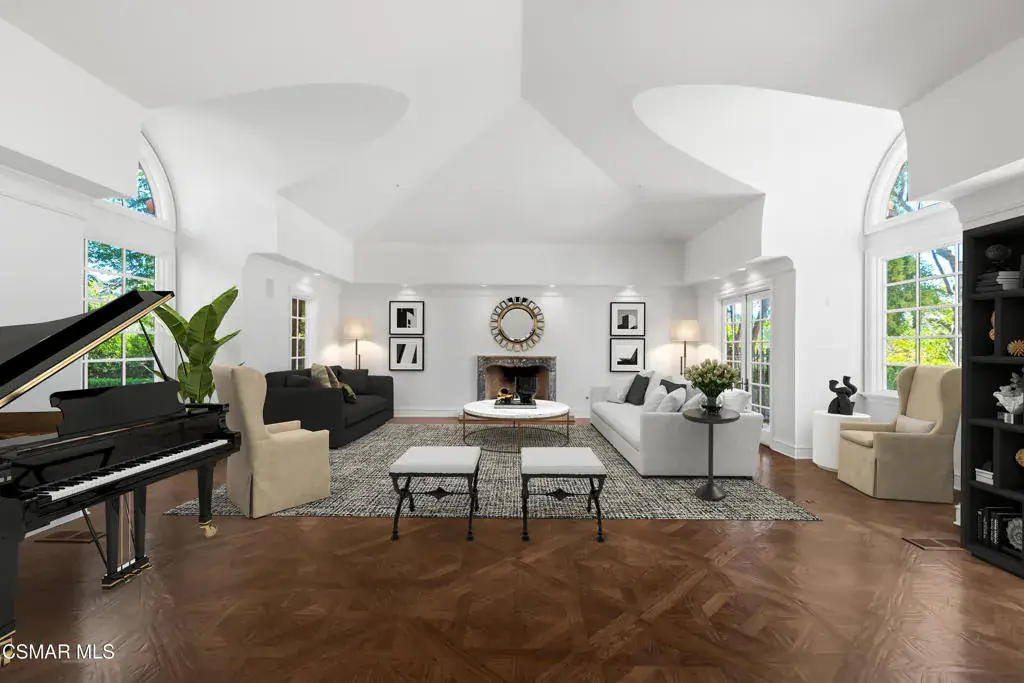 Tuscan perfection! Timeless! Set on a tranquil 1.5-acre cul-de-sac lot, this Italian Villa in Westlake Village stands as one of the most sought-after estates in the area. Designed for those who appreciate luxury living and entertaining, this European-inspired residence offers incredible mountain views and ultimate privacy, all within the exclusive Country Club Estates community. With approximately 11,000 square feet of living space, the home seamlessly blends classic elegance with modern comforts.The grand formal living room welcomes you with soaring ceilings and ample natural light, while a cozy library offers a quiet retreat. The expansive gourmet kitchen, ideally located next to the family room, is a chef’s dream. It features a distressed wood-beamed coffered ceiling, custom copper accents, a full wet bar, and a wine cellar. A striking fireplace anchors the space, making it perfect for both casual family gatherings and formal entertaining. Adjacent to the kitchen, the formal dining room opens to a covered loggia, where you can enjoy a heated outdoor dining patio and a comfortable lounge area for year-round entertaining.On the main level, you’ll find a private apartment suite that offers a separate living space, kitchen, and bedroom, all with direct access to the backyard. It’s the ideal set-up for guests or multi-generational living, providing both comfort and privacy.Up the grand staircase, the master retreat awaits–spacious and serene, with a beautiful marble fireplace as its centerpiece. Two generous walk-in closets provide ample storage, and the luxurious en-suite bathrooms offer a spa-like experience, complete with a soaking tub and separate sauna. This level also features four additional well-sized secondary bedrooms, each with its own en-suite bathroom, ensuring plenty of space for family and guests.Designed with Southern California’s indoor/outdoor lifestyle in mind, the estate’s expansive grounds include a separate casita/pool house, complete with a fireplace, kitchenette, and full bath–perfect for poolside gatherings or as a guest retreat. Lush, manicured lawns surround the property, along with formal gardens that add beauty and privacy. The centerpiece of the backyard is a sparkling pool and spa, all set against a backdrop of breathtaking mountain views.This estate truly offers the best of California living, where every detail has been thoughtfully designed to provide both luxury and comfort. Whether enjoying intimate family time indoors or hosting large gatherings outdoors, this home offers the perfect setting for every occasion.