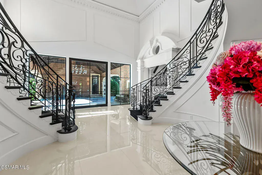 World Class Landmark Estate in guard gated North Ranch Country Club Estates ! Exquisite and completely re-imagined contemporary English Manor with panoramic fairway and mountain views! Designed and built with unparalleled quality, detail, and craftsmanship. Absolutely magnificent! Interior features include a grand two story entry with sweeping dual staircases, state of the art home cinema, billiard/game room, all new walk in wine cellar, and so much more. No detail or expense was spared to artistically craft this one of a kind showplace. The resort quality grounds are remarkable. Custom pool and spa, fireplace, outdoor kitchen, formal gardens and lush manicured lawns. All with total privacy and views! Other important features include privately gated entry, garages for 6 cars, a detached office with guest house above with separate entrance. There is also another detached guest/pool house with adjacent catering kitchen. One of Southern California’s most epic custom masterpieces!