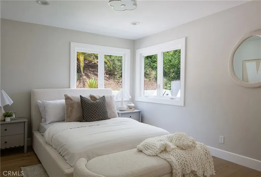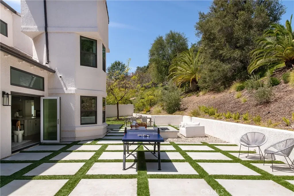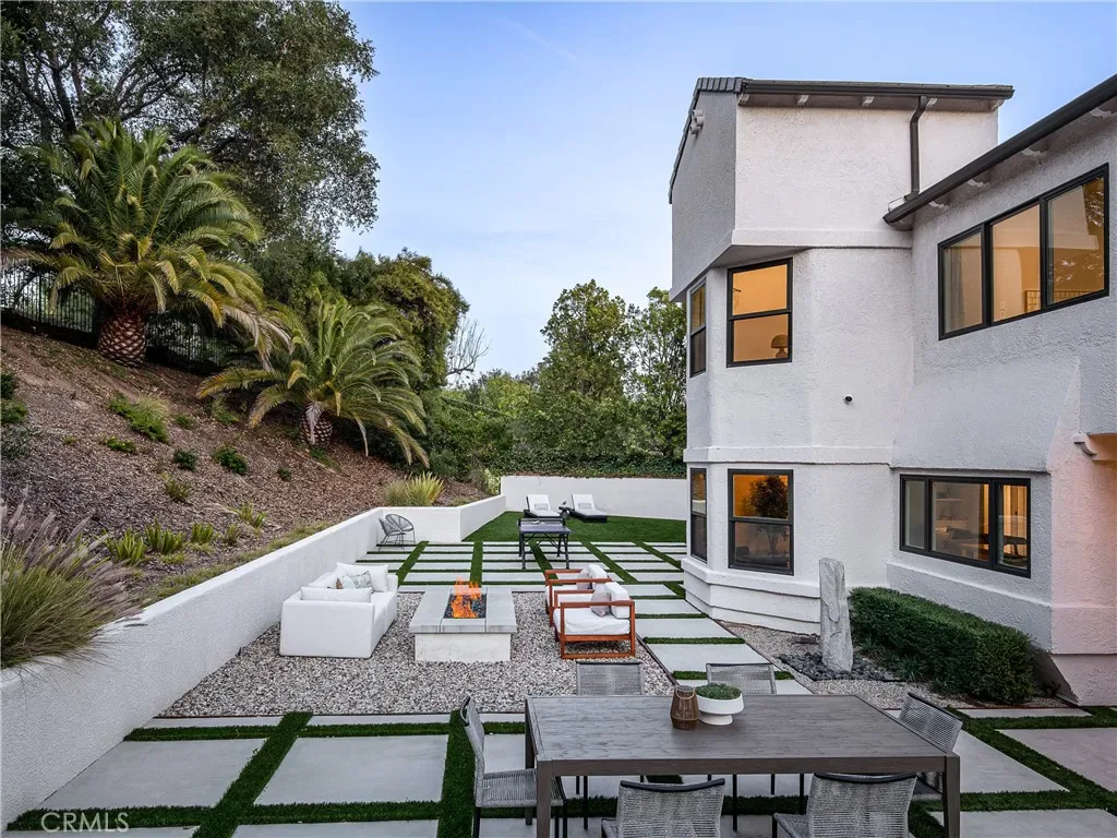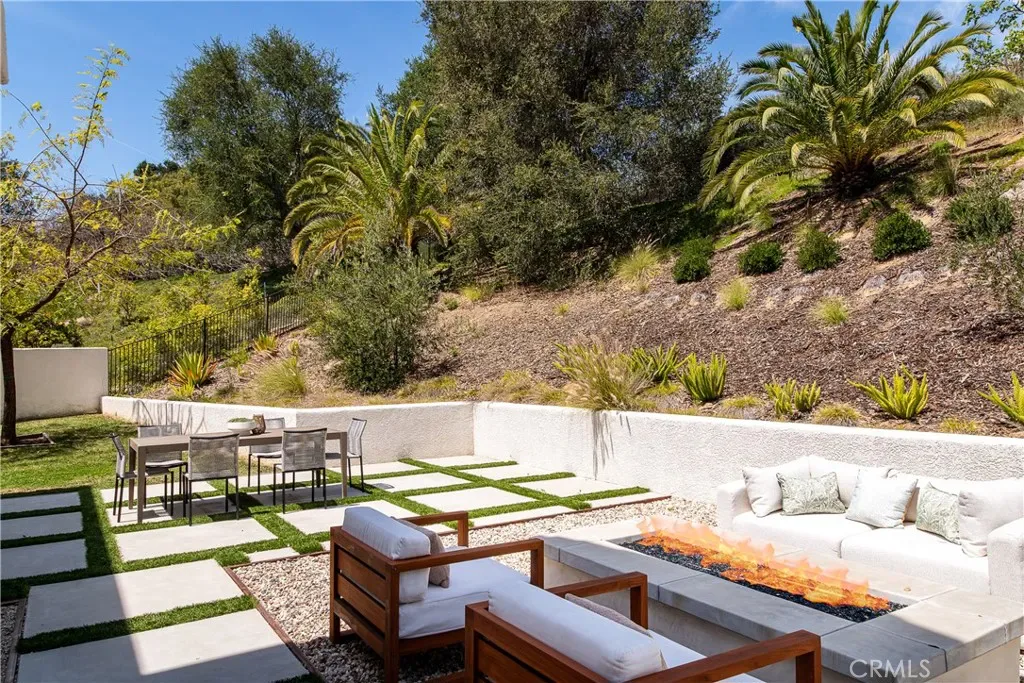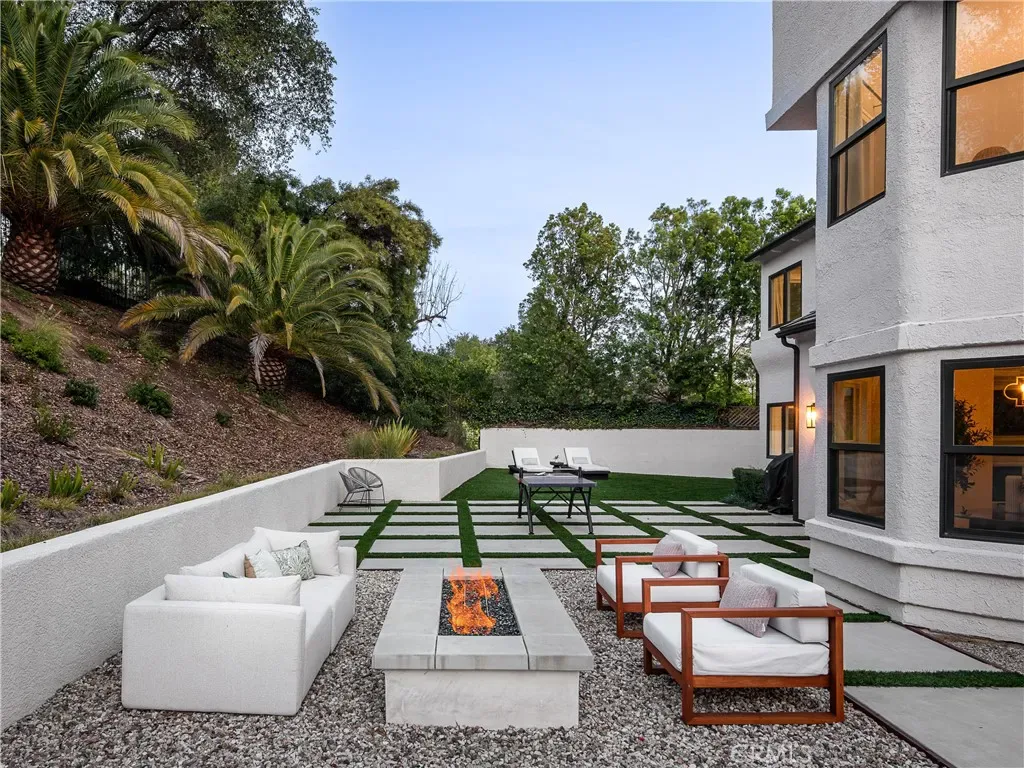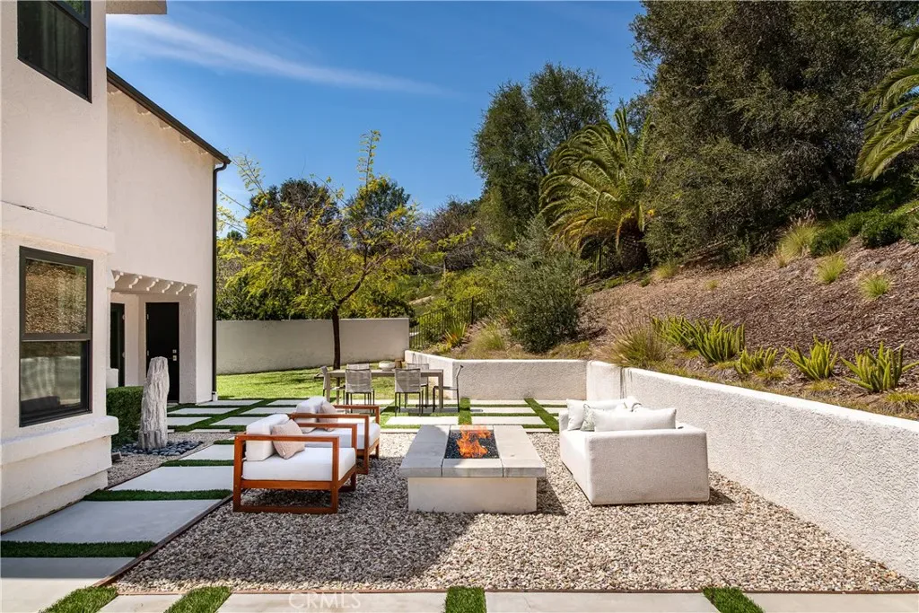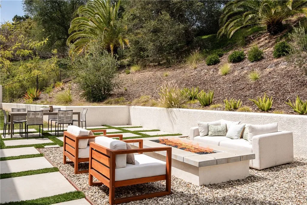 The private backyard features drought-tolerant landscaping and a custom firepit, with ample space to add a pool. Recent upgrades include new windows, roof, HVAC system, and a tankless water heater.