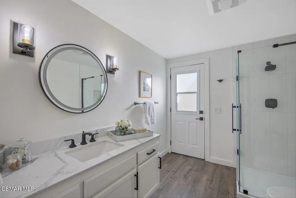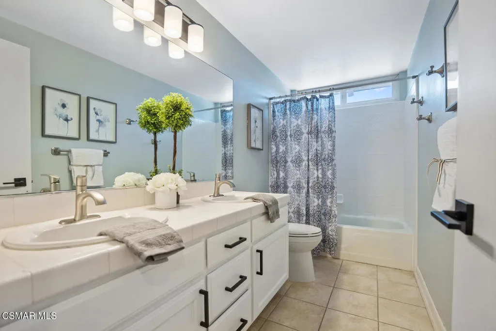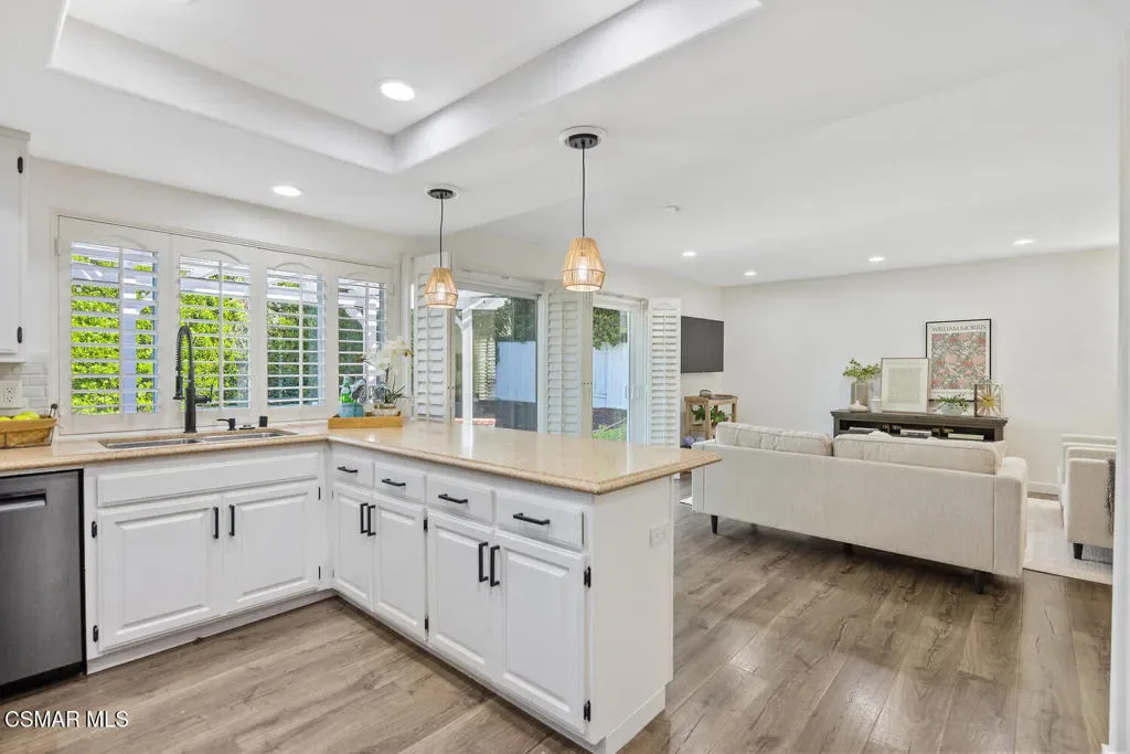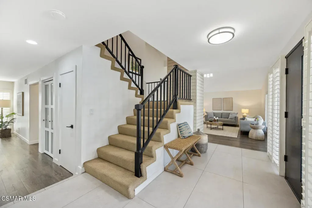 Presenting a beautifully updated 4 bedroom home located on a cul-de-sac street in one of the most desirable neighborhoods in all of Westlake Village, the highly sought after Foxmoor community. With fantastic curb appeal, the home welcomes you with a tranquil courtyard featuring newly poured, beautifully finished concrete, lush landscaping, and a charming cascading fountain. Inside, the home offers modern high ceilings, modern laminate flooring and abundant natural light throughout. The open concept floor plan is both functional and inviting. The spacious living room features a cozy fireplace and ample room for entertaining, while the formal dining room enjoys views of both the backyard and courtyard. The gourmet kitchen is equipped with stainless steel appliances, counter seating, and new designer lighting, and opens seamlessly to a large family room that is perfect for everyday living and gatherings.Thoughtful upgrades throughout include a newer roof, a new dual zone HVAC and ducting system for improved efficiency and year-round comfort, and a fully remodeled downstairs bathroom. The expansive backyard offers plenty of space for play and relaxation, complete with a brick patio, jacuzzi spa, and firepit, ideal for enjoying warm Southern California evenings or hosting guests. Additional highlights include a spacious three car garage with ample storage and an electric vehicle charging setup. Residents of Foxmoor enjoy access to a beautifully maintained community pool and expansive greenbelts, all with a low HOA. The neighborhood is known for its welcoming atmosphere and convenient access to award-winning schools, scenic hiking trails, shopping, dining, golf, and tennis. A wonderful opportunity to own in one of Westlake Village’s most sought-after neighborhoods.
