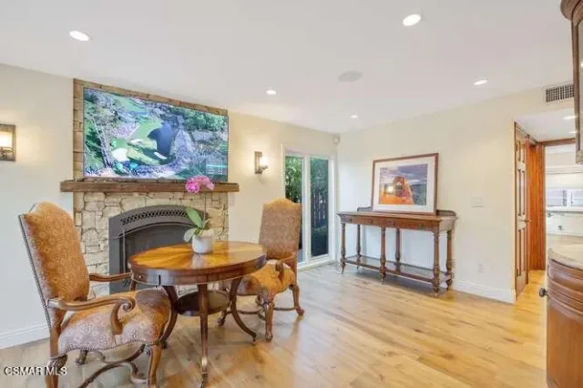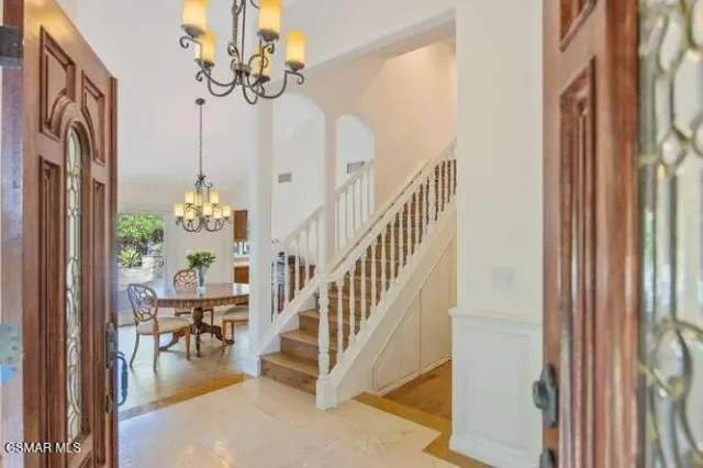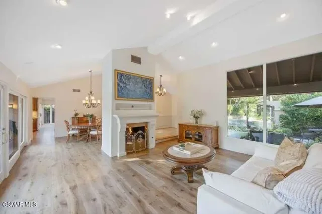 Beautifully updated and move-in ready, this 4-bedroom, 3-bathroom home offers an exceptional blend of warmth, functionality, and true California indoor-outdoor living. Featuring a highly desirable main-floor bedroom and full bath, the layout is both versatile and inviting.Inside, rich French oak flooring and fresh interior paint create a light, cohesive feel throughout. The home features soaring ceilings, abundant natural light, and seamless flow between living spaces. The inviting family room opens directly to the backyard, creating an ideal setting for both everyday living and entertaining.The kitchen is the heart of the home, showcasing custom cabinetry, stainless steel appliances, and an expansive center island that connects effortlessly to the main living areas.Upstairs, the spacious primary suite offers a spa-like retreat with a beautifully updated bathroom, soaking tub, oversized walk-in steam shower, and custom-designed closet.Step outside to a truly exceptional backyard designed for entertaining and relaxation. Enjoy a sparkling pool and spa, built-in BBQ, outdoor fireplace, and multiple seating and dining areas surrounded by lush, mature landscaping. A private courtyard entry with tranquil fountain adds charm and an additional outdoor living space.This home offers a rare combination of thoughtful upgrades, inviting interiors, and resort-style outdoor living.