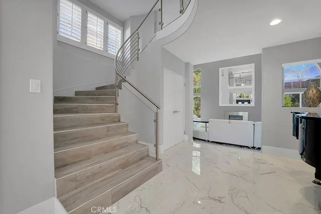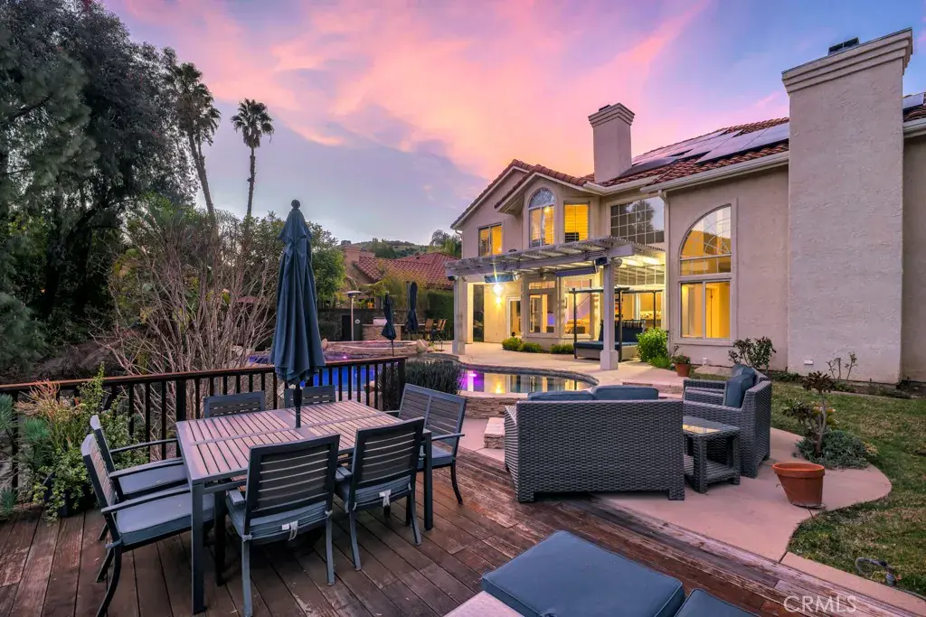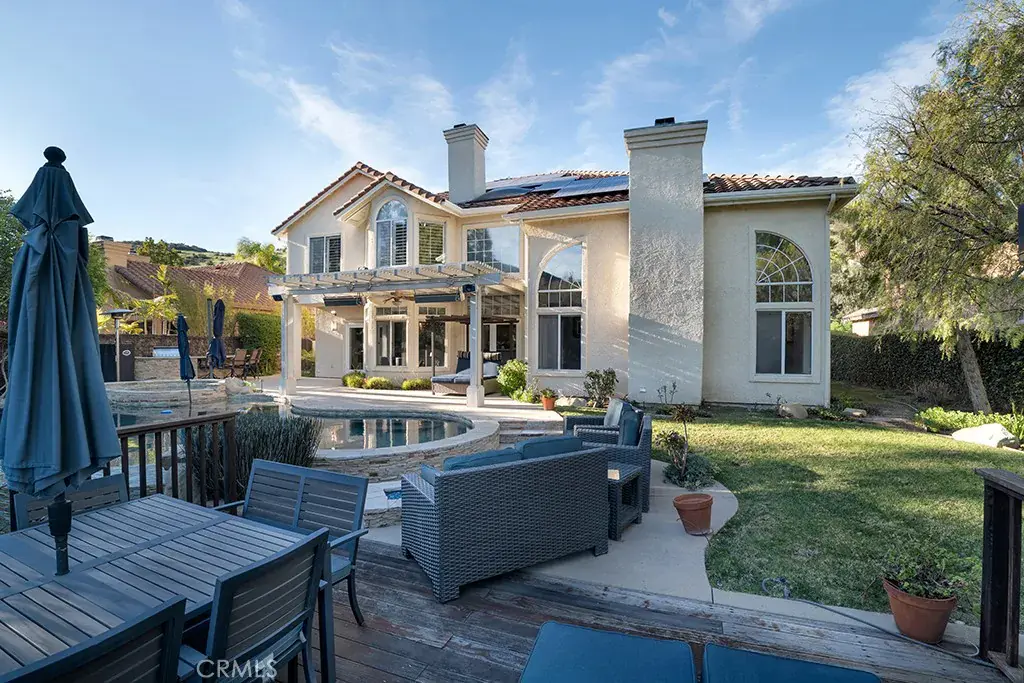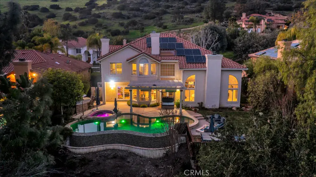 Featured in Malibu Magazine Located in the highly desirable Three Springs neighborhood. This home offers the perfect blend of luxury, comfort & community. This exceptional, fully updated home offers striking architectural, refined modern interiors, & a true resort-style backyard in a private, scenic setting. The grand custom double door entry open to a dramatic two-story foyer w/polished marble-style flooring, a statement chandelier, & sweeping contemporary LED lighted staircase. The main living spaces are highlighted by soaring ceilings, expansive windows & abundant natural light. There are 5 bedrooms & 4.5 baths w/ 4,258 sqft situated on a 13,783 sqft lot. The formal living room features a sleek wall-mounted linear fireplace & overlooks the picturesque backyard. The beautifully remodeled chef’s kitchen is designed for both entertaining & everyday living, featuring custom cabinetry, quartz countertops, a large center island w/gas cook-top, stainless steel appliances, double ovens, built-in stainless-steel refrigerator, stainless steel sink, recessed lighting, large pantry, designer tile backsplash, breakfast room & opens seamlessly to the spacious family room w/recessed lighting, built-in storage, & a modern fireplace feature. Multiple flexible rooms offer versatility for home offices, fitness spaces, or guest accommodations ideal for today’s work-from-home lifestyle. The primary suite is a private retreat w/a custom walk-in closet & a spa-inspired bathroom. The primary bath includes a large glass-enclosed walk-in shower w/stone tile surround, pebble flooring, rainfall shower head, built-in bench seating, dual vanities w/modern cabinetry & integrated lighting. The backyard is a private resort-style oasis designed for year-round enjoyment. Highlights include a custom infinity pool & raised spa w/waterfall features & ambient lighting, expansive patio & entertaining areas, a built-in BBQ w/bar seating, fire feature, & elevated deck spaces surrounded by mature landscaping. Scenic hillside views & privacy create a serene environment. Additional features include a three-car-attached garage w/direct house access, a laundry room w/sink, central AC/Heat for year-round comfort w/dual zone system, tank-less water heater, 16.5 KW of solar panels & motorized blinds. Close to parks, serene hiking trails & world class shopping, dining & entertainment along w/award-winning Las Virgenes Unified School District.